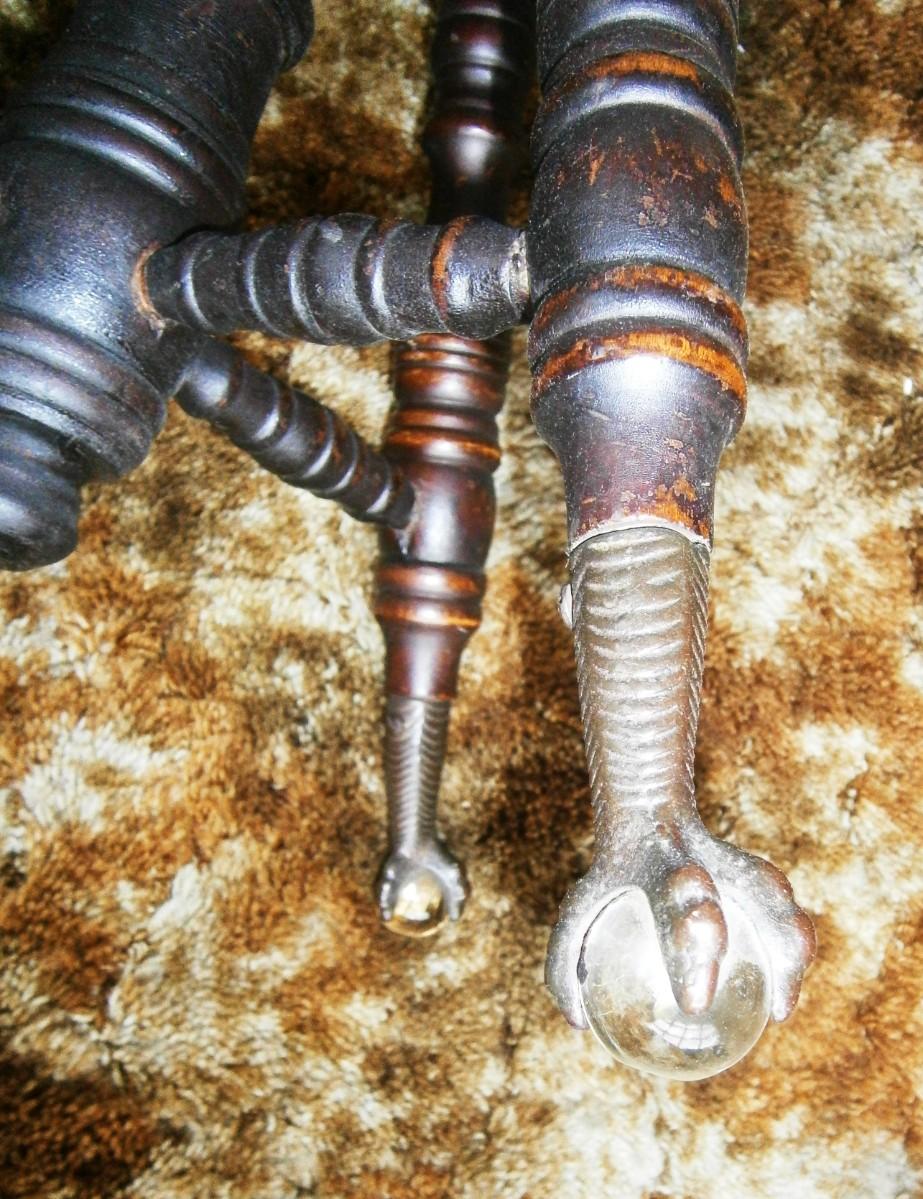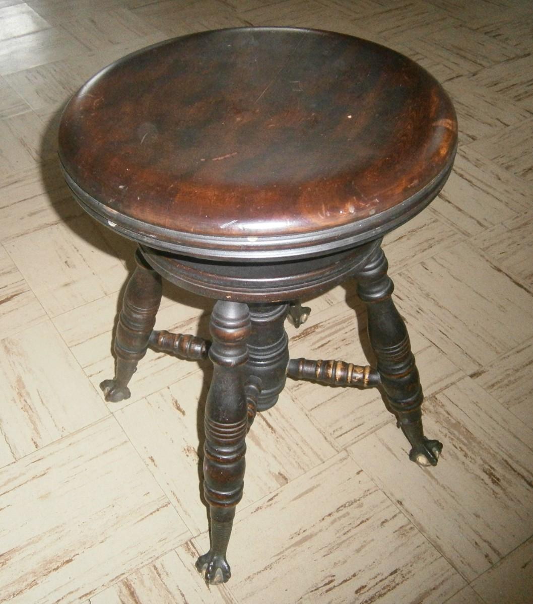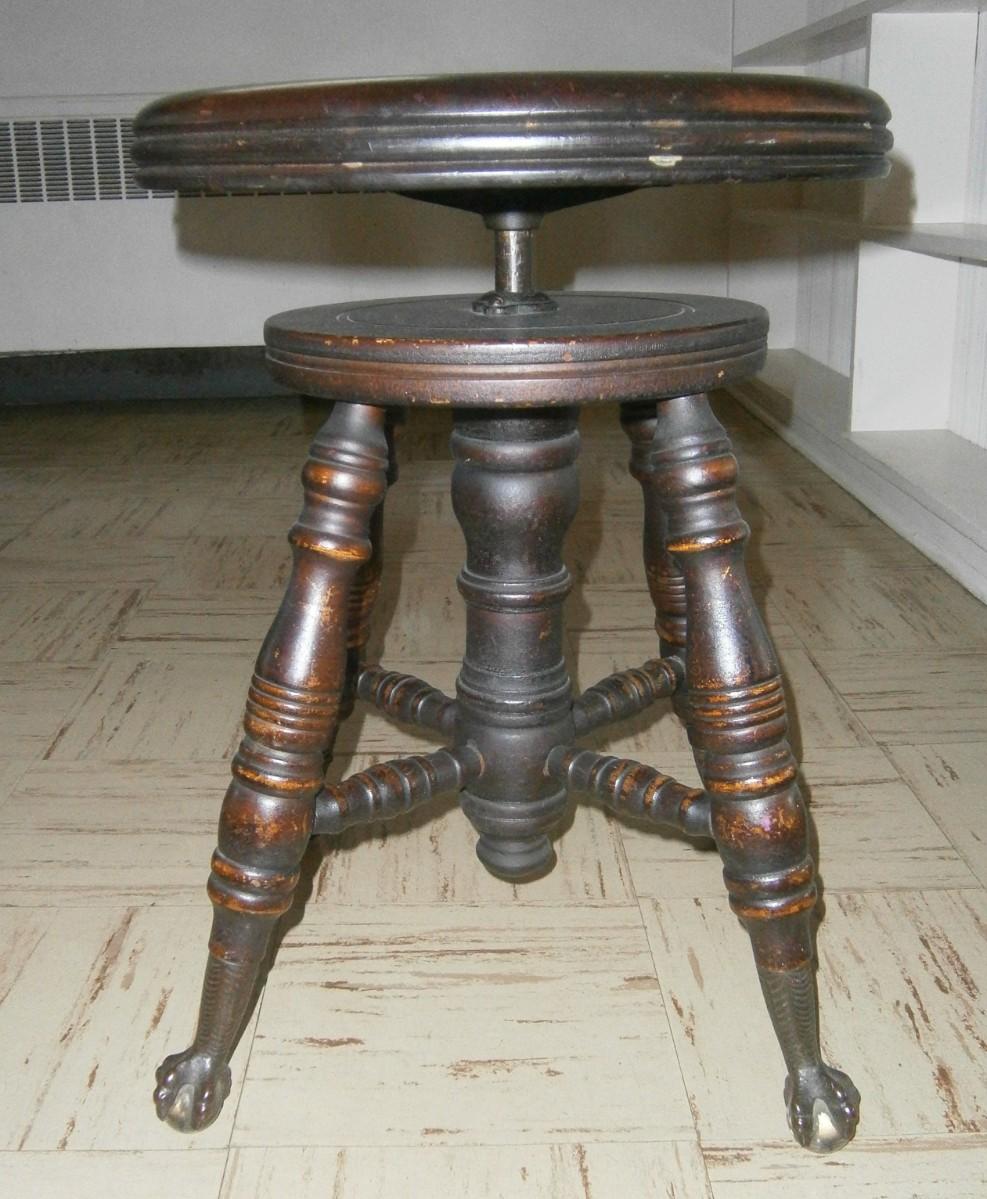 Antique mahogany piano stool with claw grabbing glass ball feet, adjustable by turning seat, manufactured by THE CHAS. PARKER CO. of Meriden, Ct., PICK-UP ONLY by Appointment. Located in Port Ewen, NY 12466