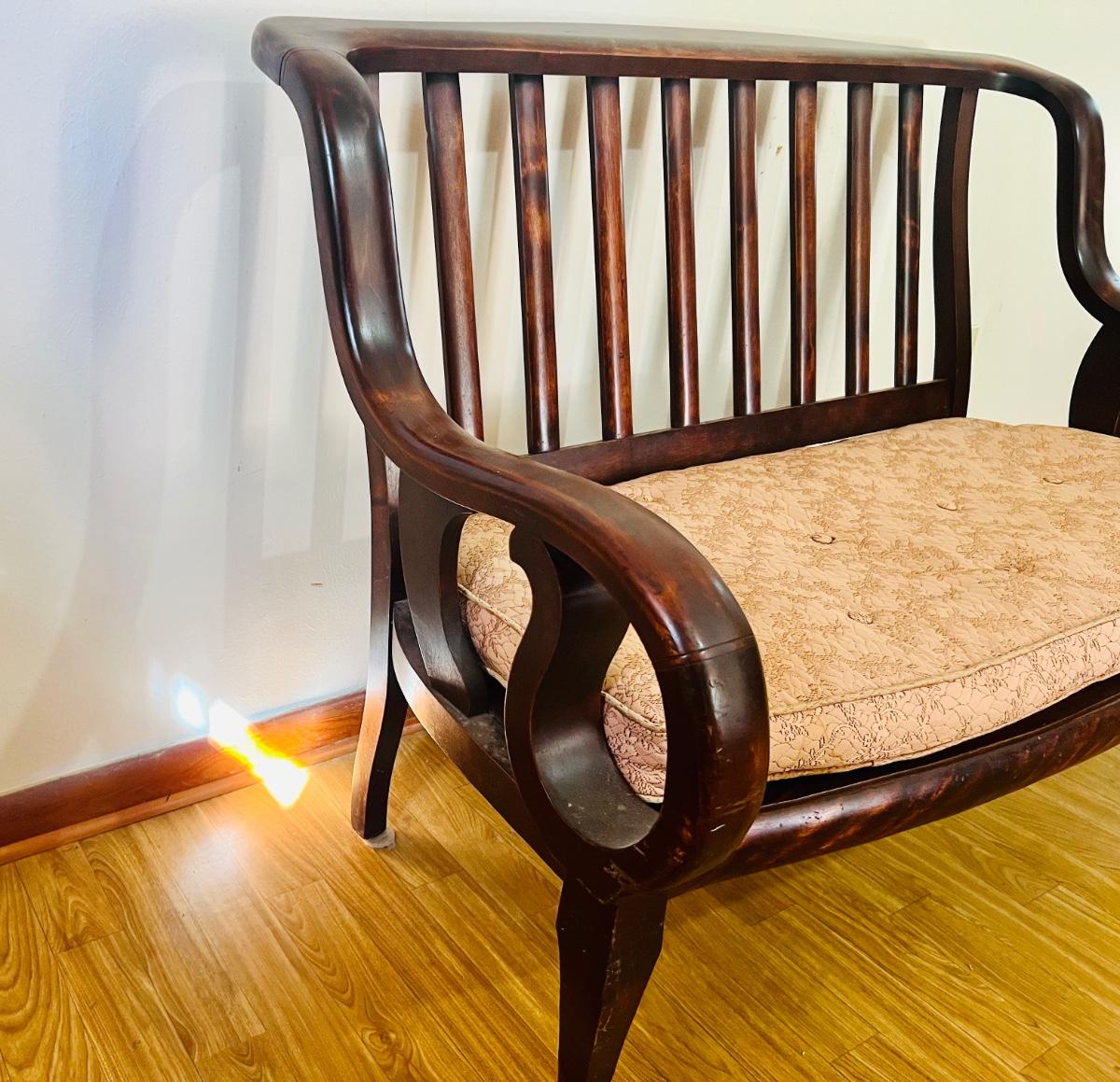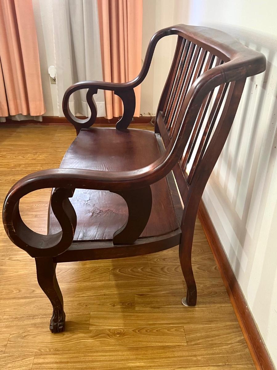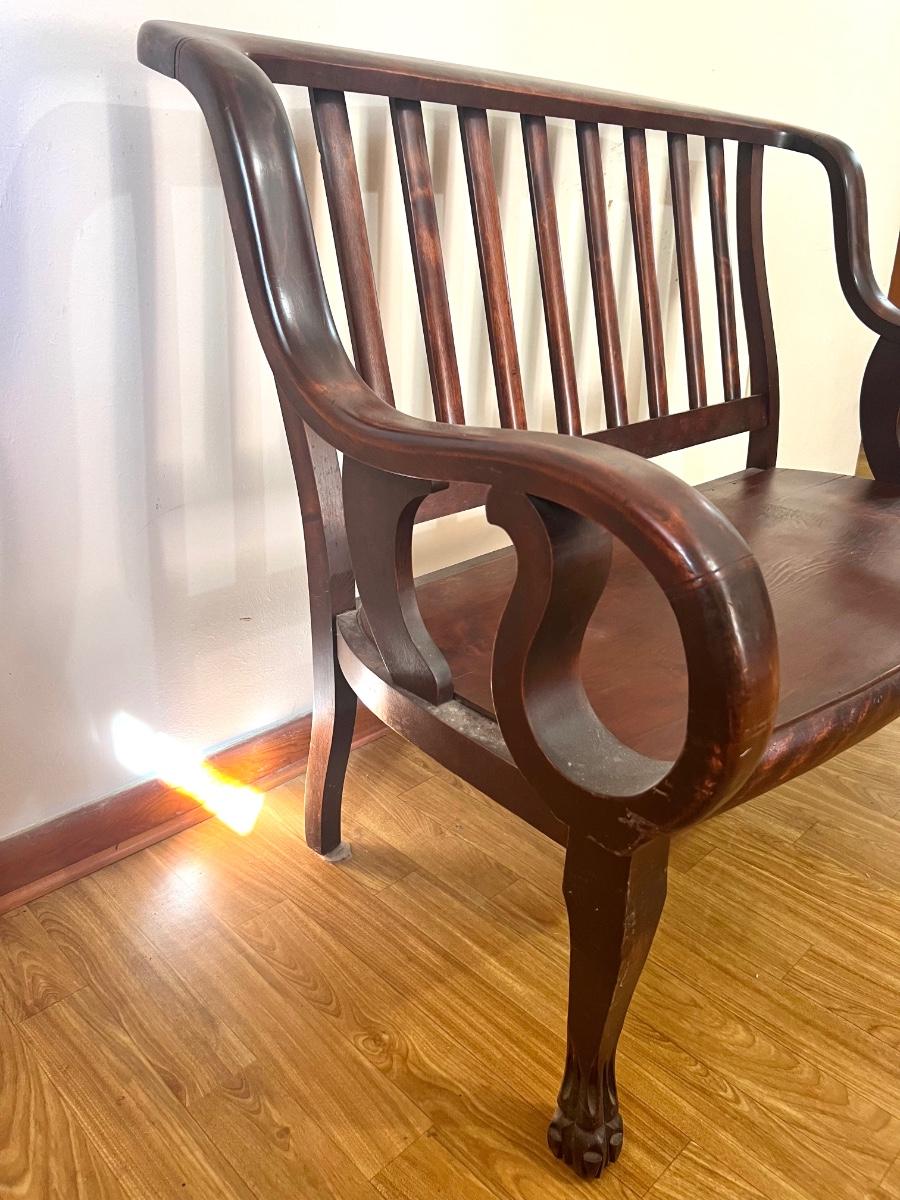 Antique Mahogany(?) Settee. This beauty i solid wood with detailed claw feet. Measures 36 inches tall, 47 inches wide and 25 inches deep. Floor to seat measures 17 1/2 inches tall.