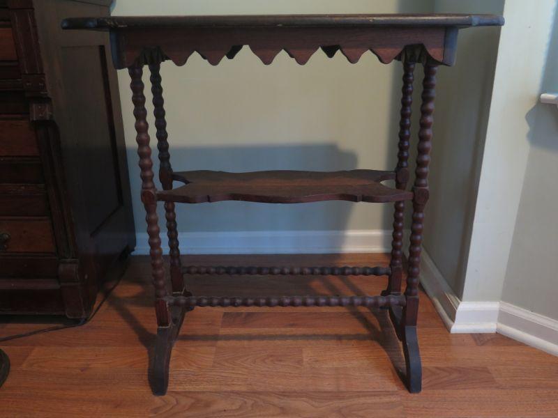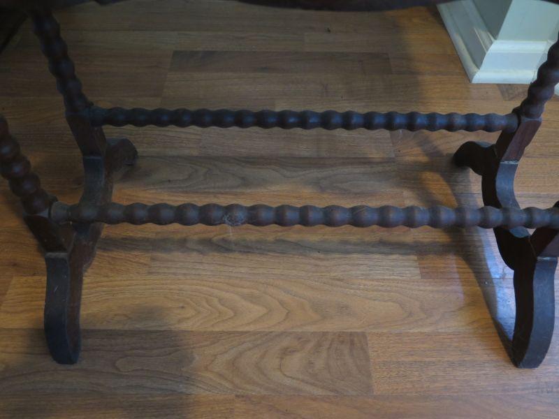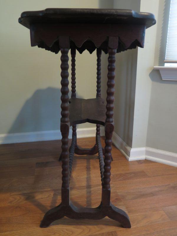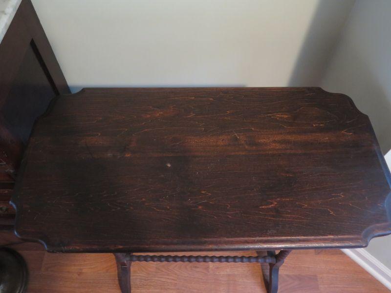 Beautiful antique mahogany side table with ball turned legs. **Please read Terms and Conditions before placing a bid. Pick up is Sunday, September 1, 2019 from 10am to 4pm in Williamstown. All sales are final. All sales are as is, where is. Please review all photos. Any props included in photos are not included in listing. All measurements are approximate.