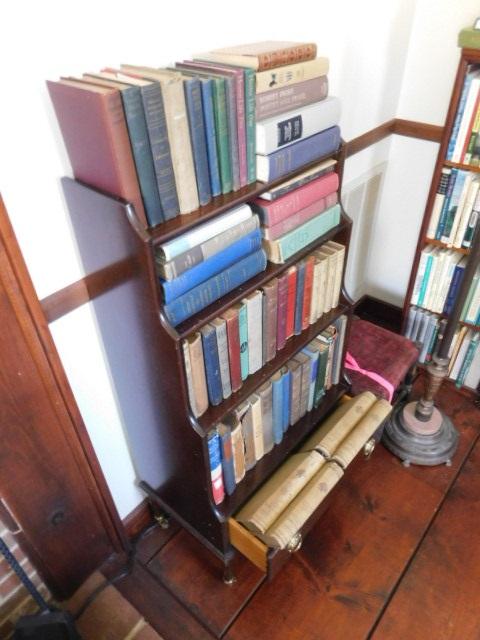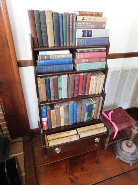 Antique Mahogany Stairstep Wood 4 Shelf Book Stand with Drawer 43"x22" (No Books)