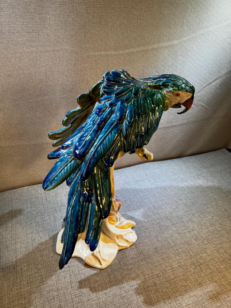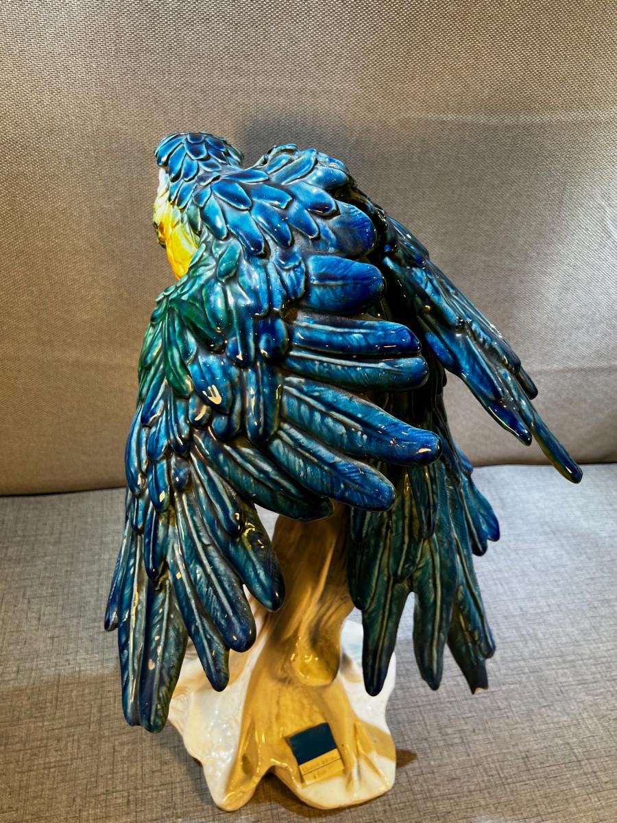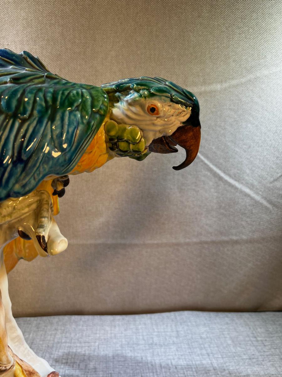 Impressive 19" tall Tropical Bird sculpture McCaw or Parrot. One tail feather chipped see photos.