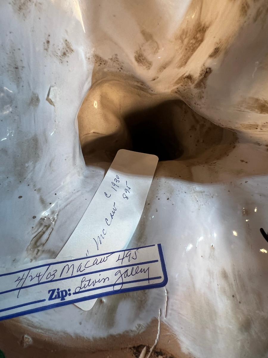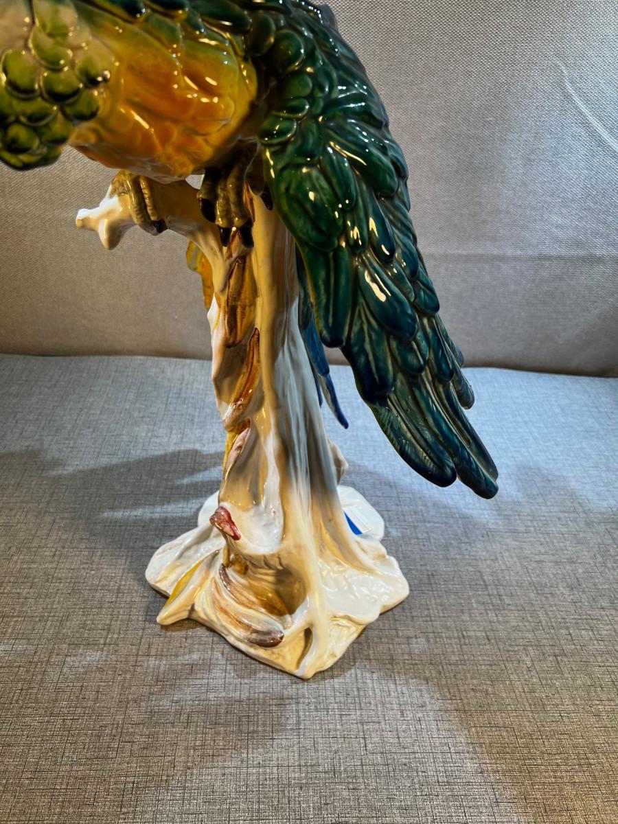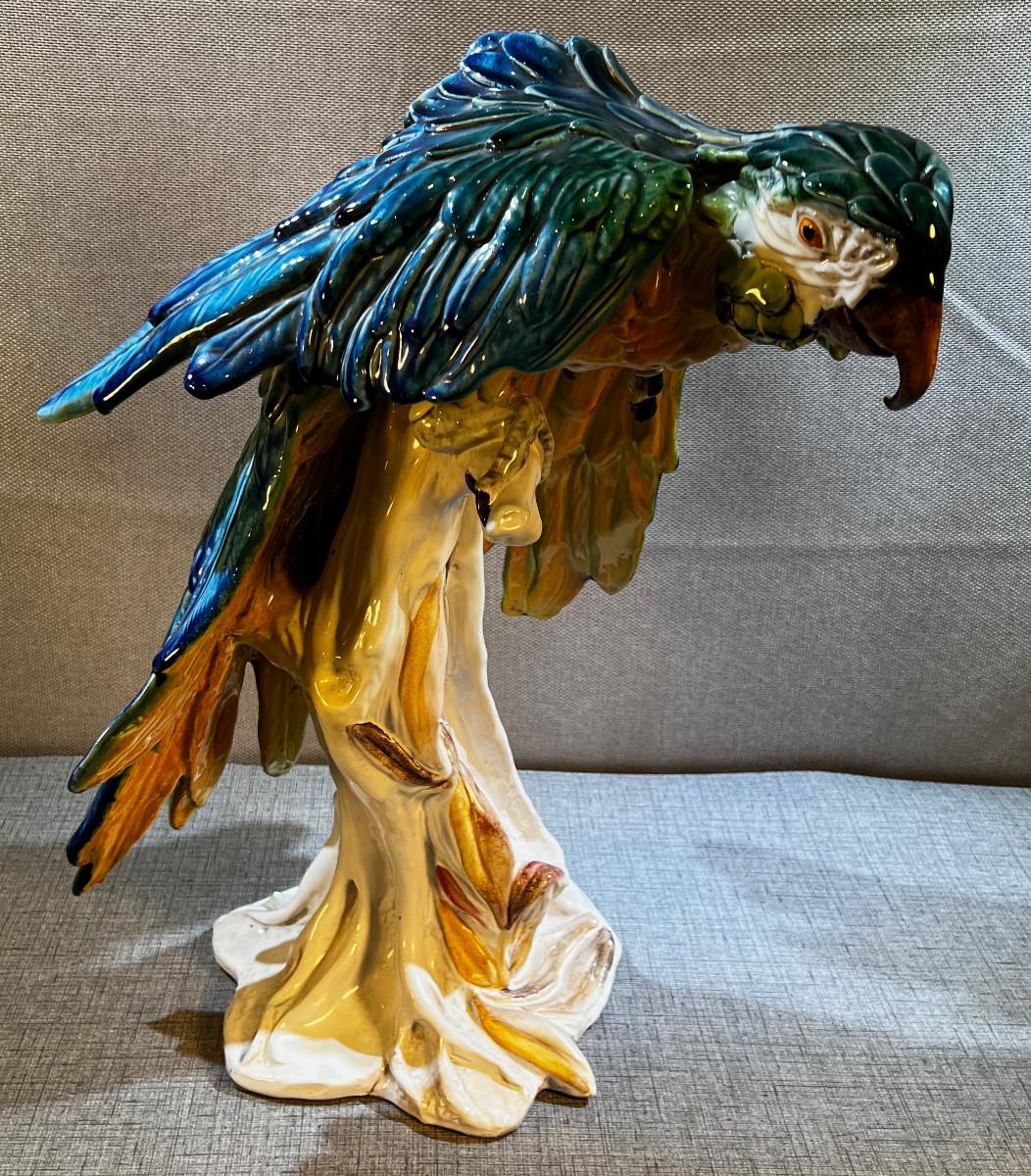 Impressive 19" tall Tropical Bird sculpture McCaw or Parrot. One tail feather chipped see photos.