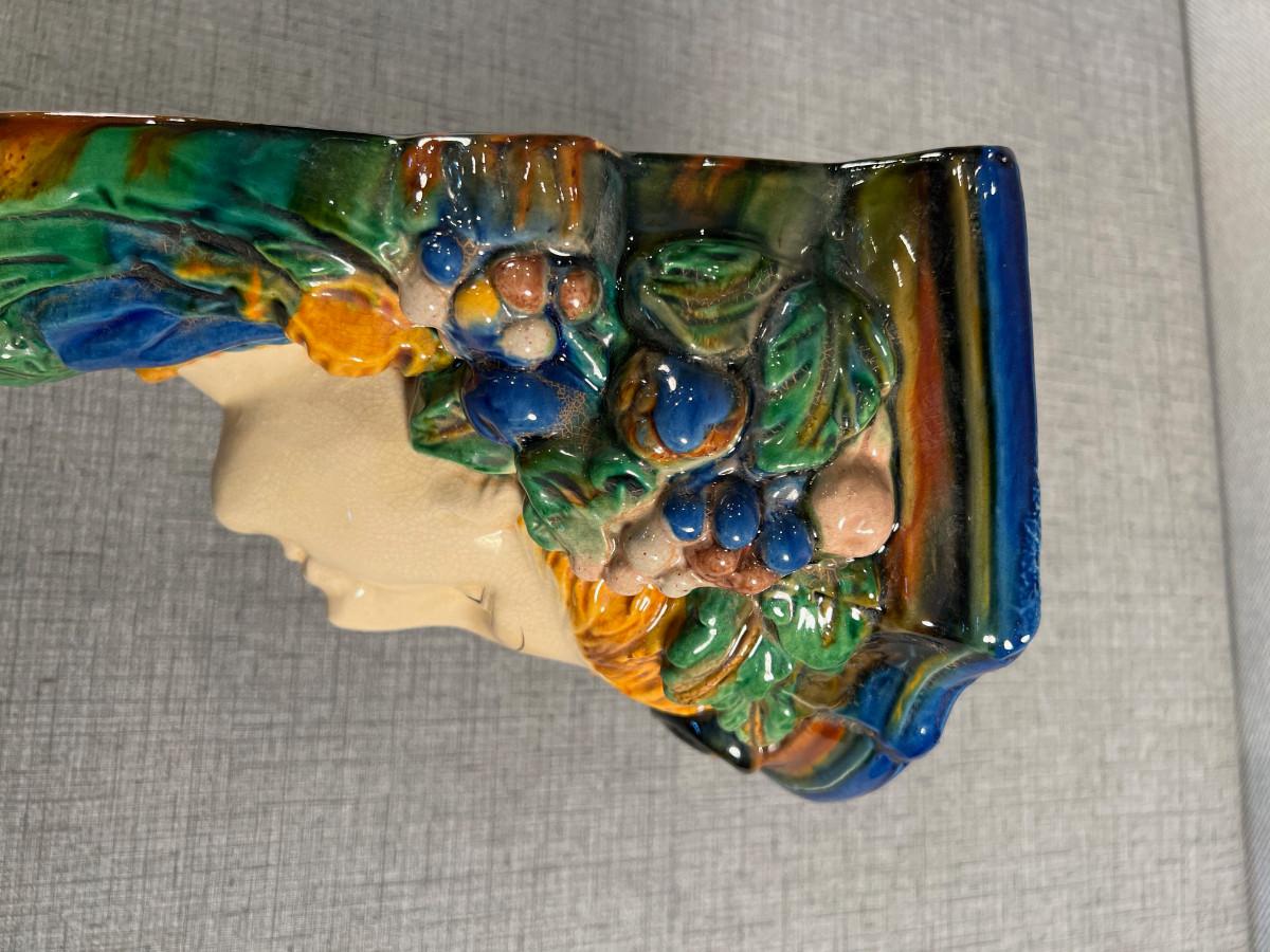 Excellent condition, most likely Italian Majolica. 12" length, 7" deep, 8" across.