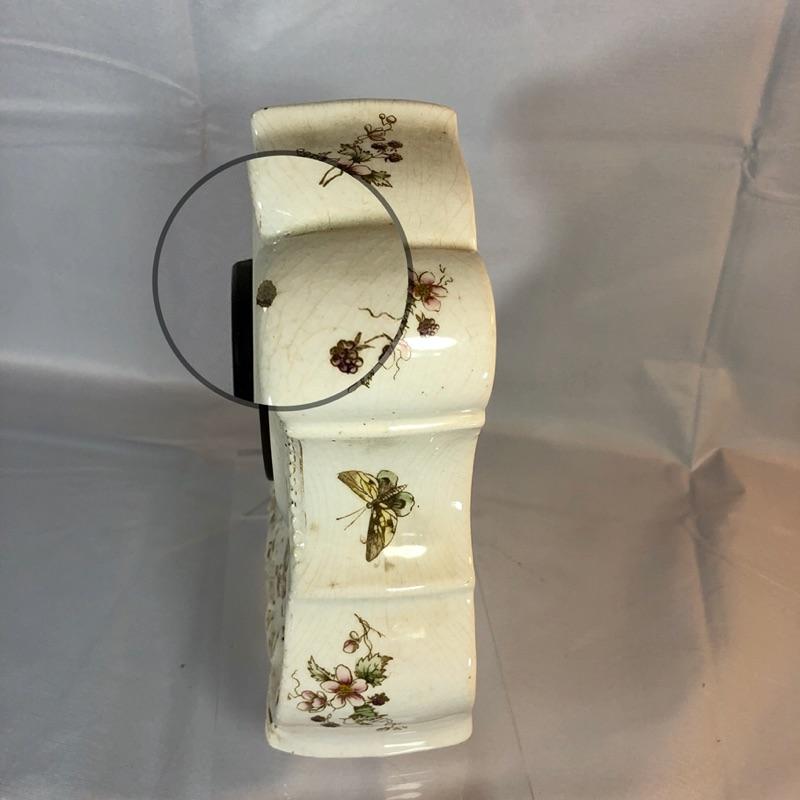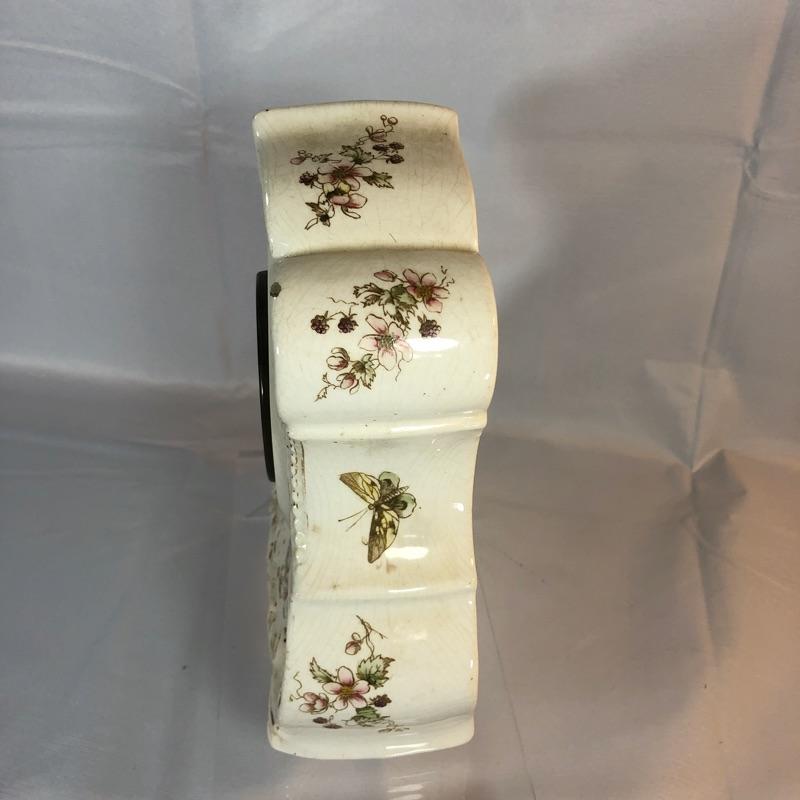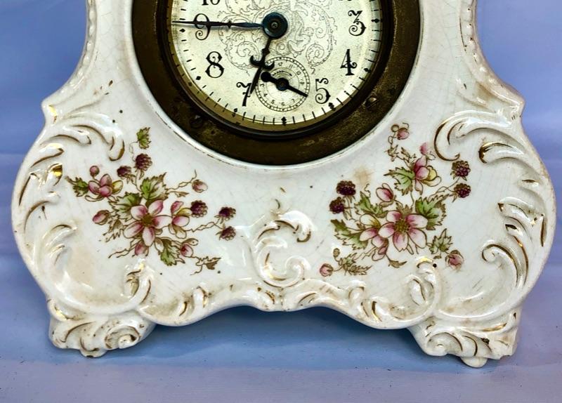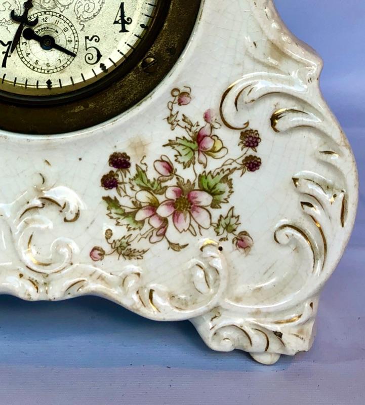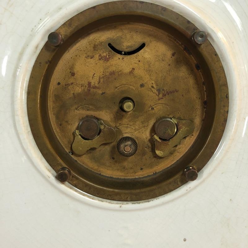 Alarm rings, it winds & ticks. Monitored for 12 hours and kept accurate time. Crazing throughout and condition typical for age and use with a few shallow chips and not that noticable.