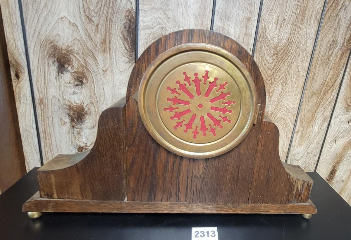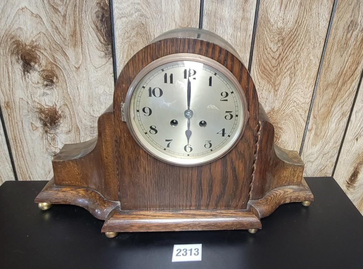 Needs work. As you're looking at this clock from the front, the side piece needs mended and is missing a screw. No clock key found.
