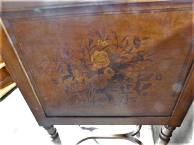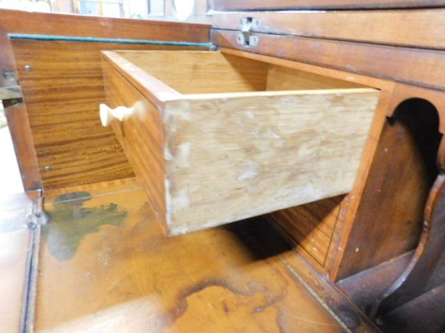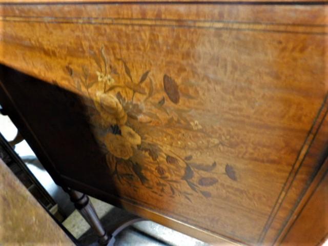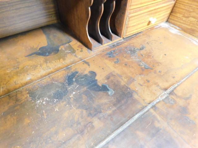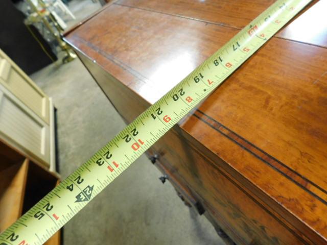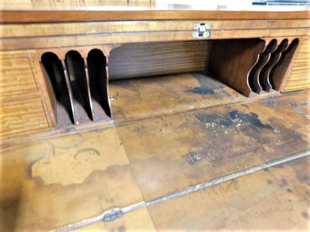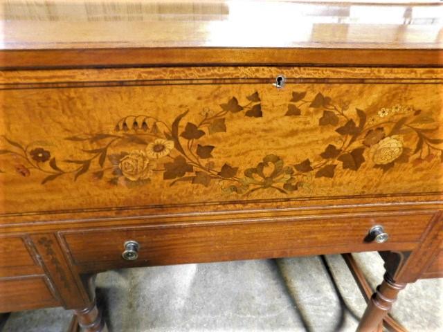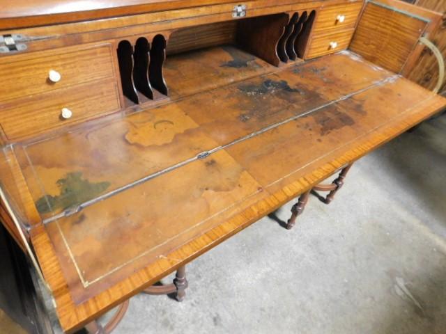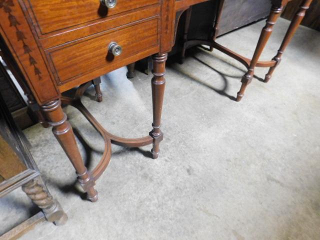 Antique Maple Writing Desk Sideboard with Rosewood Inlay and Bellflower Accents leather matting has stains as shown. This is a stunning piece