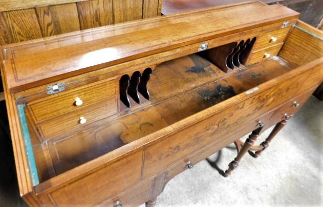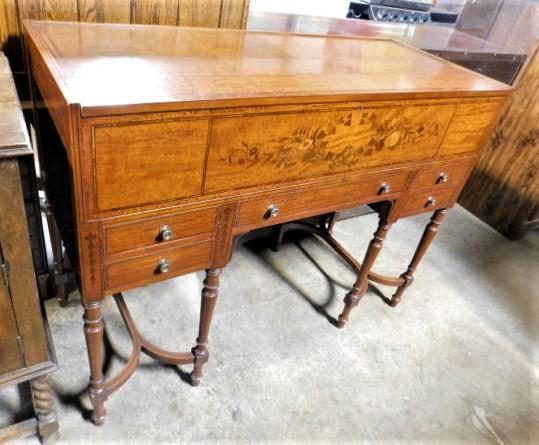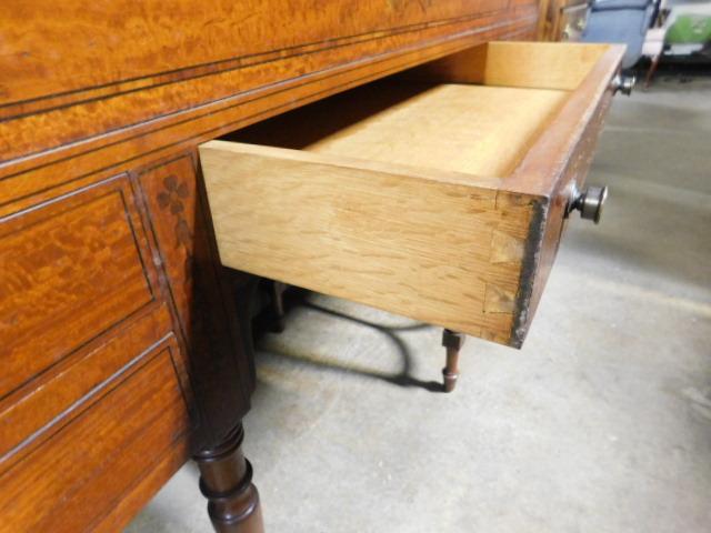 Antique Maple Writing Desk Sideboard with Rosewood Inlay and Bellflower Accents