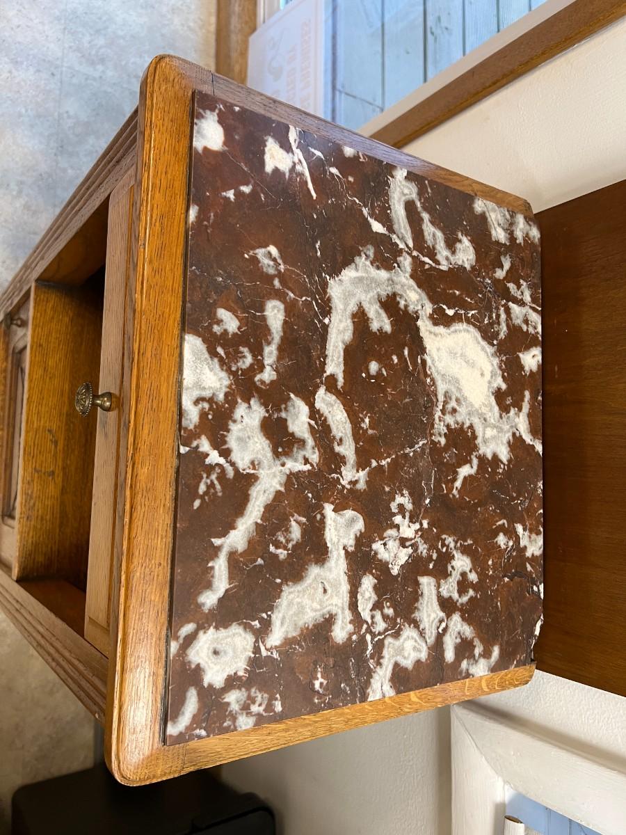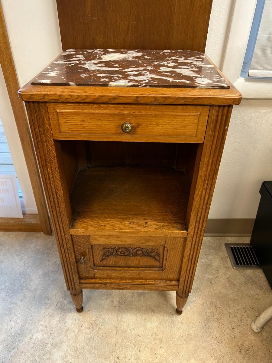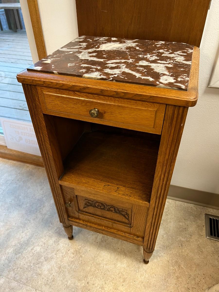 Antique Marble Top and Oak Side Cabinet