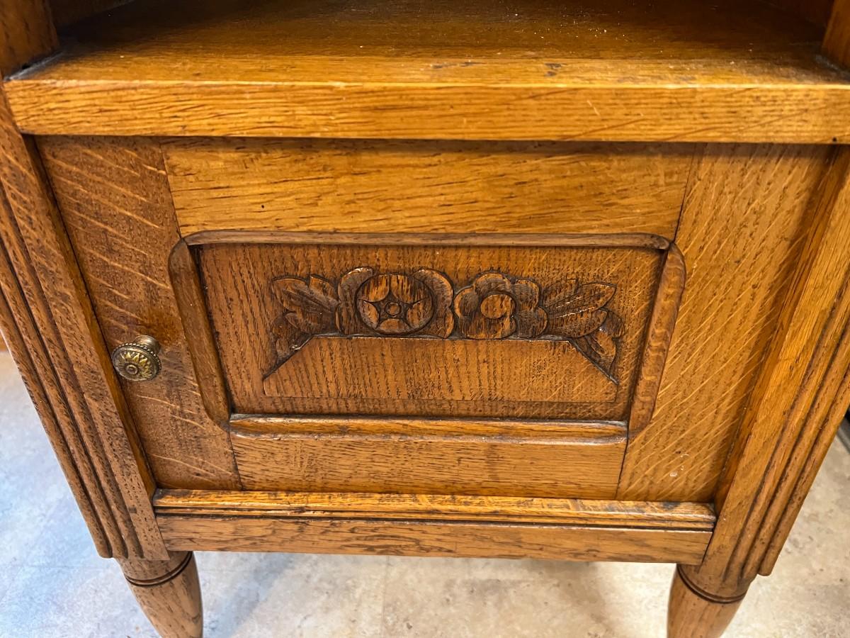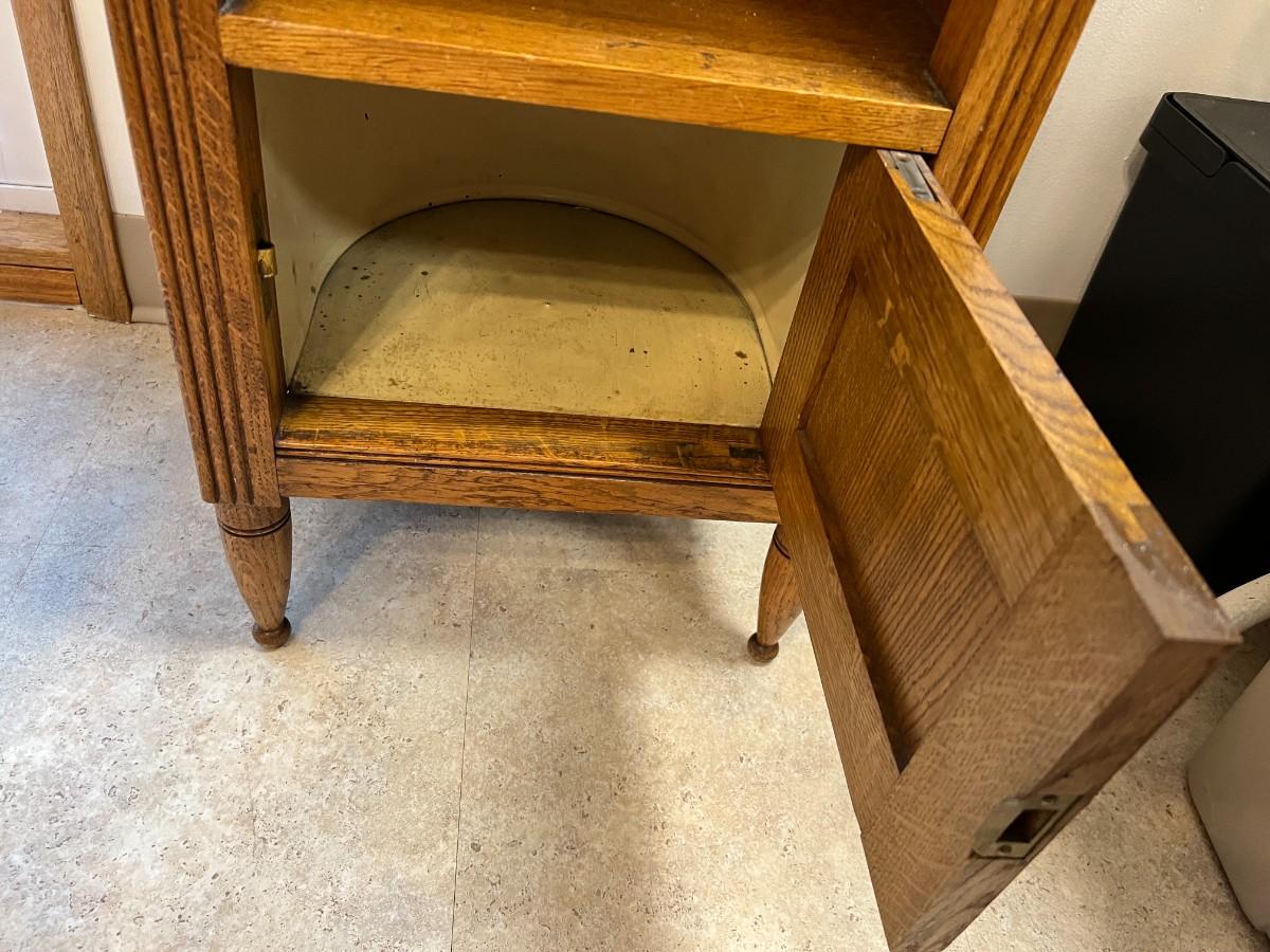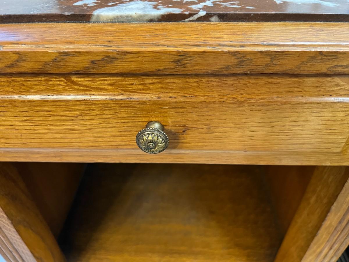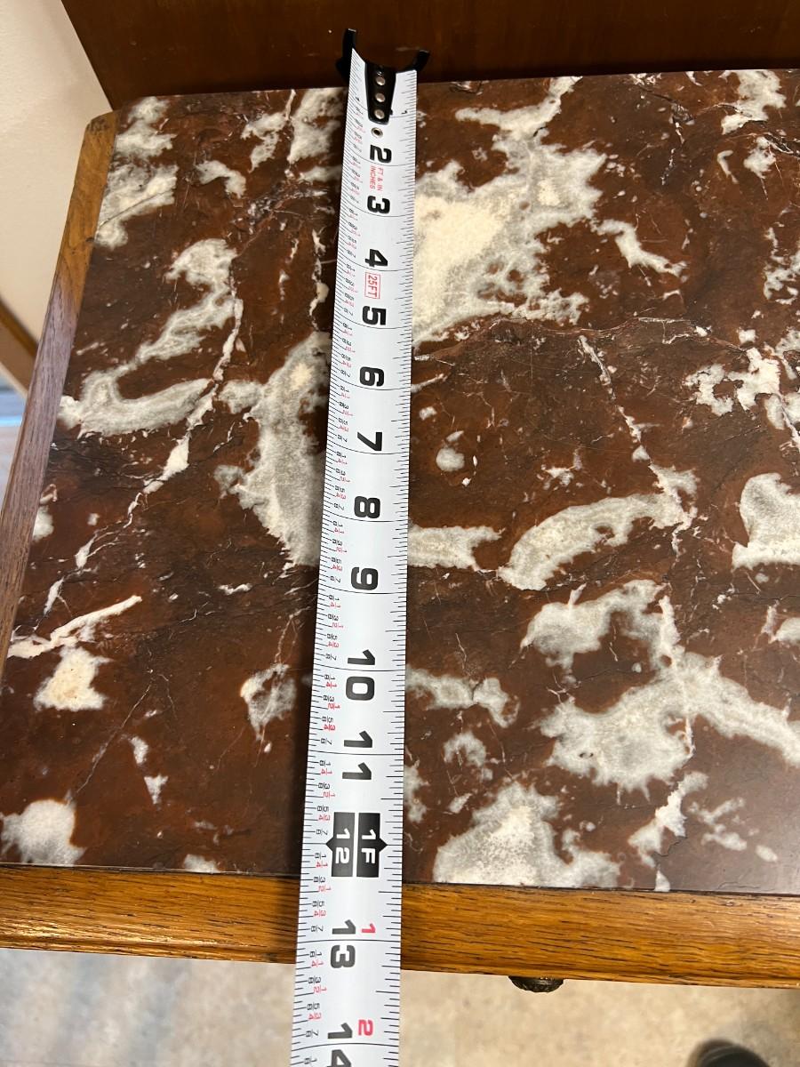 Antique Marble Top and Oak Side Cabinet
