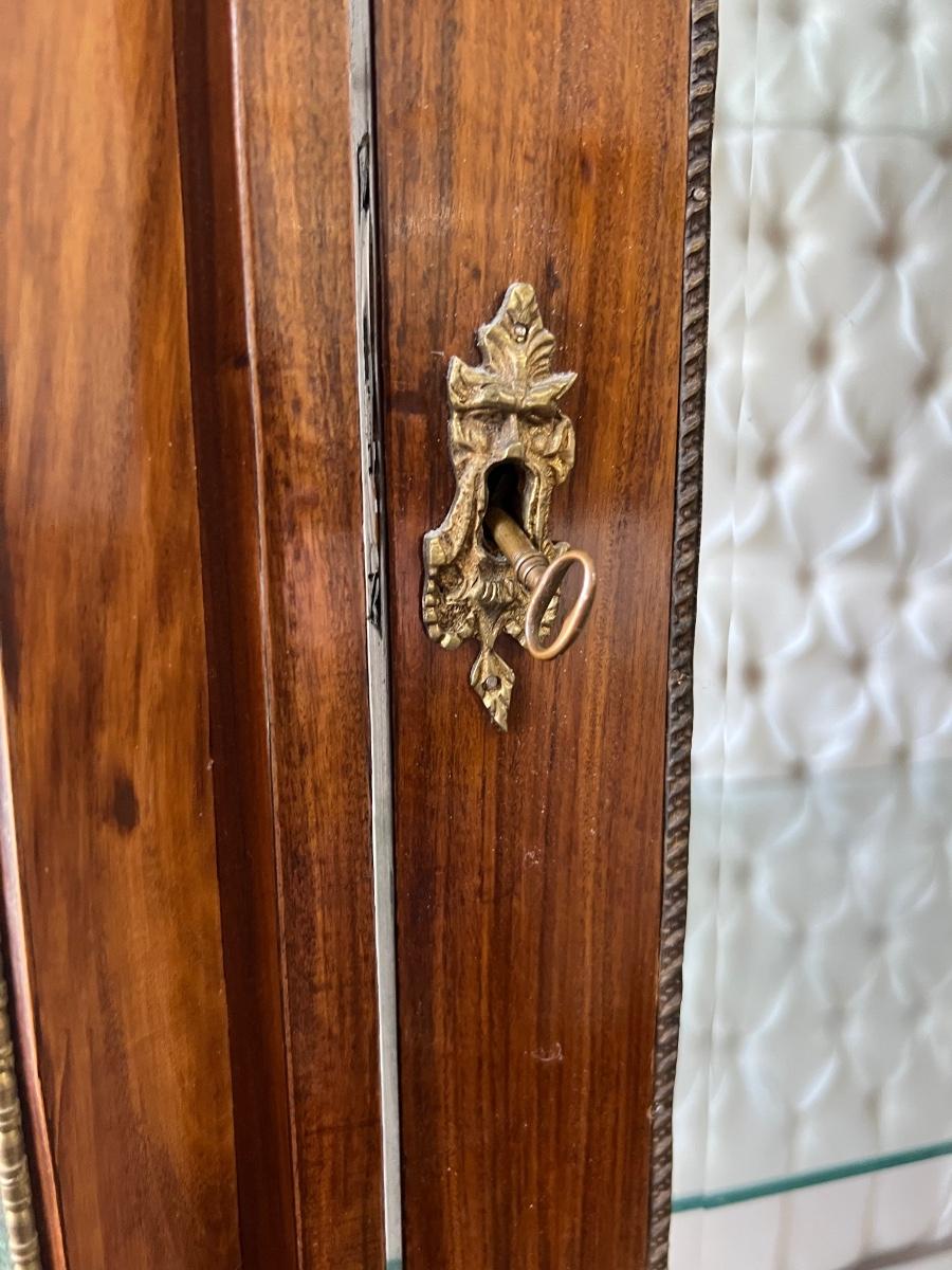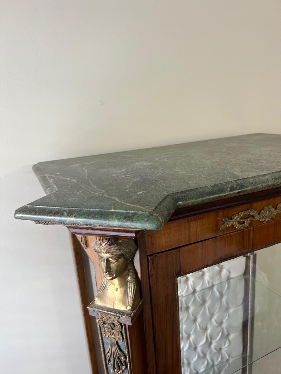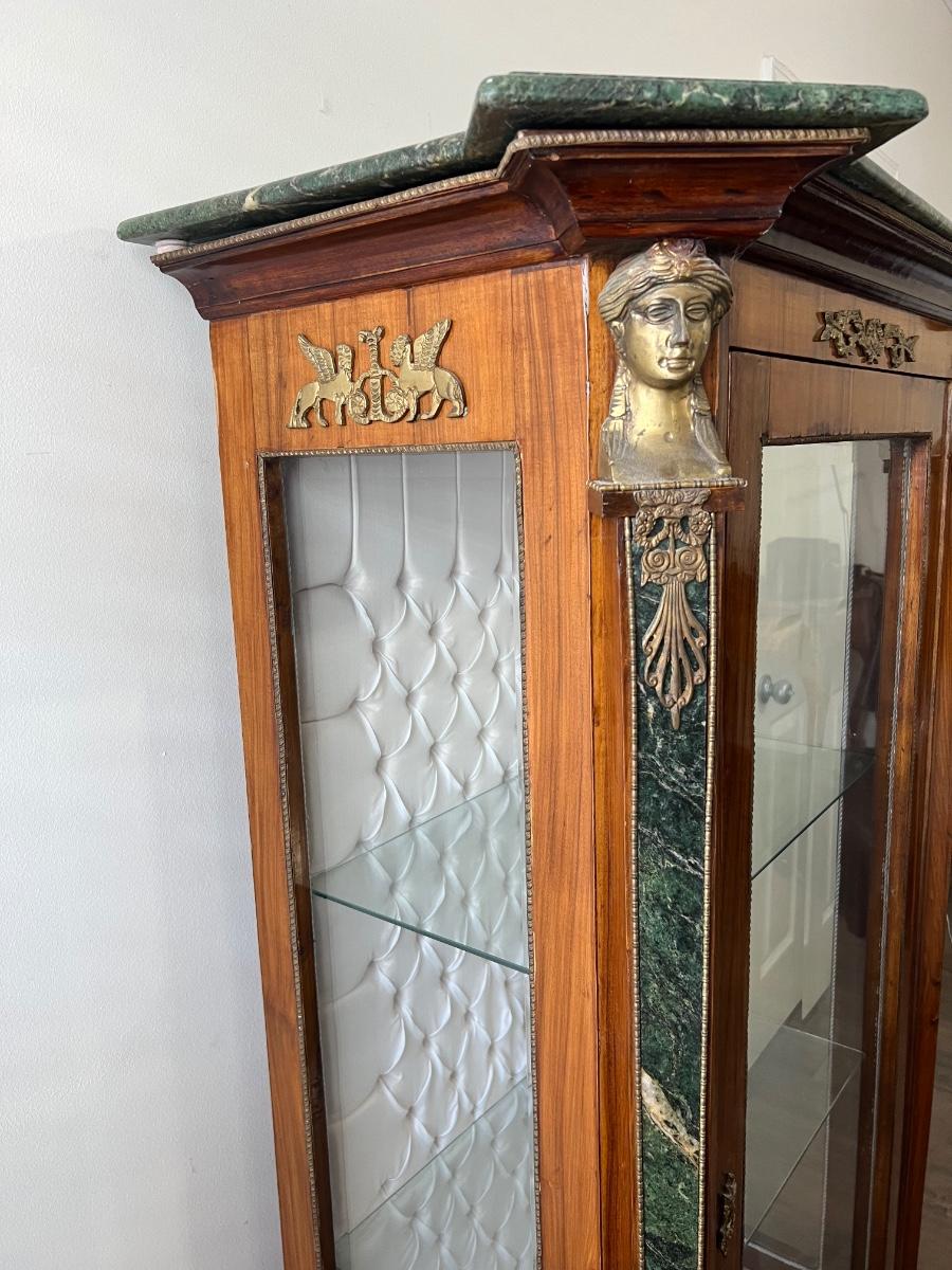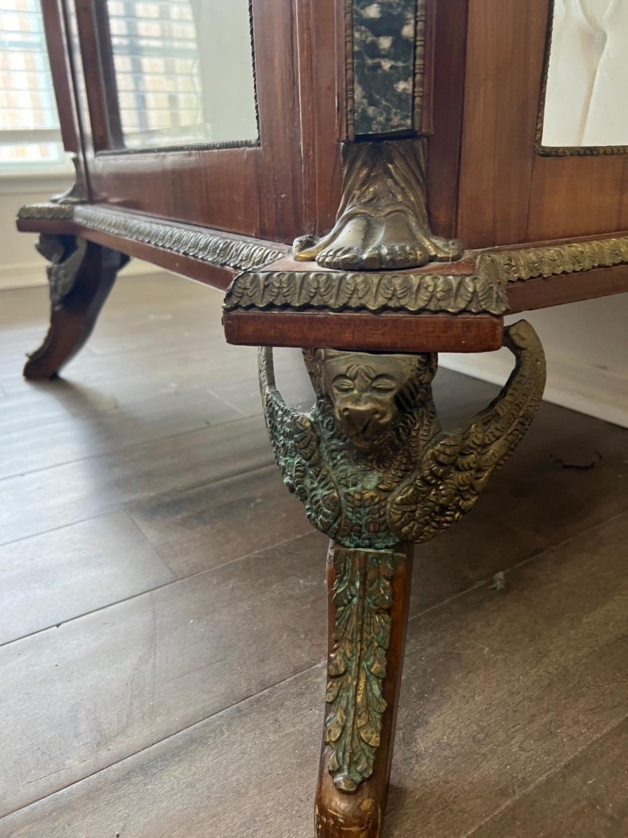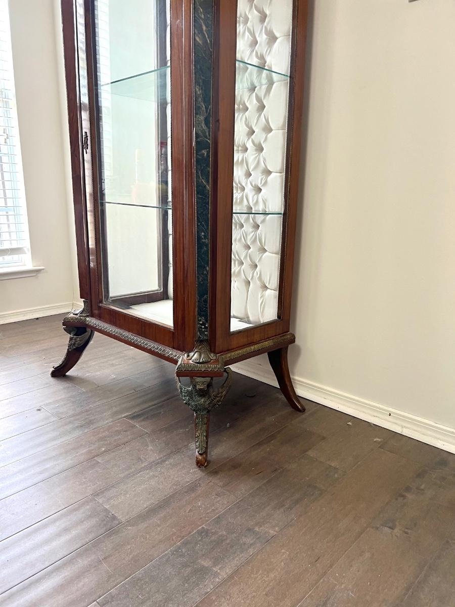 Antique Marble Top Curio Display Cabinet Tufted Interior