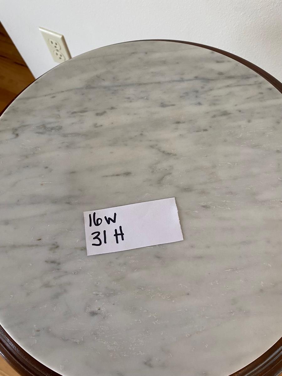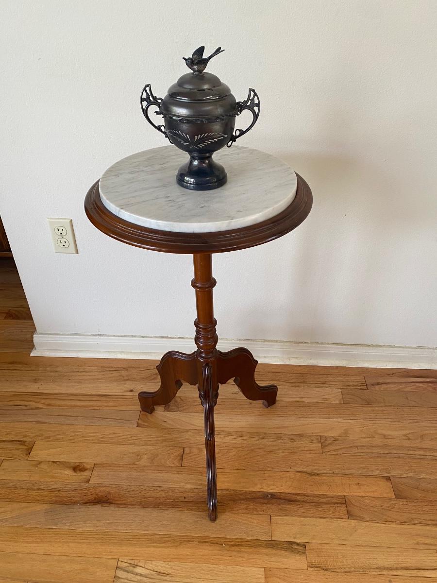 Antique marble top Eastlake mahogany candlestick table. VG condition.
