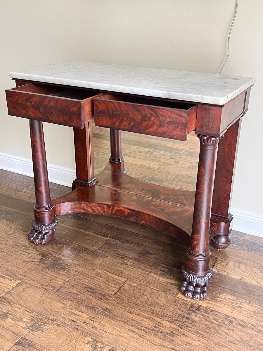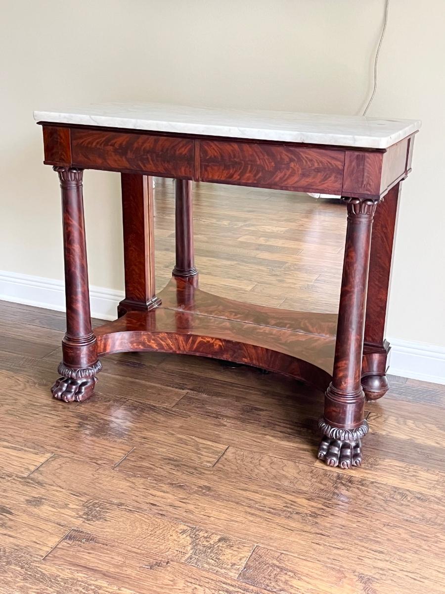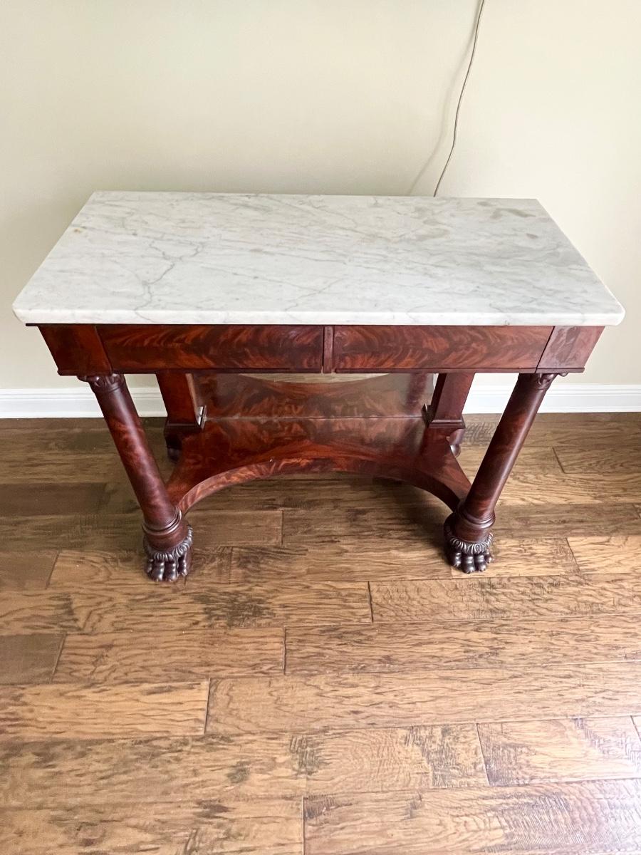 Early 1800's New York Empire Style Mahogany Original Carrera Marble Top ~ Mirrored
