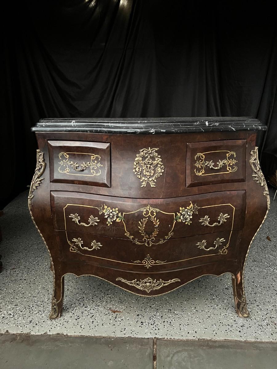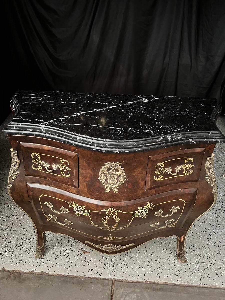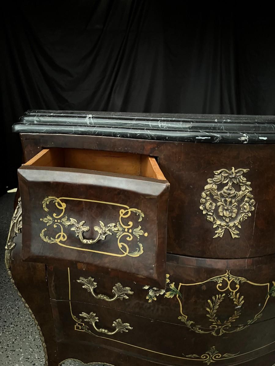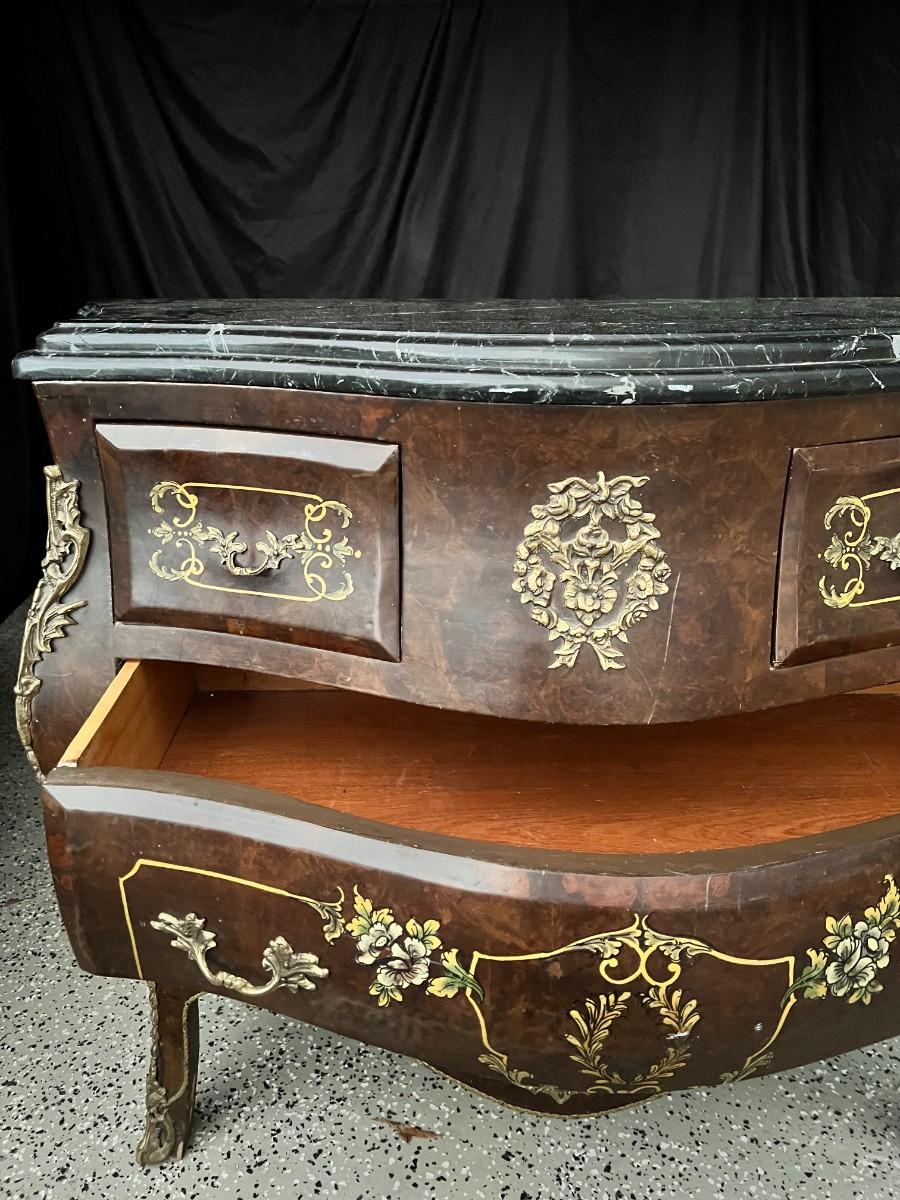Vintage Marble Top French Louis XV Style Bombe Chest of Drawers