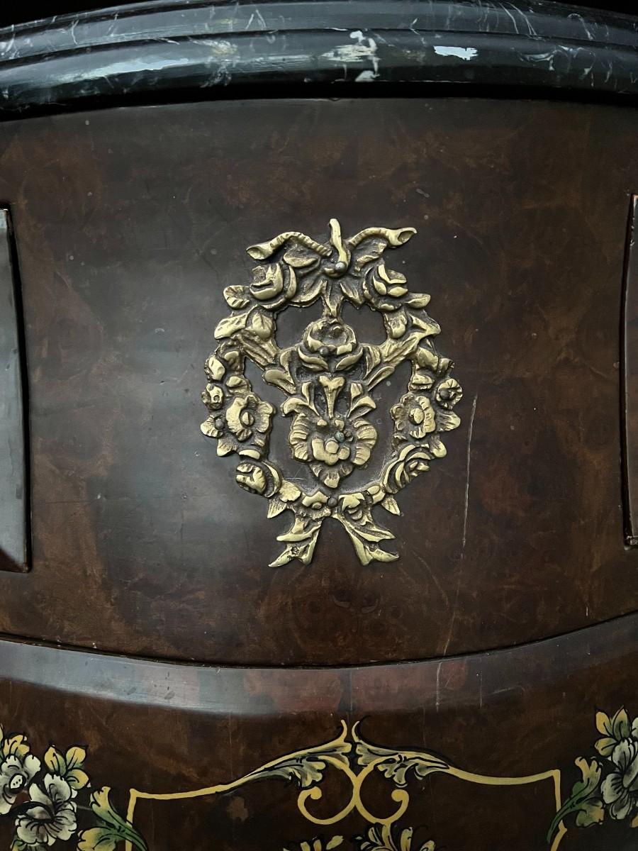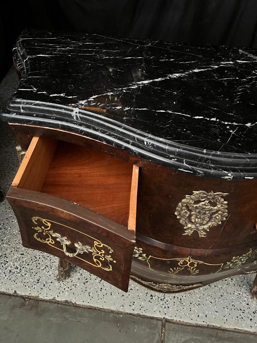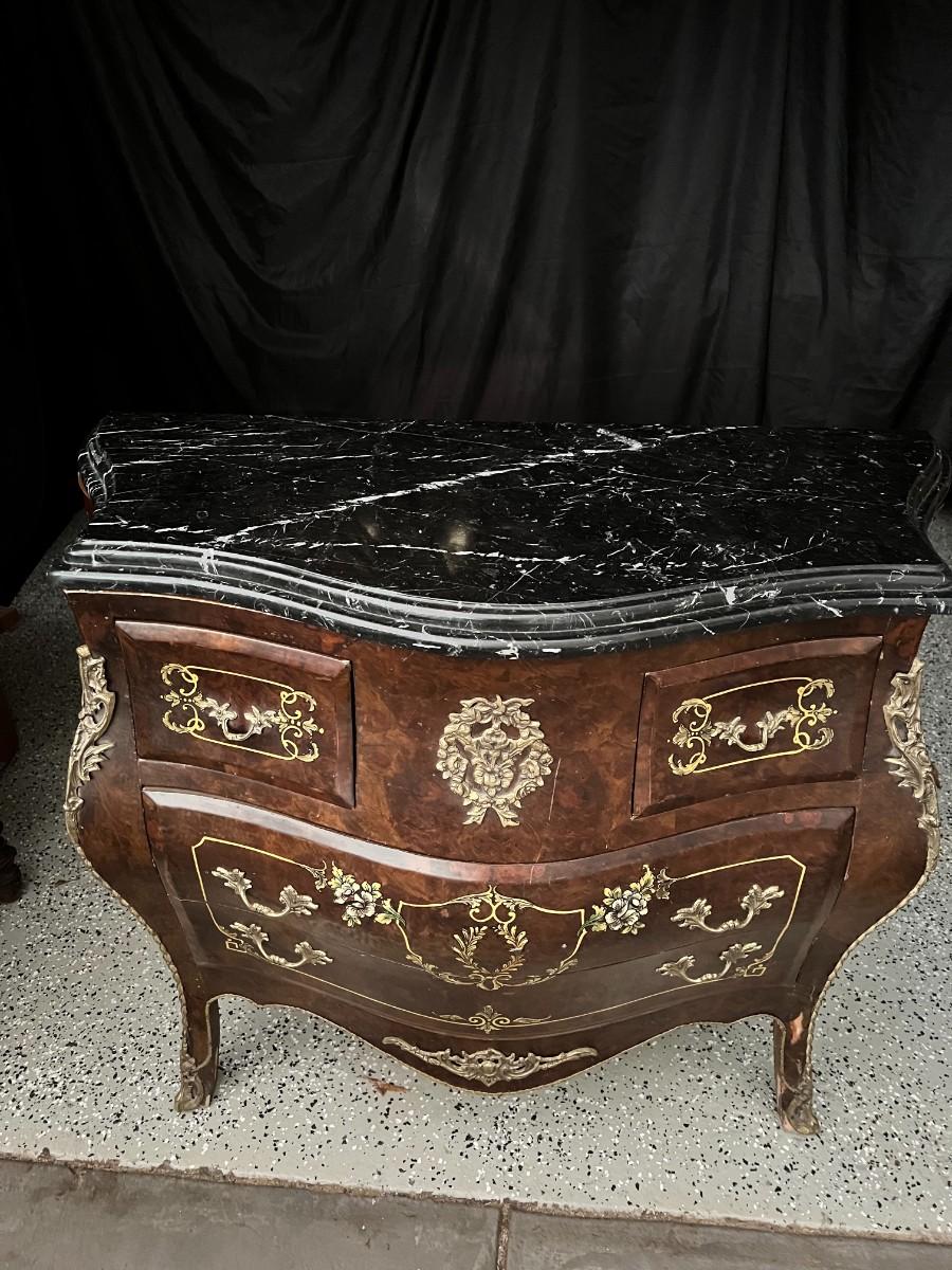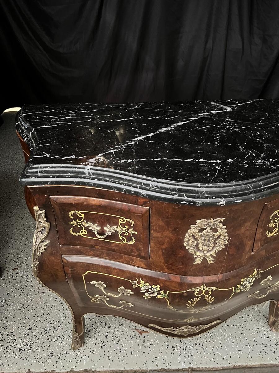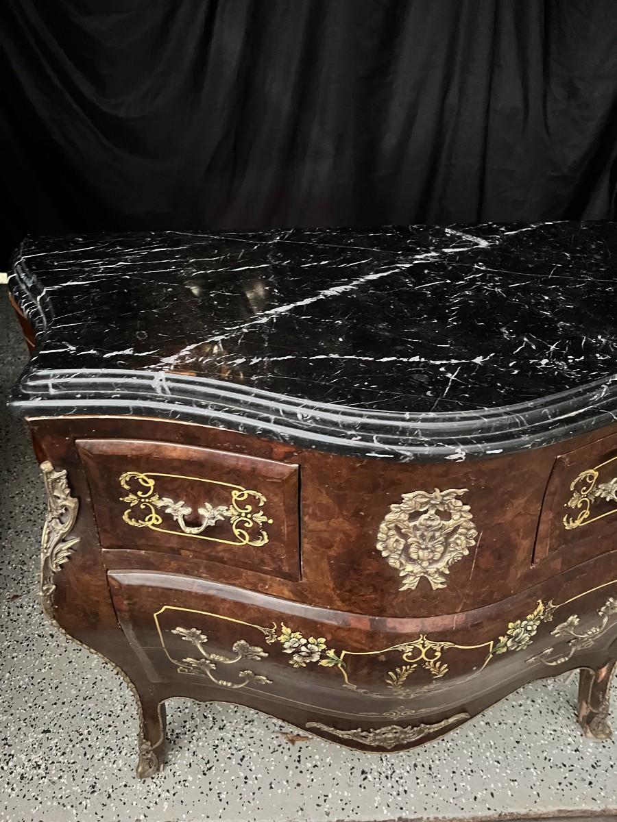 Vintage Marble Top French Louis XV Style Bombe Chest of Drawers