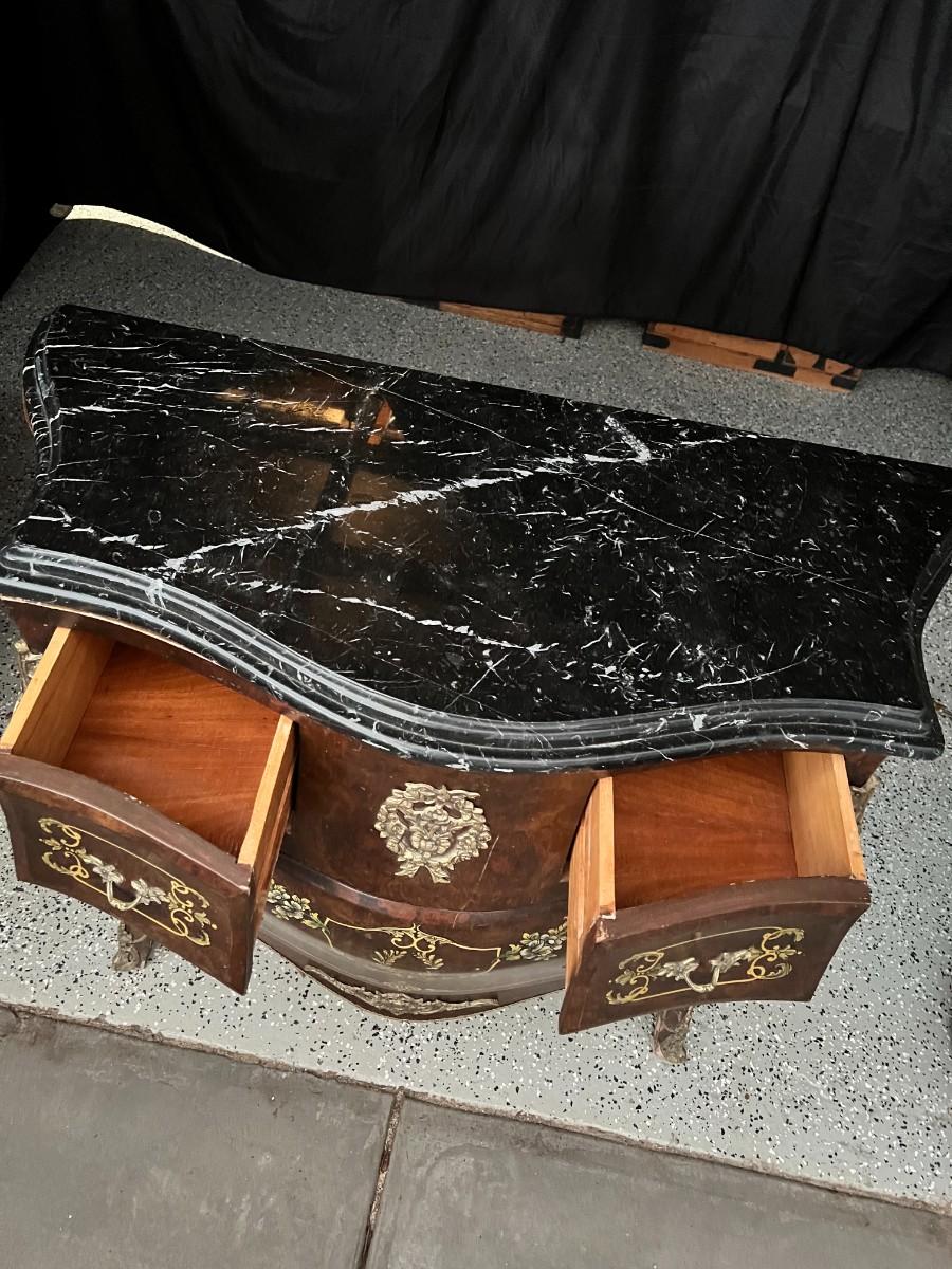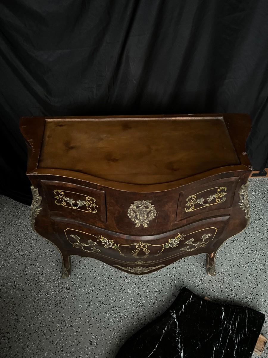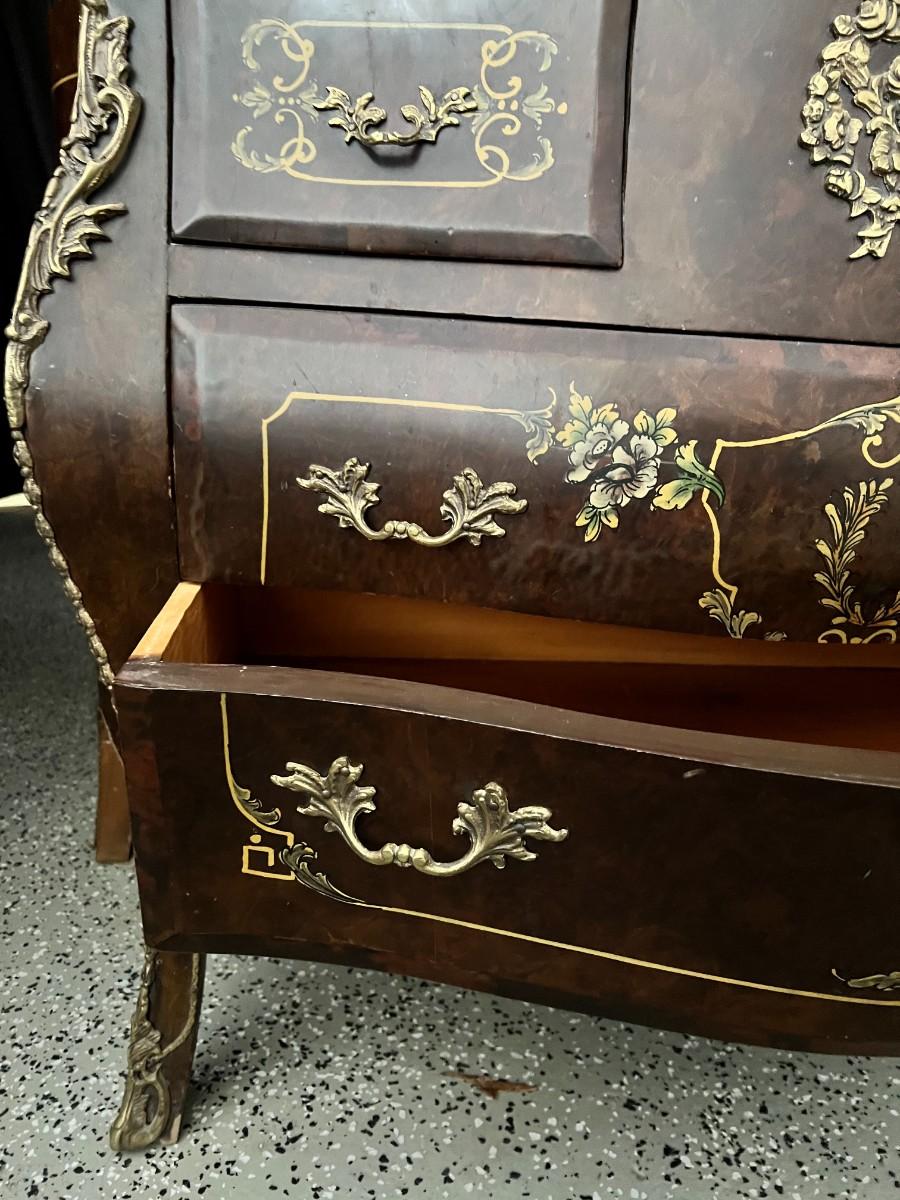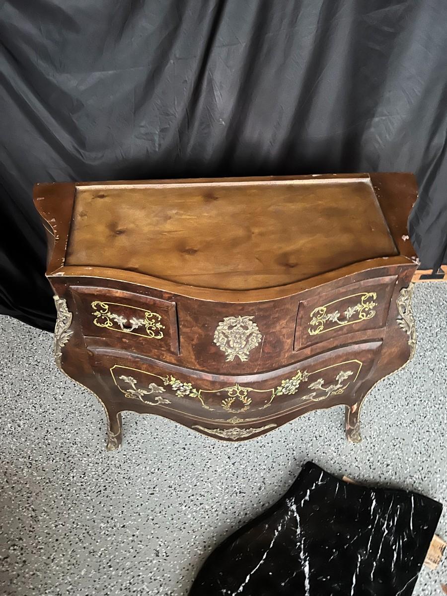 Vintage Marble Top French Louis XV Style Bombe Chest of Drawers