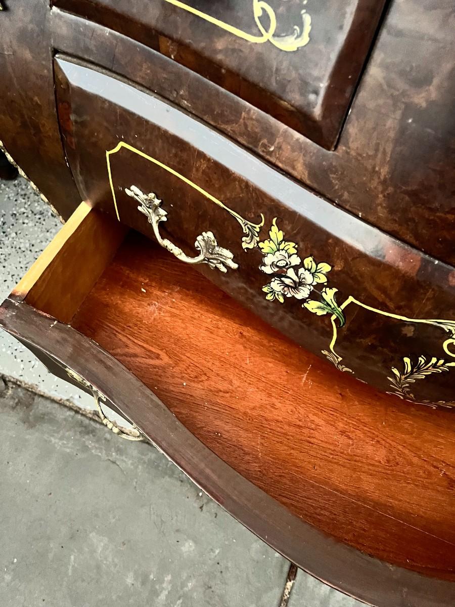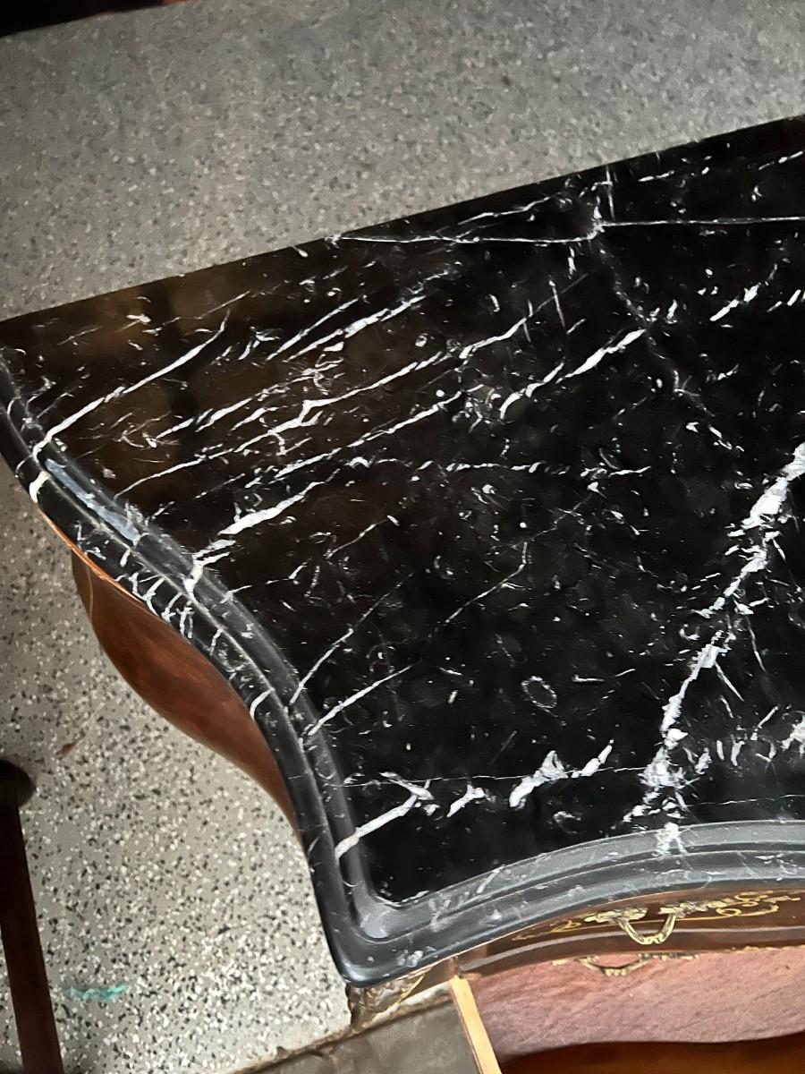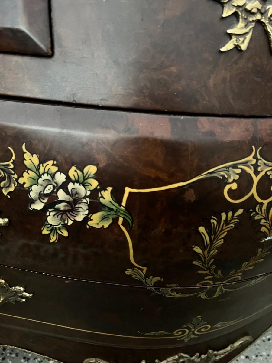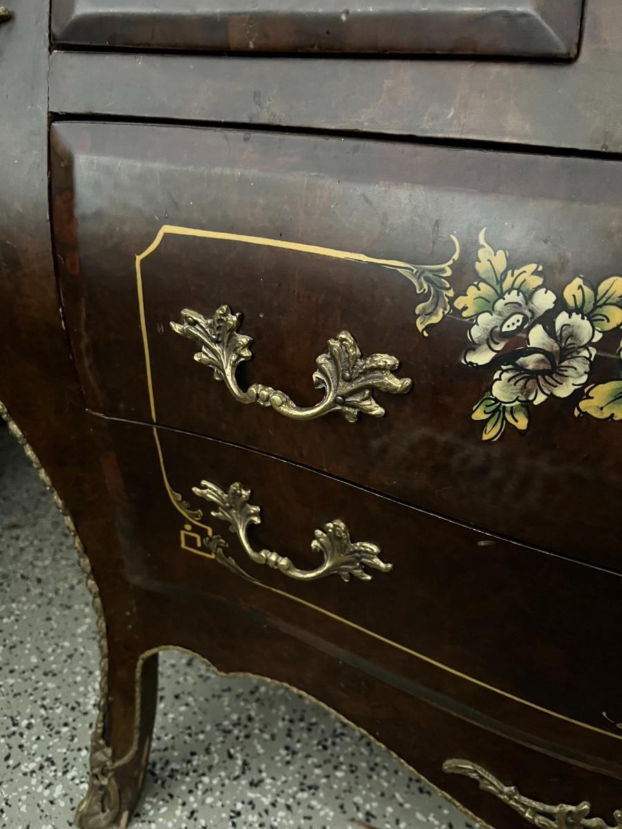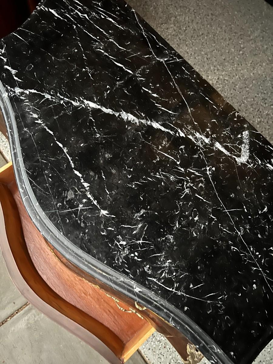 Vintage Marble Top French Louis XV Style Bombe Chest of Drawers