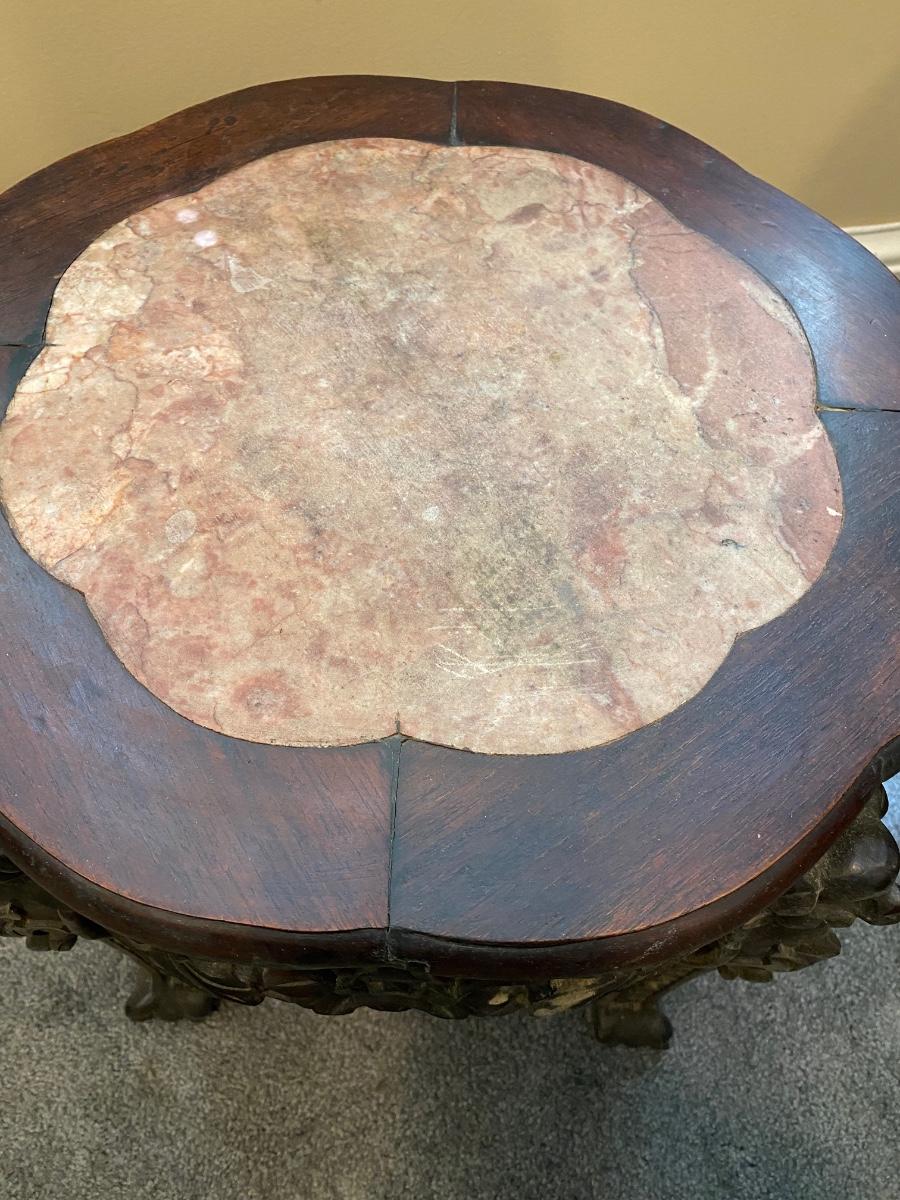 Antique Marble Top Low Plant Stand, Ornate, 27Tx23W