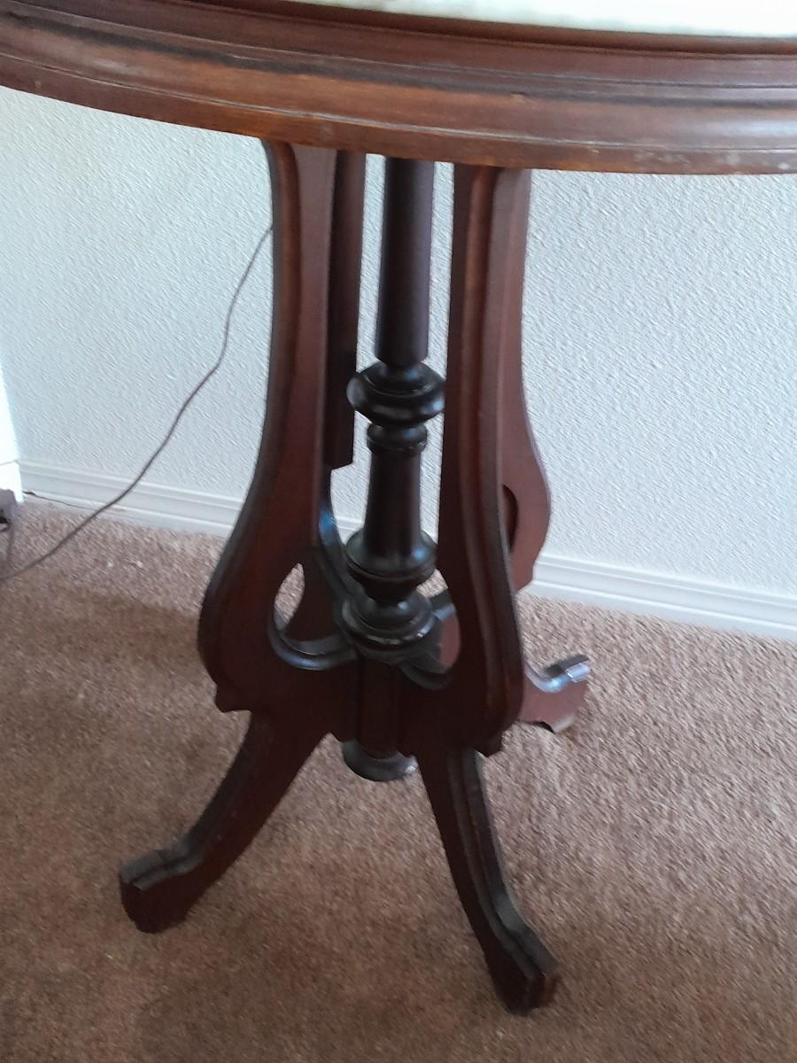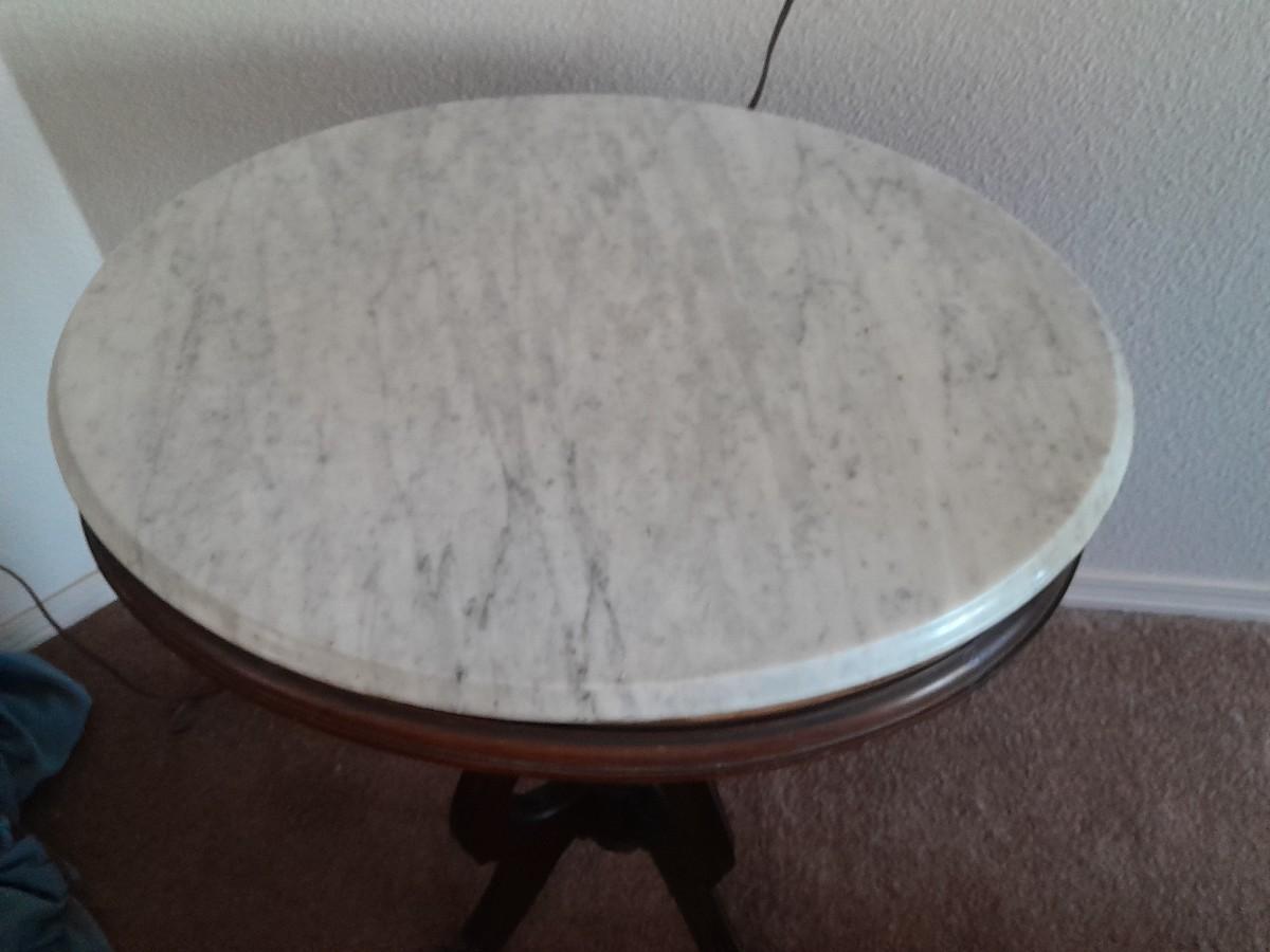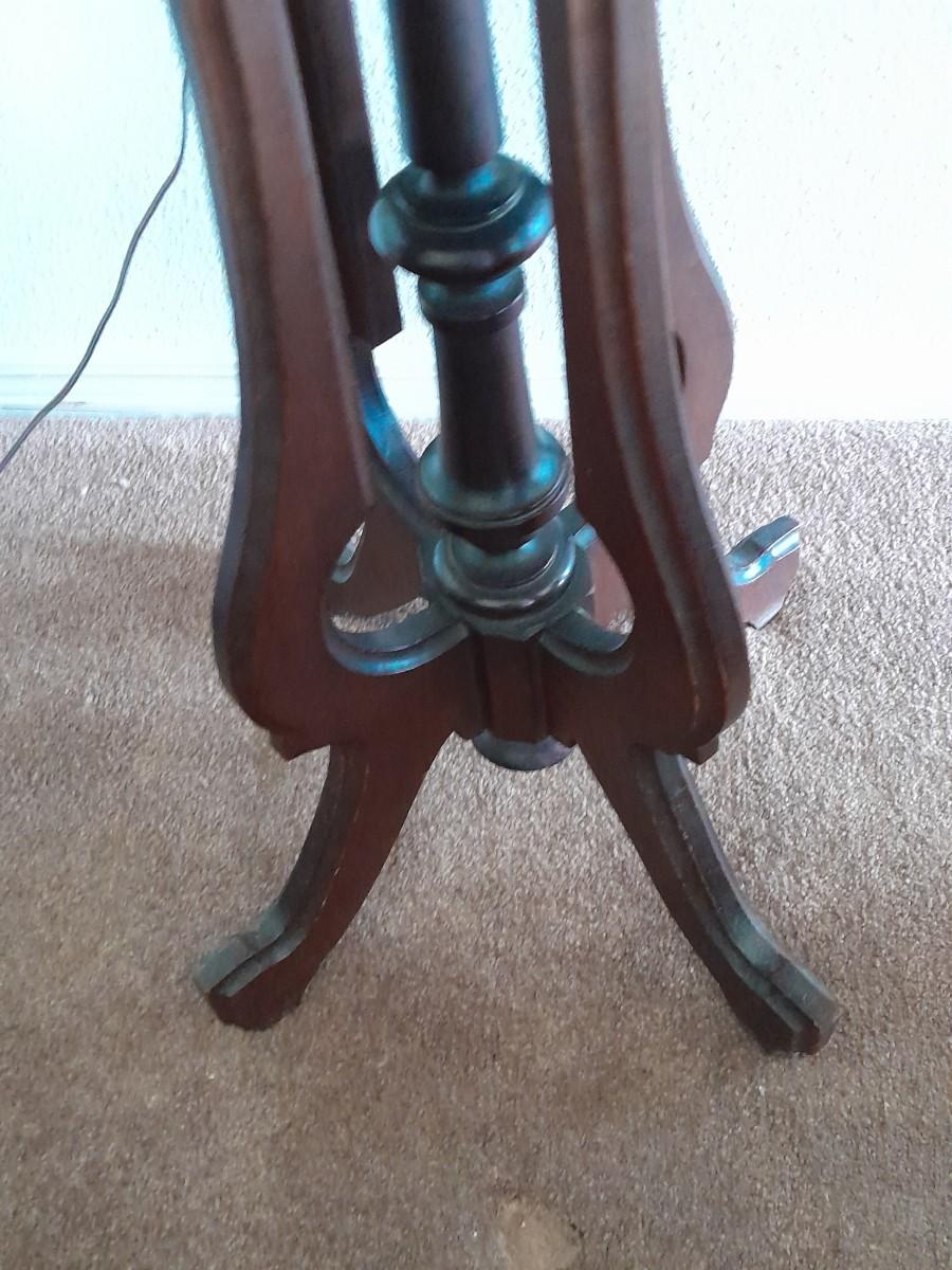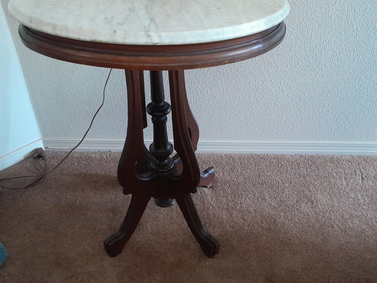 THE TABLE IS 18" ROUND AND 24" TALL, THE LAMP IS 28" TALL