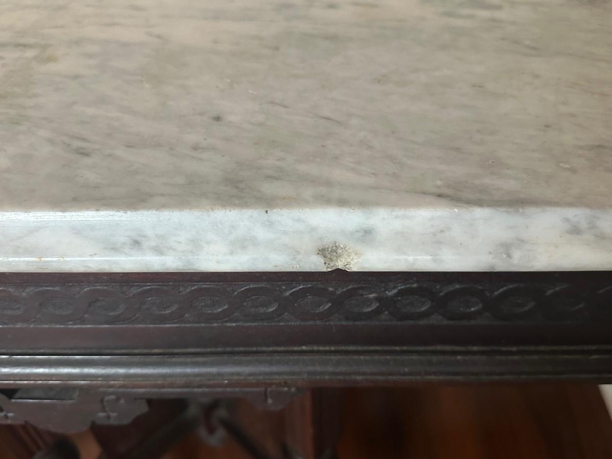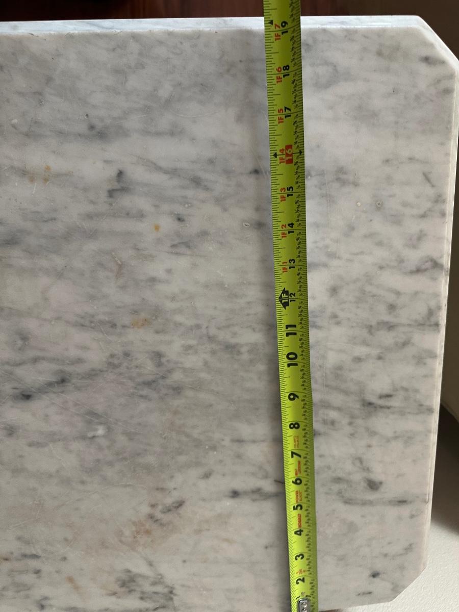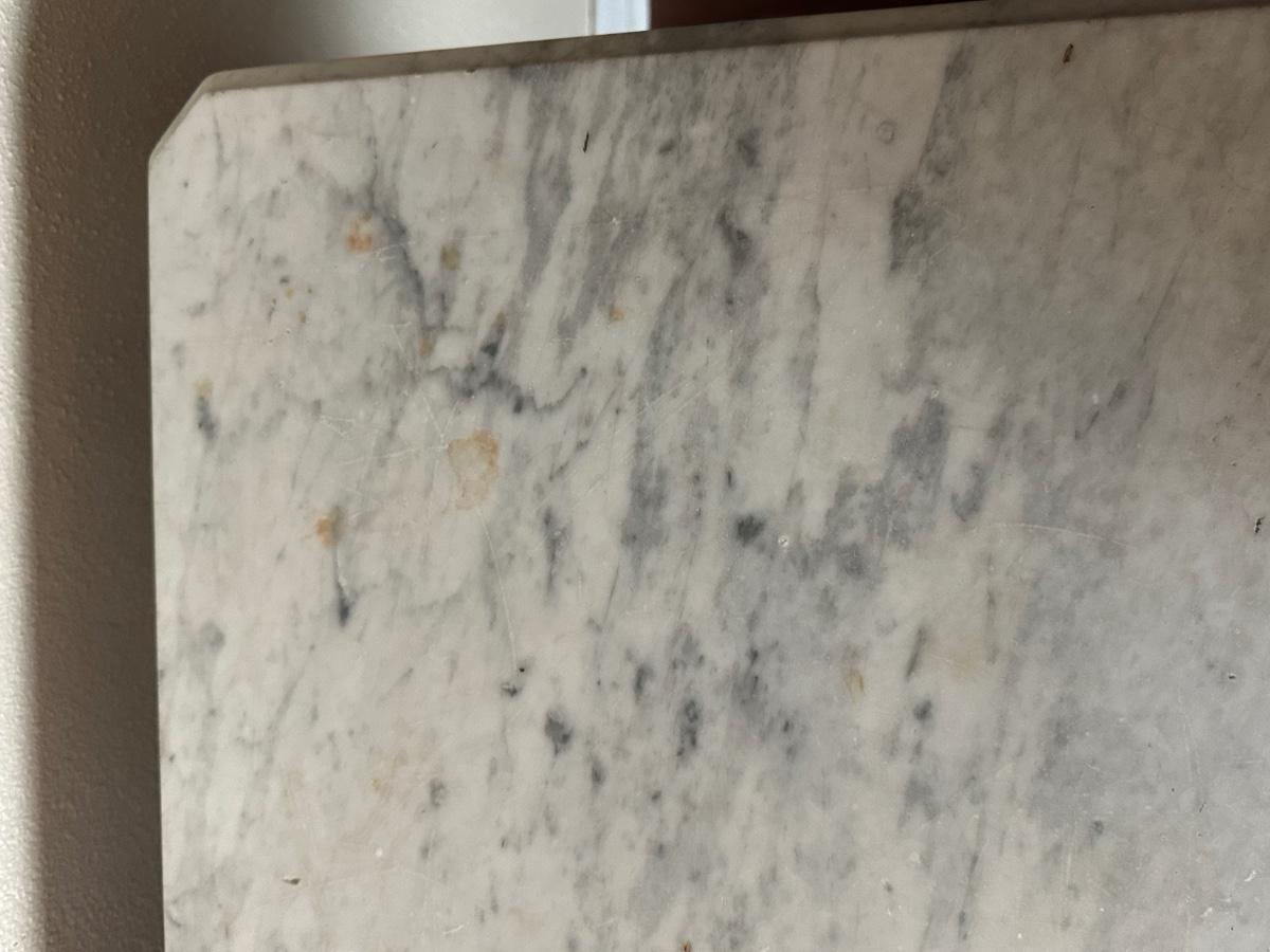 Surface scratches and some staining consistent with use. Small chip noted on the marble. Please review photos for full condition.