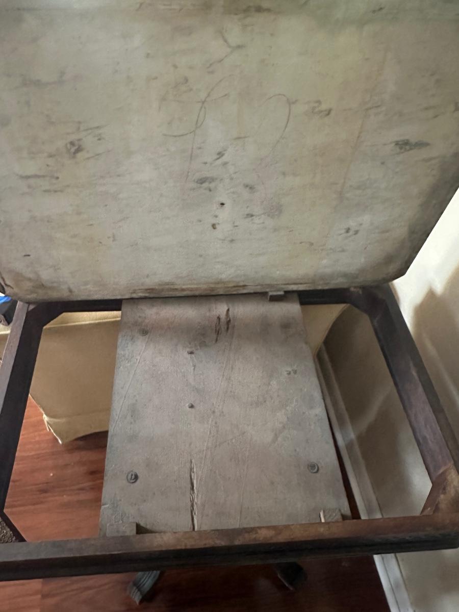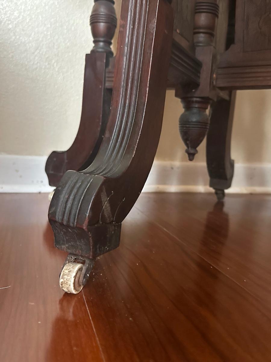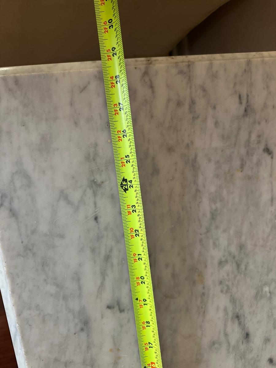Surface scratches and some staining consistent with use. Small chip noted on the marble. Please review photos for full condition.