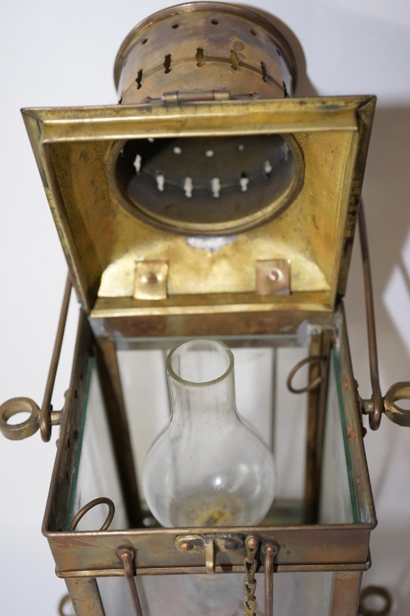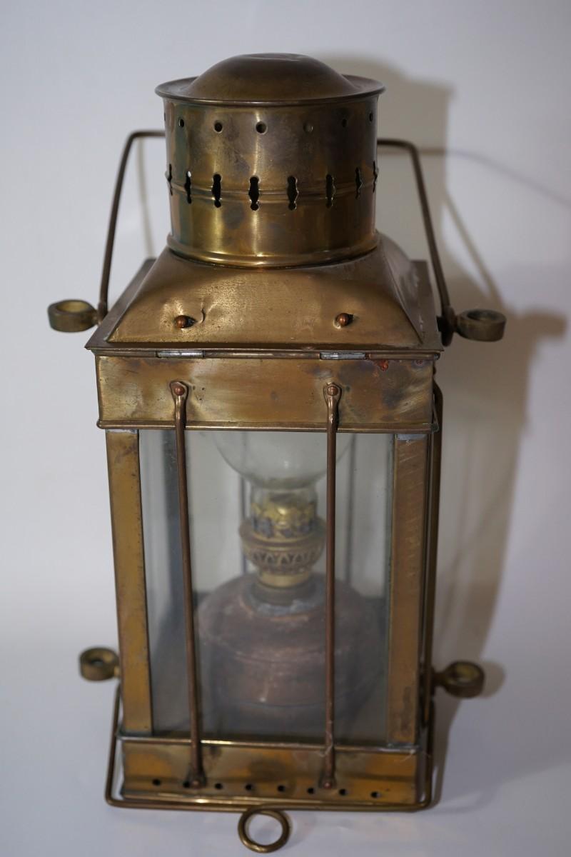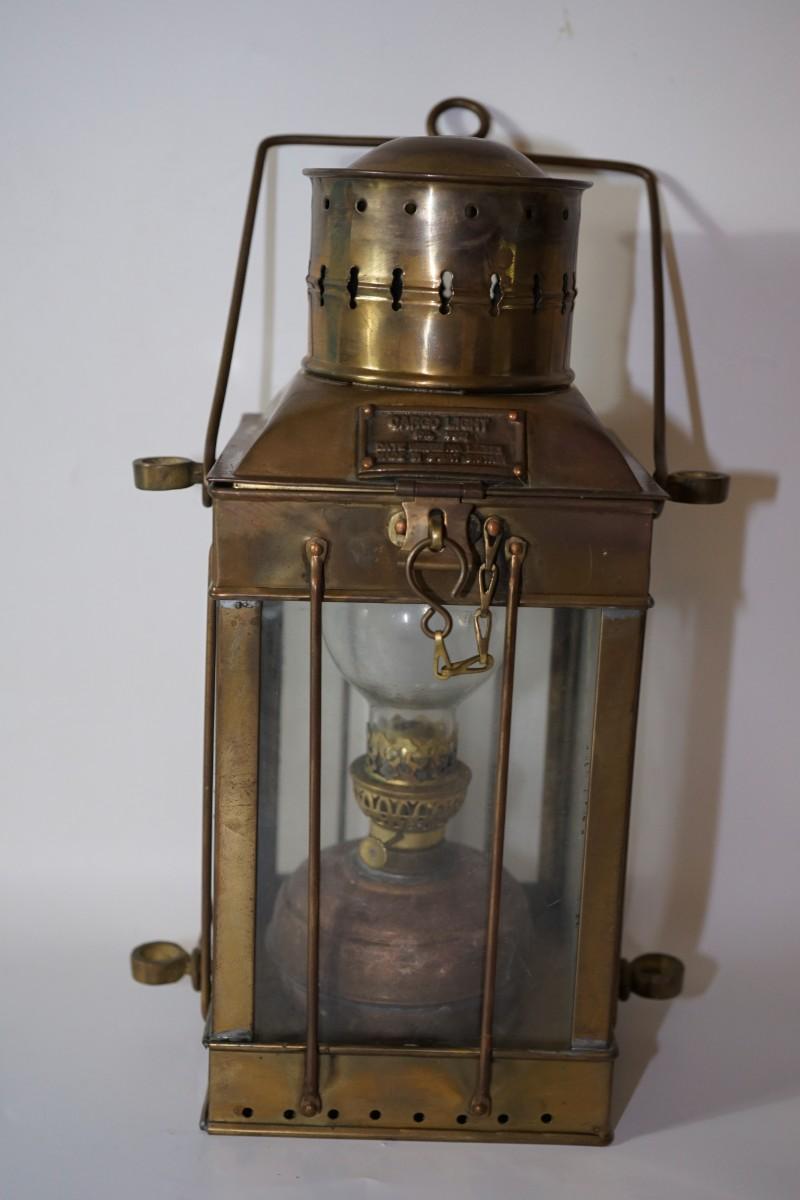 ANTIQUE MARITIME NAUTICAL ENGLISH BRASS HANGING CARGO OIL LAMP