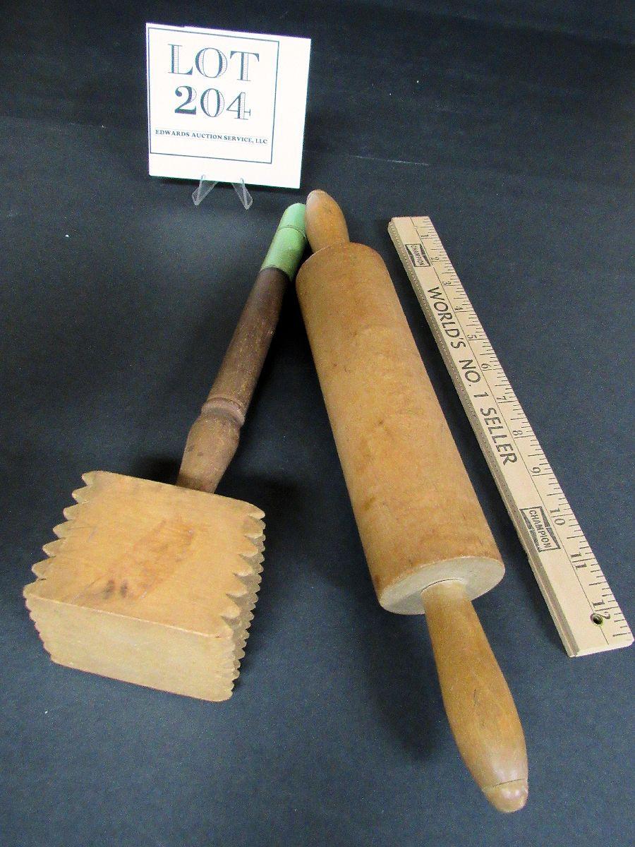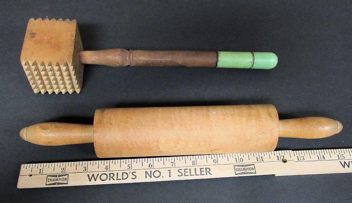 Antique Meat Tenderizer and Vintage Wood Rolling Pin