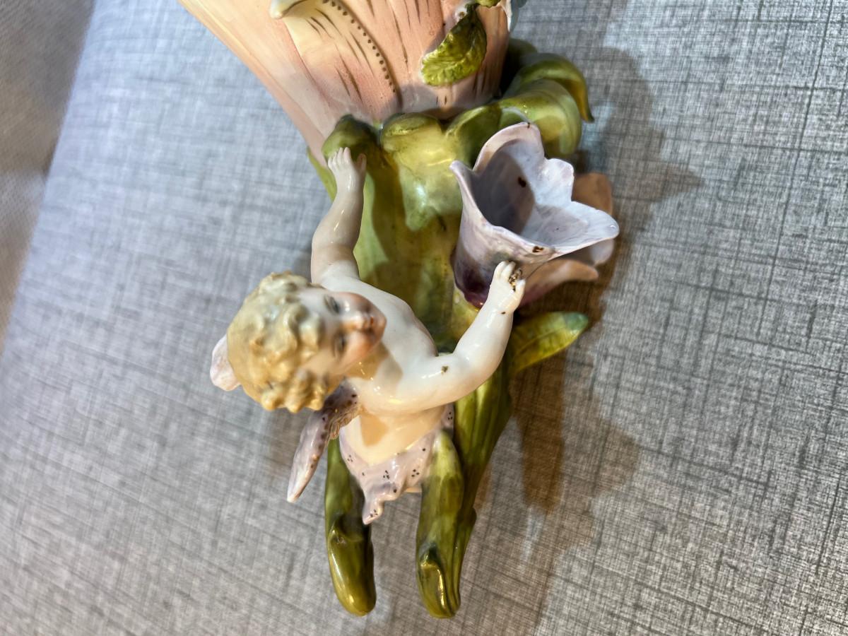 Antique Meissen Cherub w/Lily Flower Cornucopia Style Vase