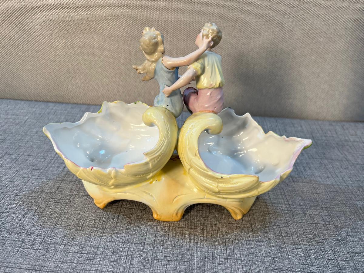 Antique Meissen Porcelain dish dual bowls possible a sweetmeat tray 9" wide 7" tall excellent condition no chips or cracks