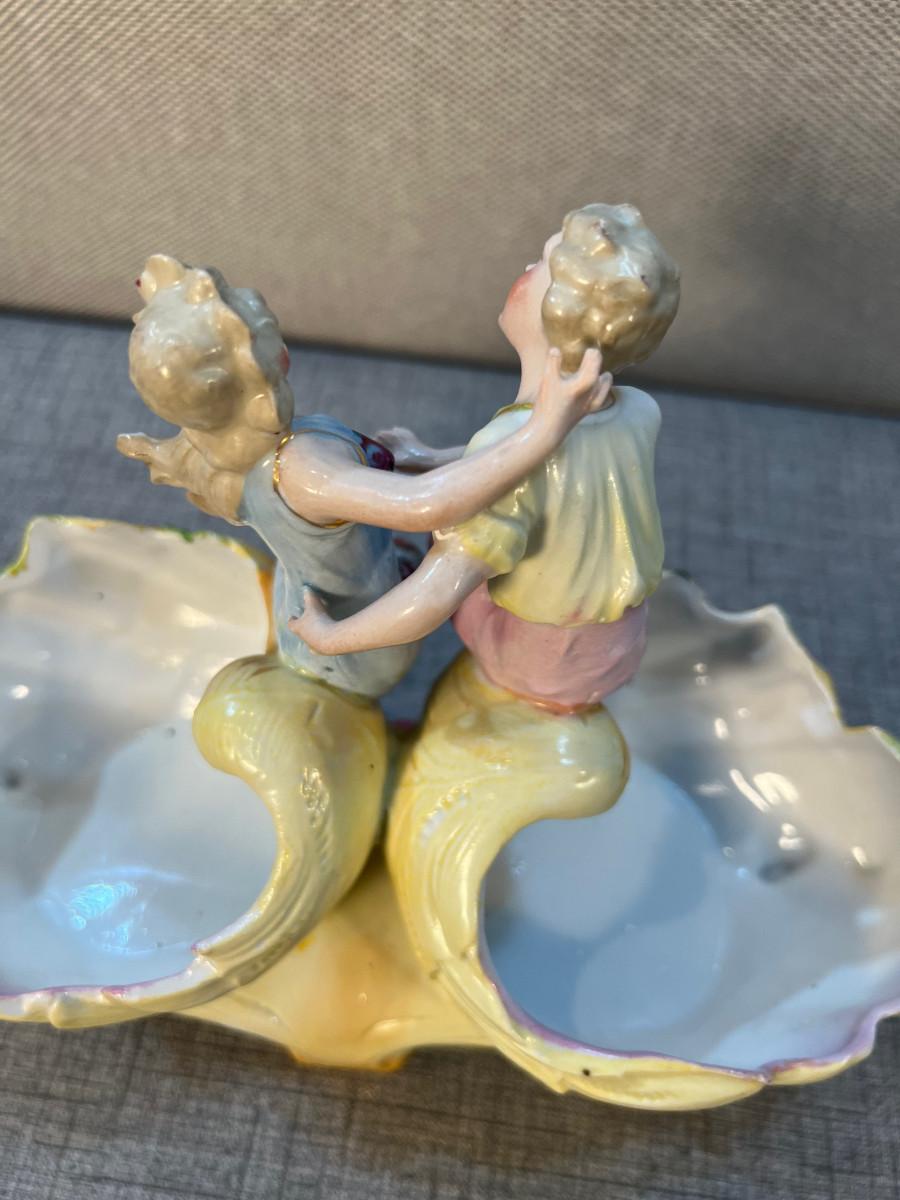 Antique Meissen Porcelain dish dual bowls possible a sweetmeat tray 9" wide 7" tall excellent condition no chips or cracks