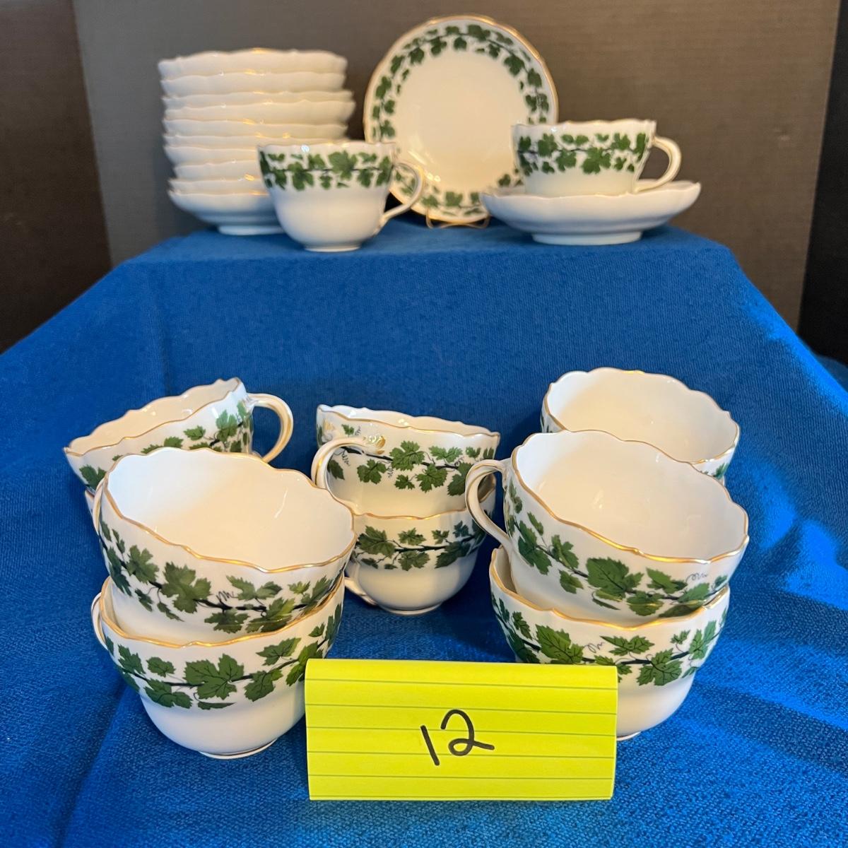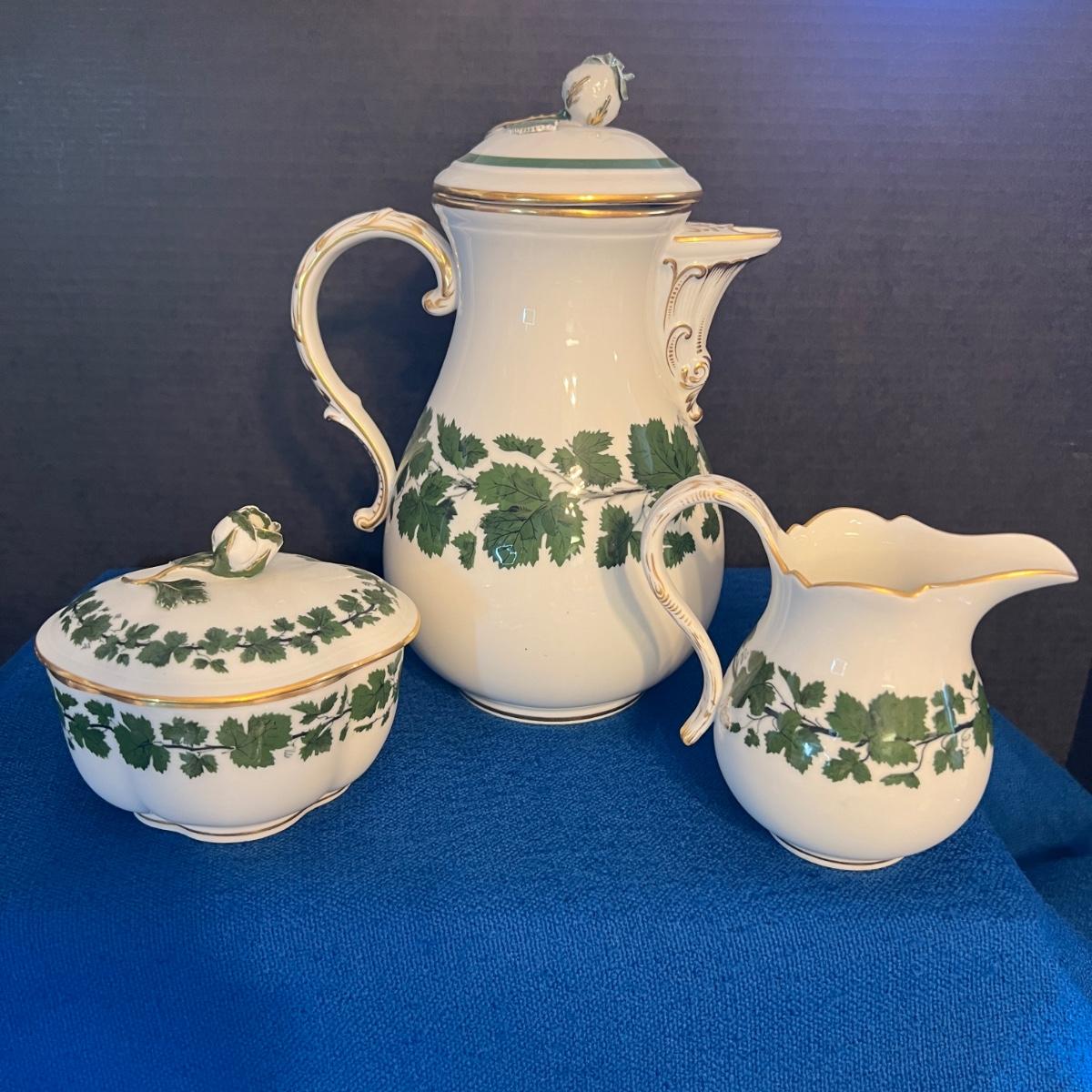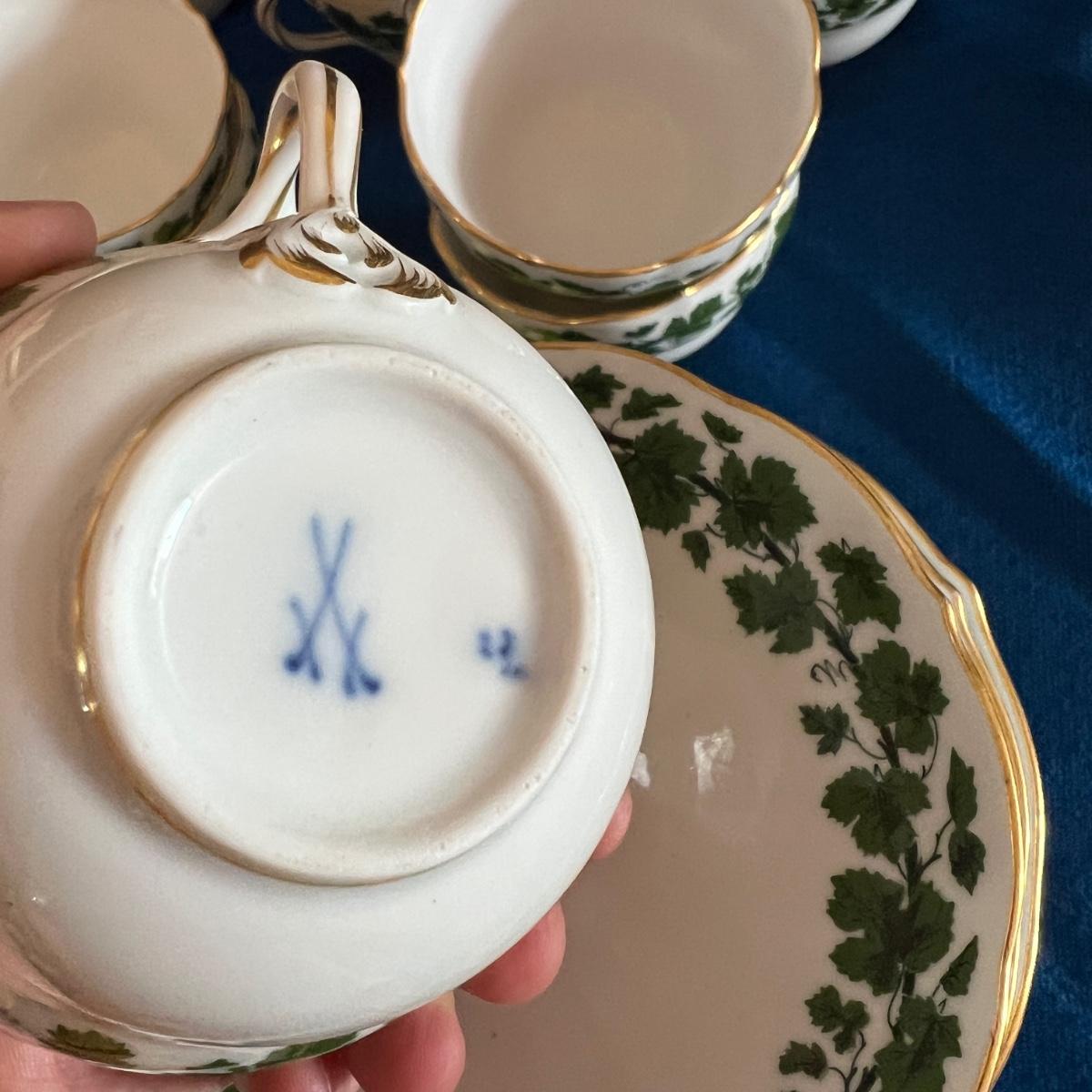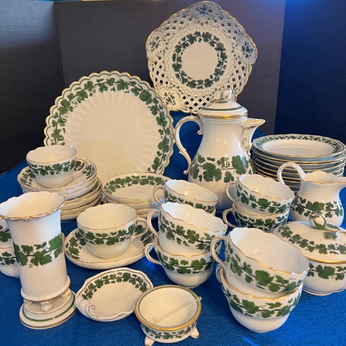 Antique Meissen Green Ivy Vine Leaf Hand-Painted Porcelain 44 Piece Set