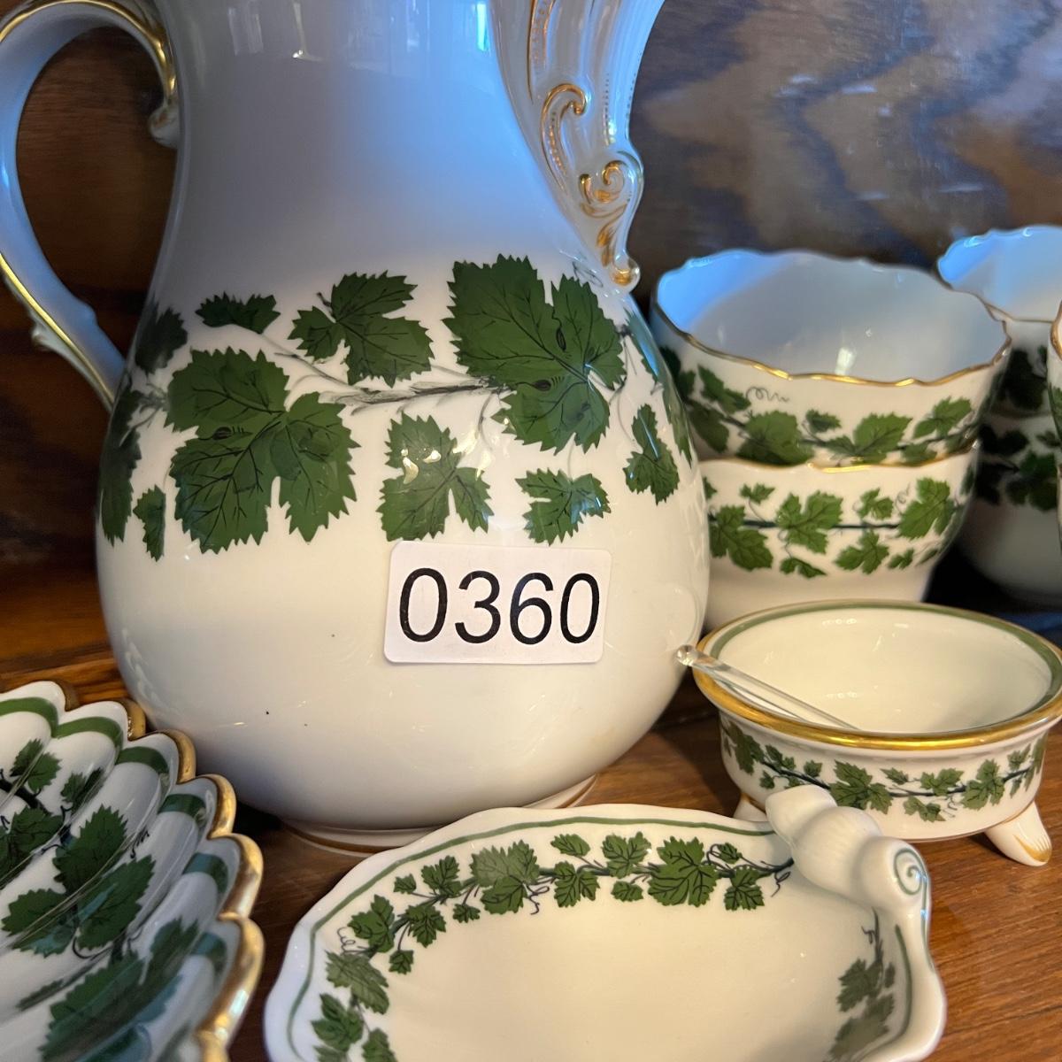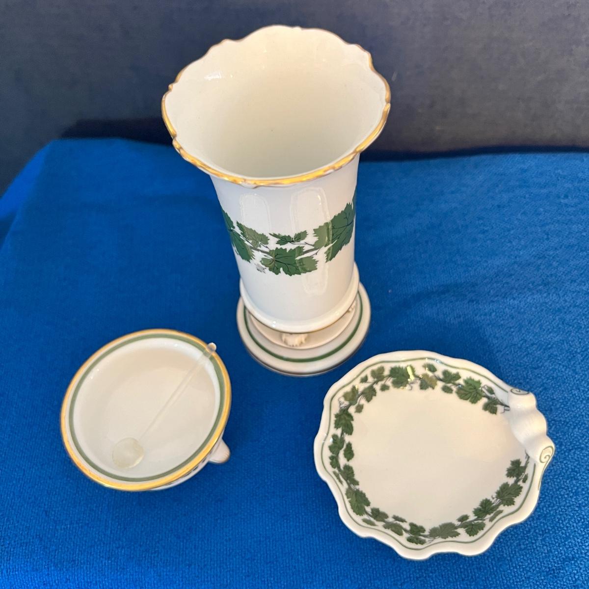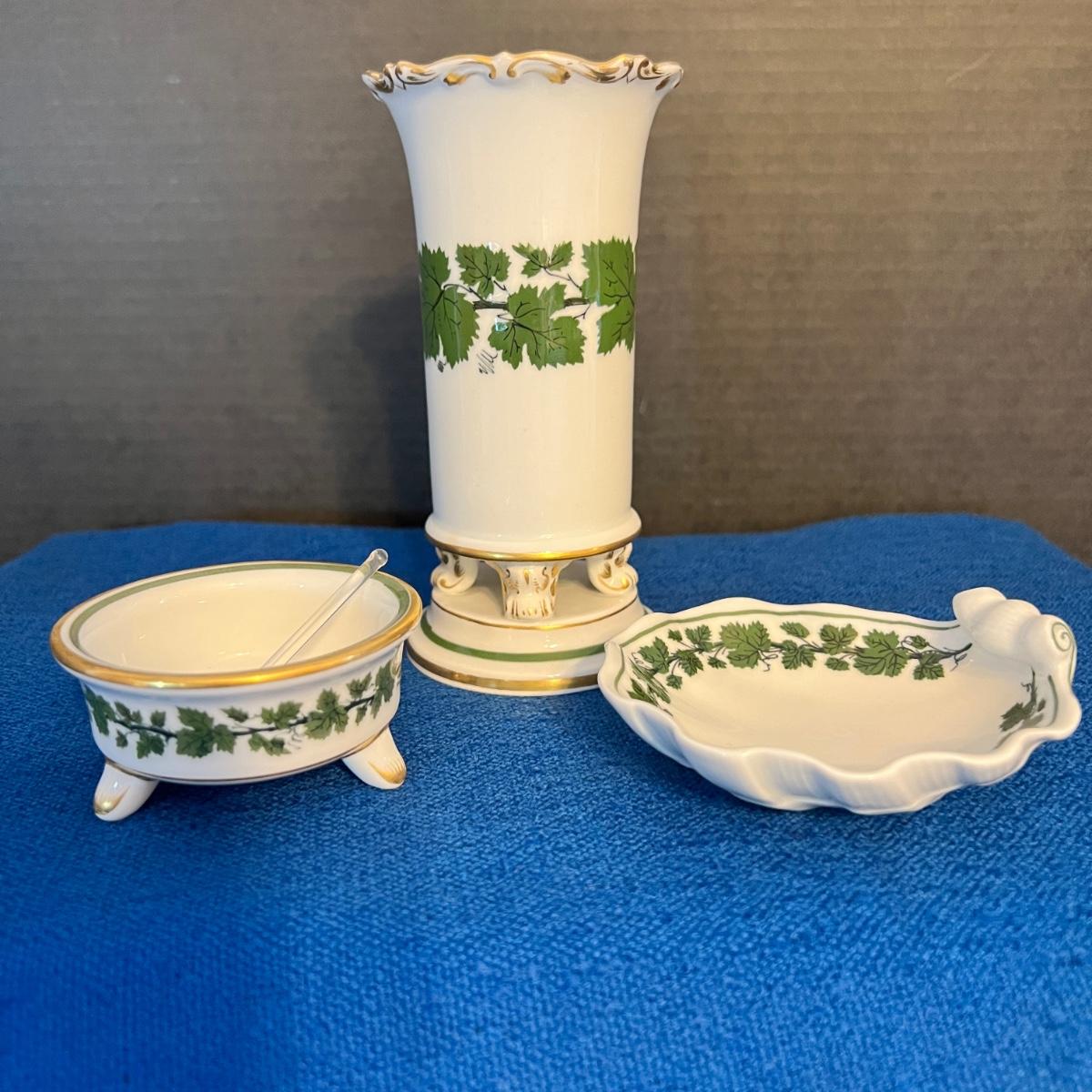 Antique Meissen Green Ivy Vine Leaf Hand-Painted Porcelain 44 Piece Set