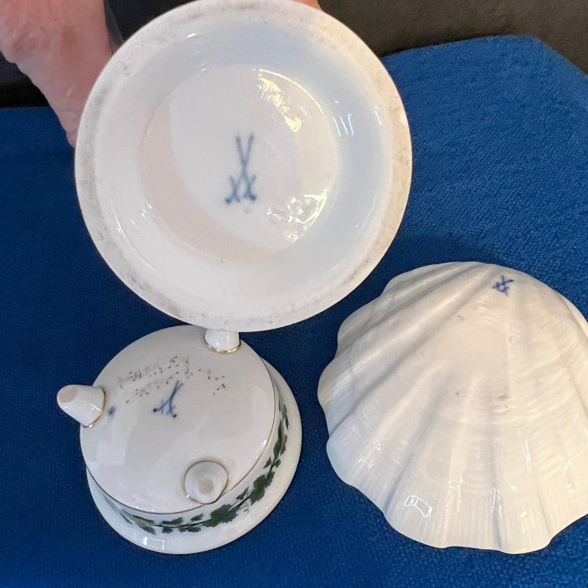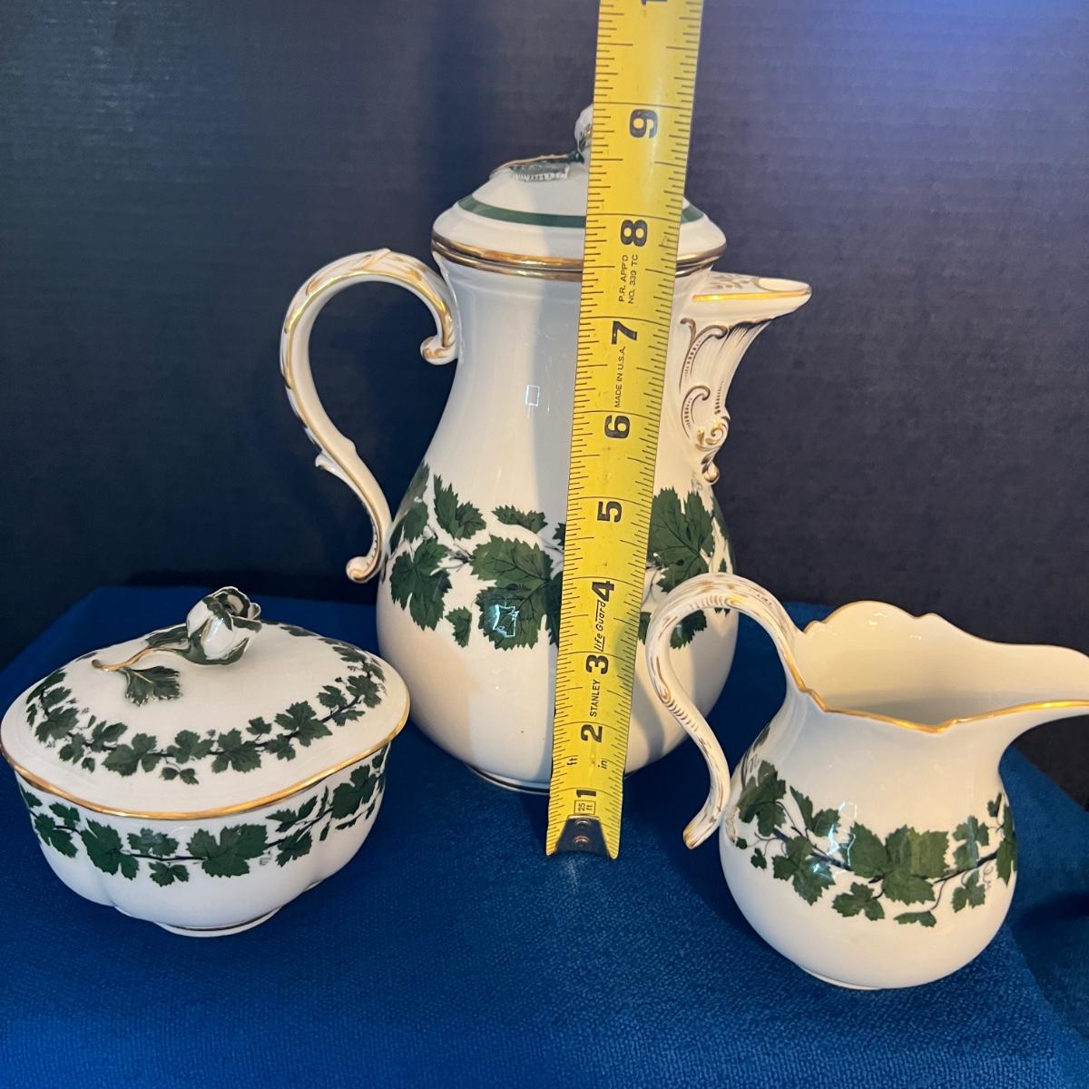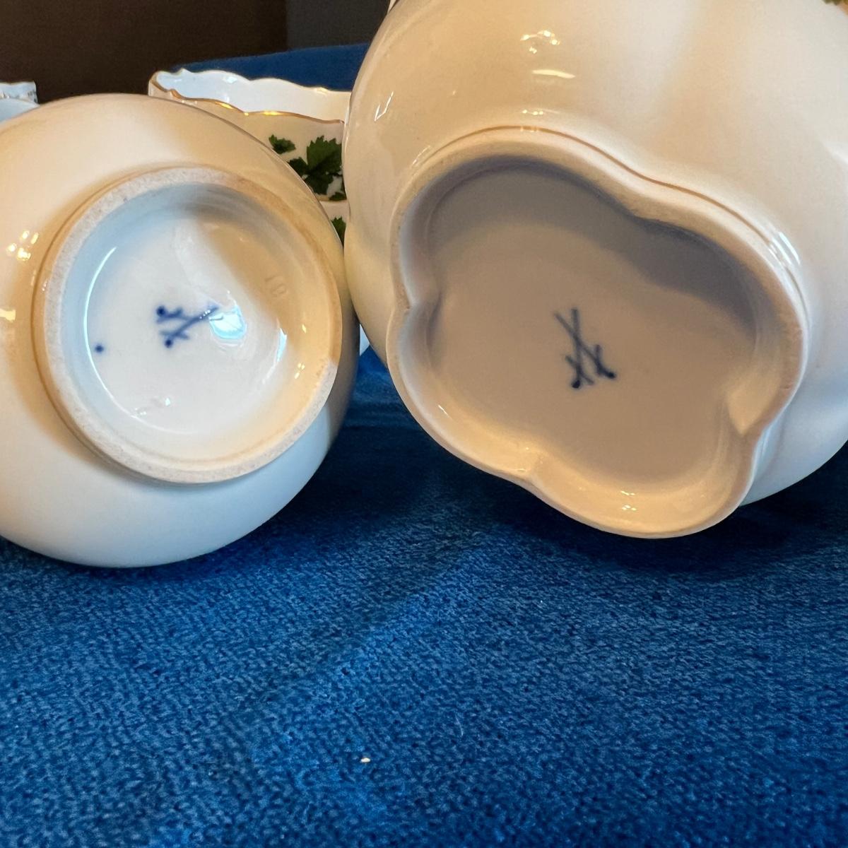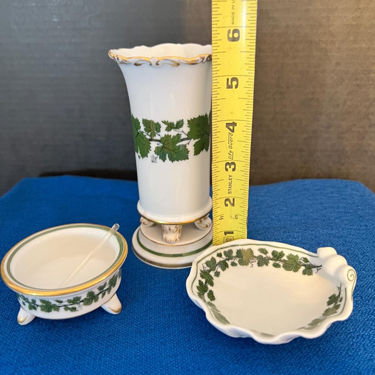 Antique Meissen Green Ivy Vine Leaf Hand-Painted Porcelain 44 Piece Set