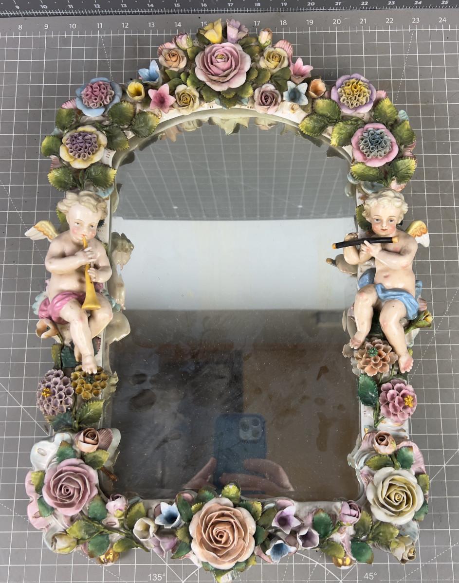 Antique MEISSEN MIRROR with Cherubs NICE!!! Circa 1870