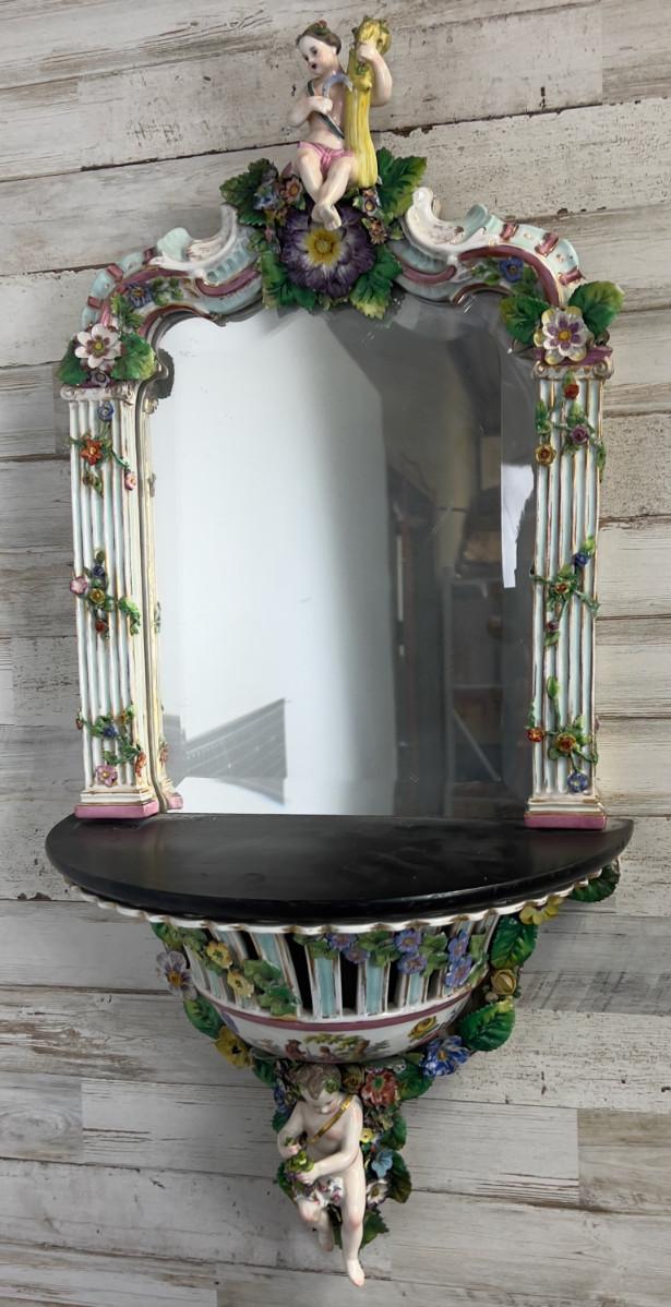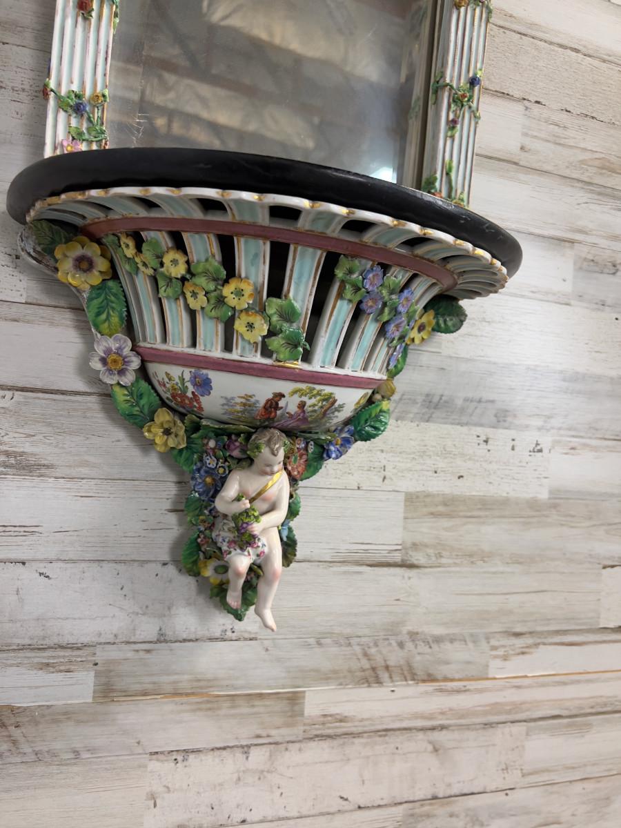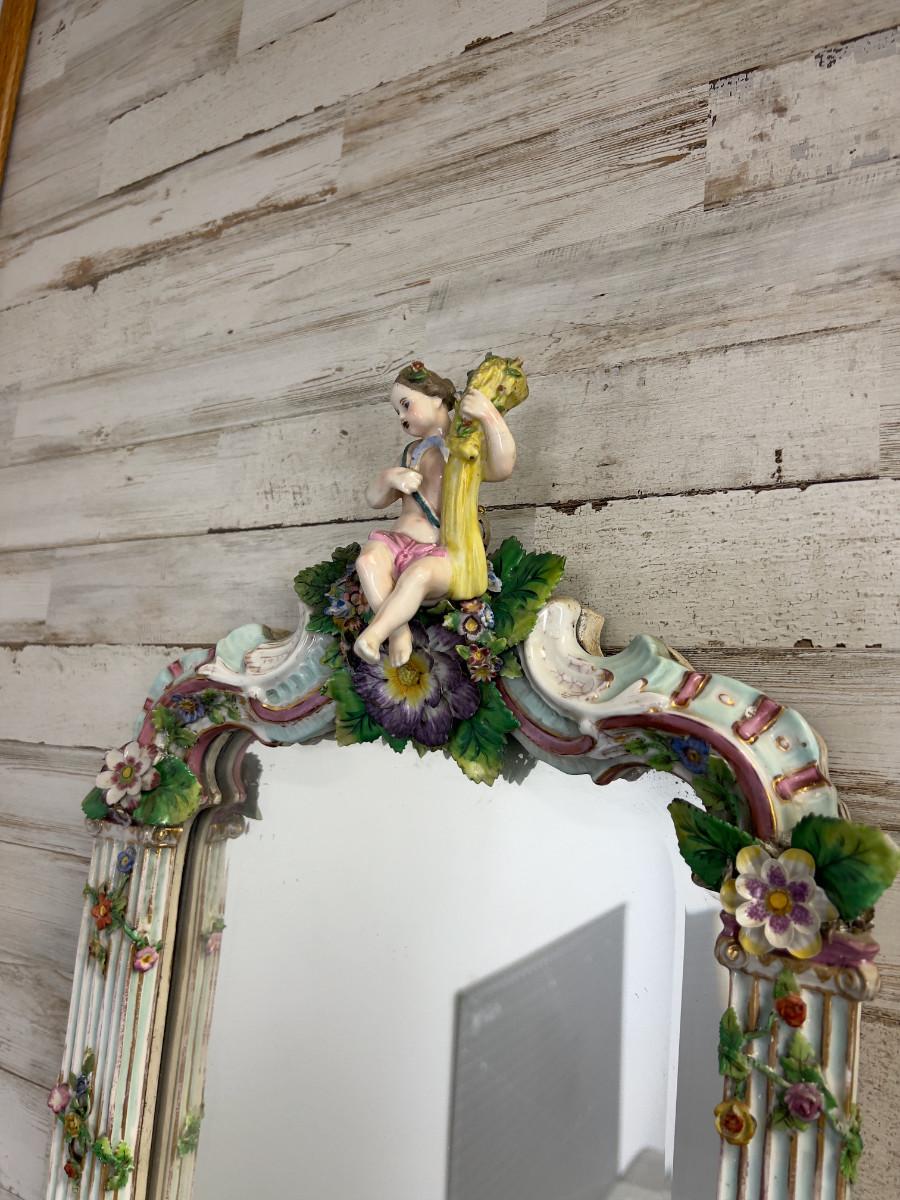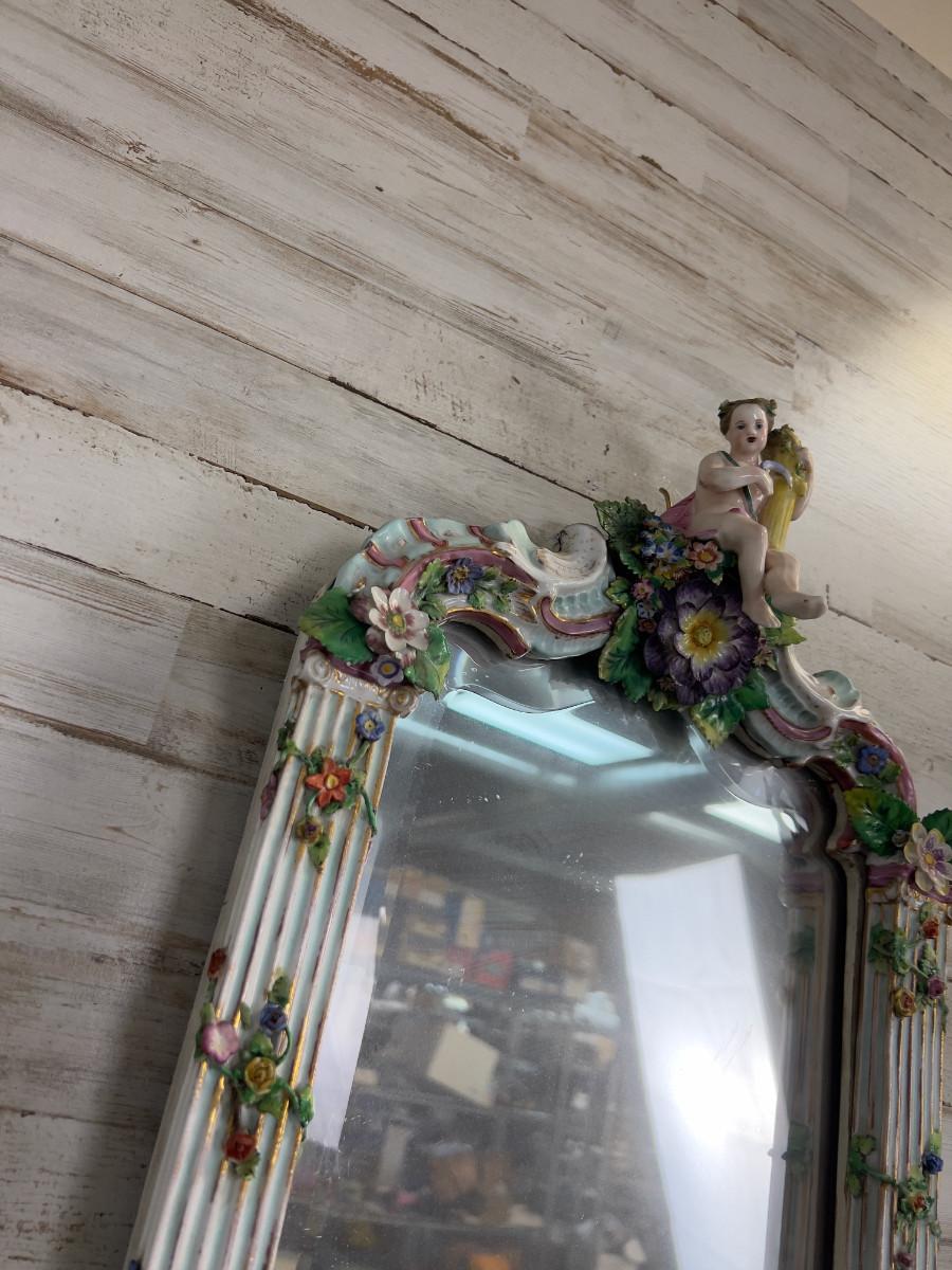 Antique MEISSEN Putti Cherub Mirror