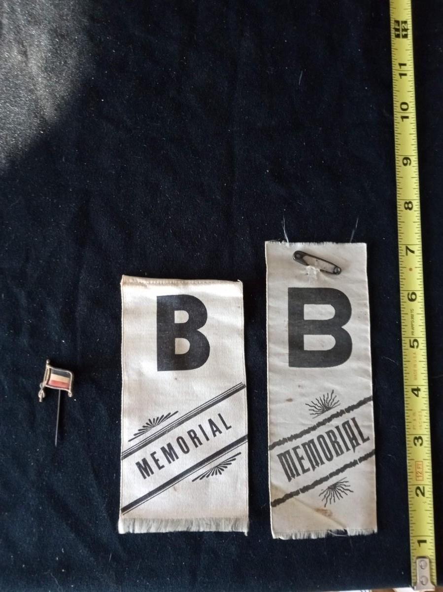 ANTIQUE MEMORIAL RIBBONS AND FLAG STICK PIN