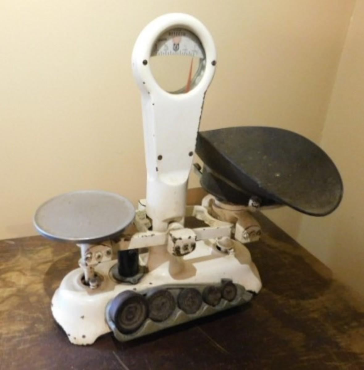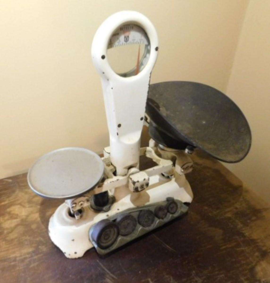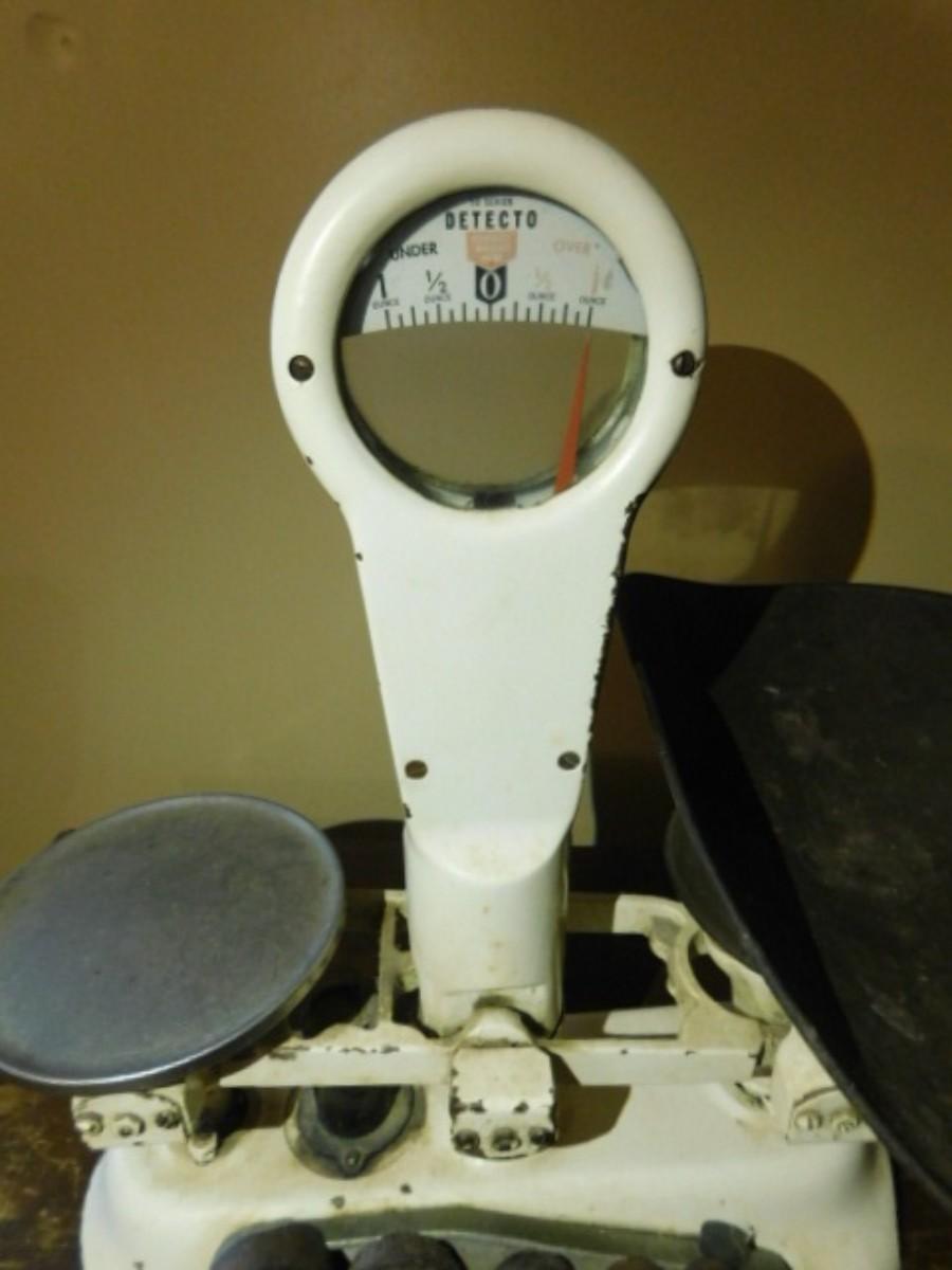 Antique Detecto Mercantile Scale with Disc Weights and Brass Scale Pan