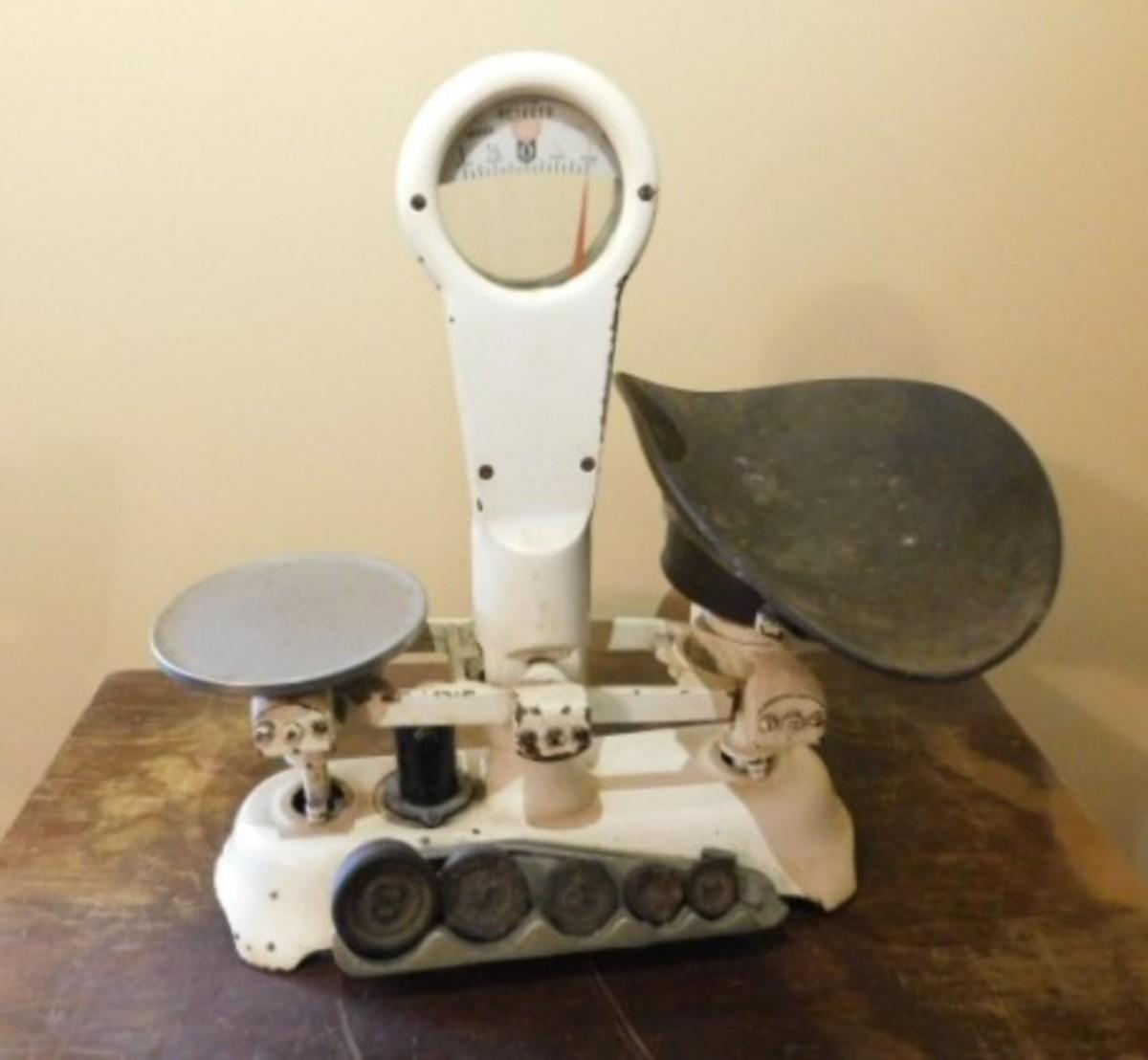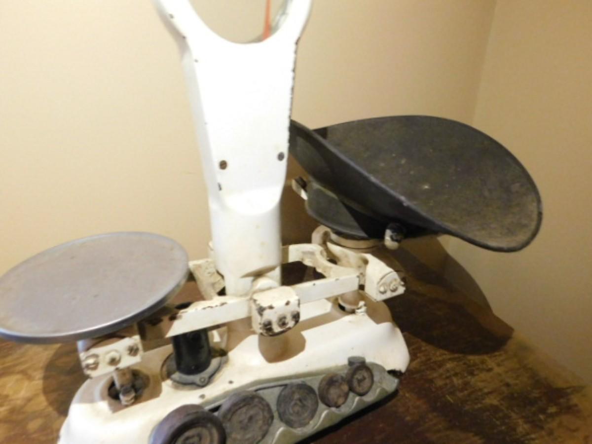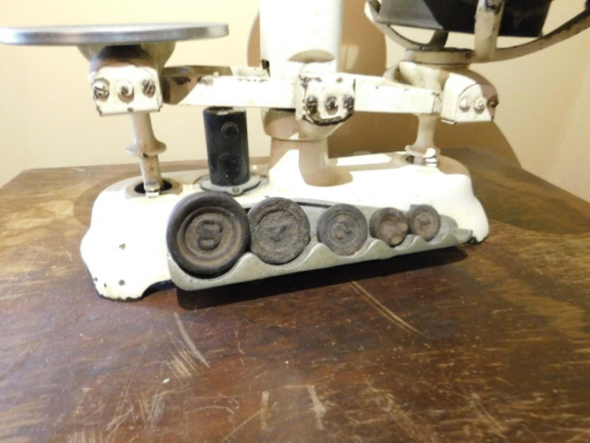 Antique Detecto Mercantile Scale with Disc Weights and Brass Scale Pan