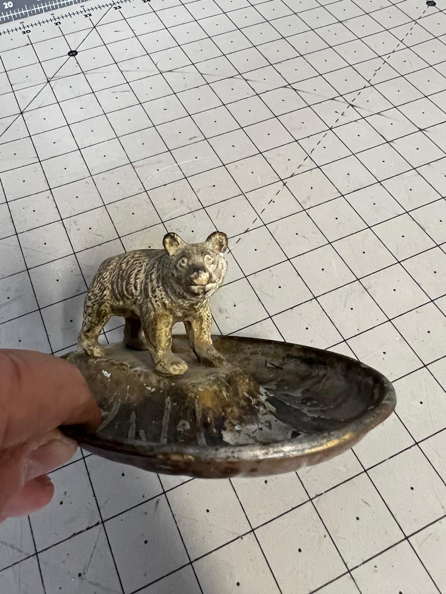 Antique Metal Bear Ashtray