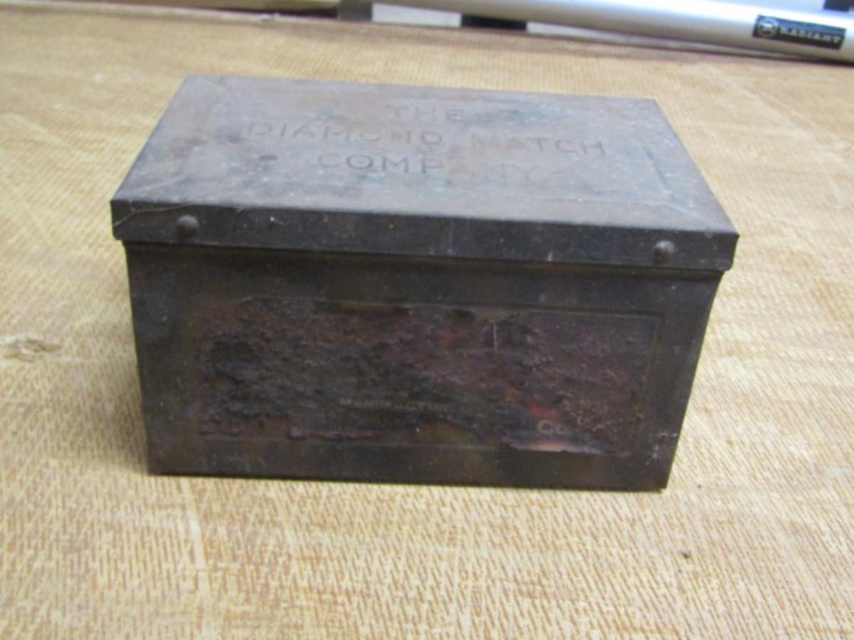 Antique Metal Box from the Diamond Match Company- Approx 8 3/4" x 5 1/2" x 5 1/4" Tall