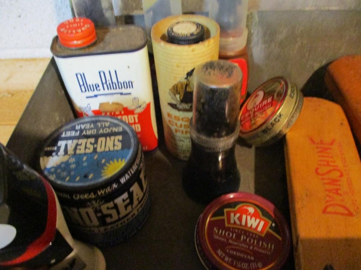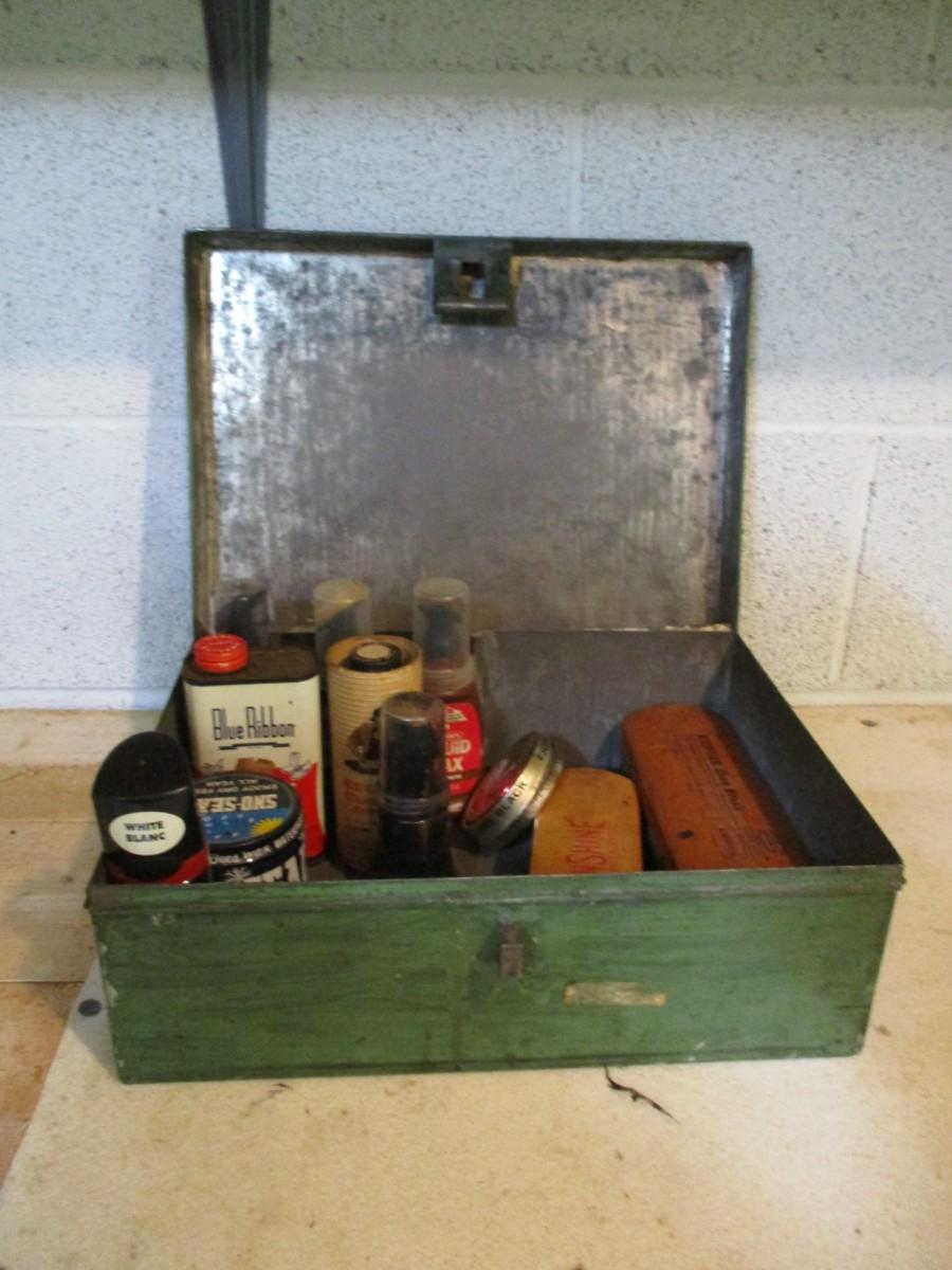 Antique Metal Box With Shoe Cleaning Supplies (TR)