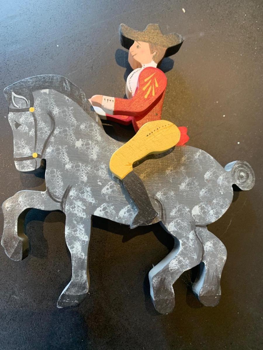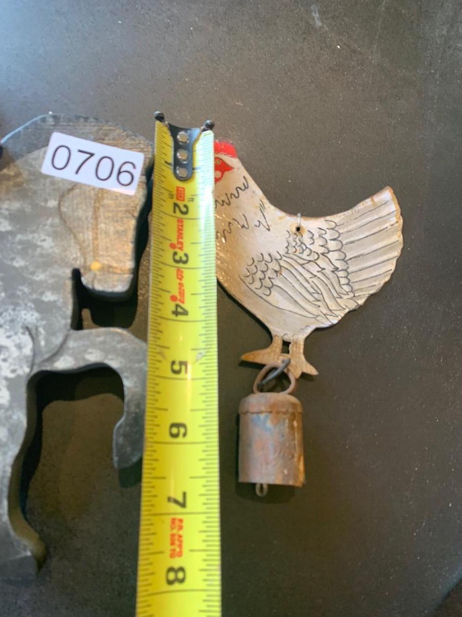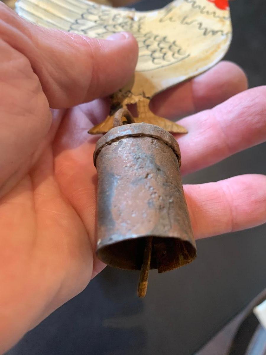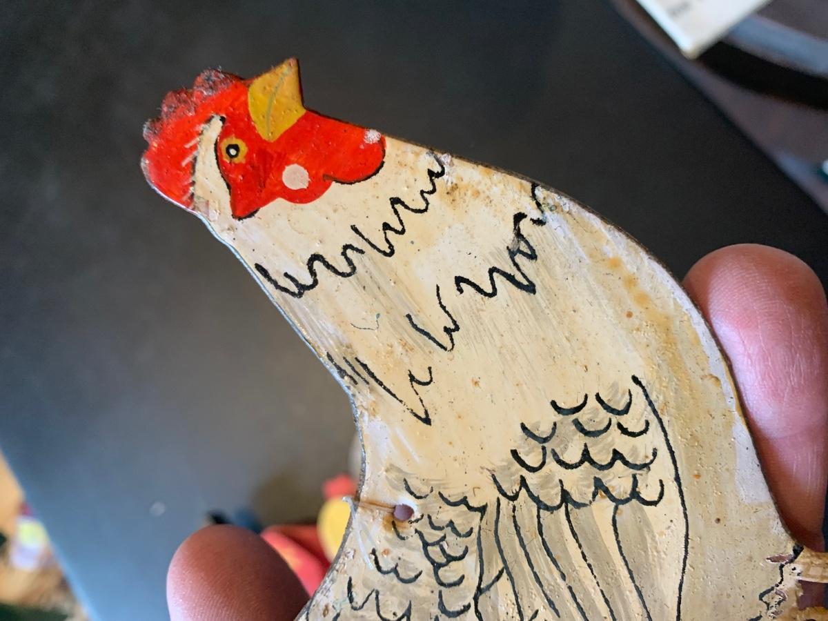 Antique Metal Chicken w Bell + Wooden Soldier/Horse