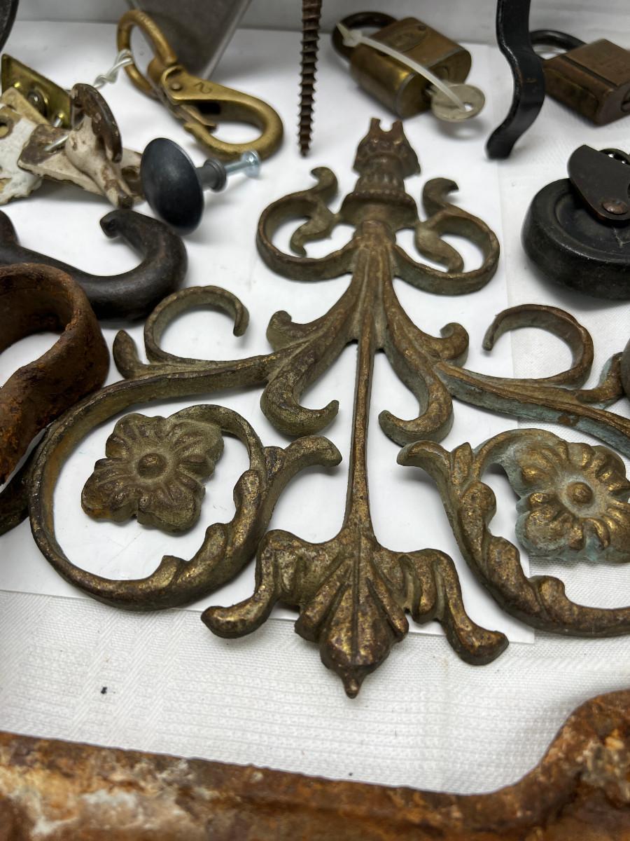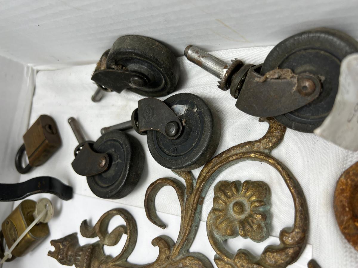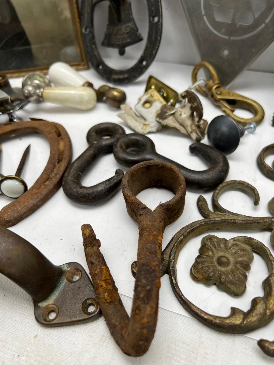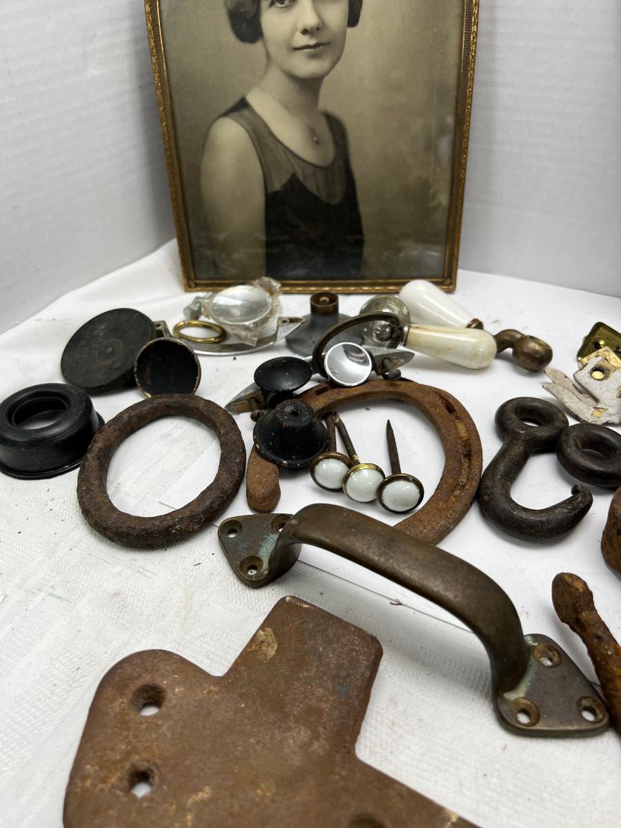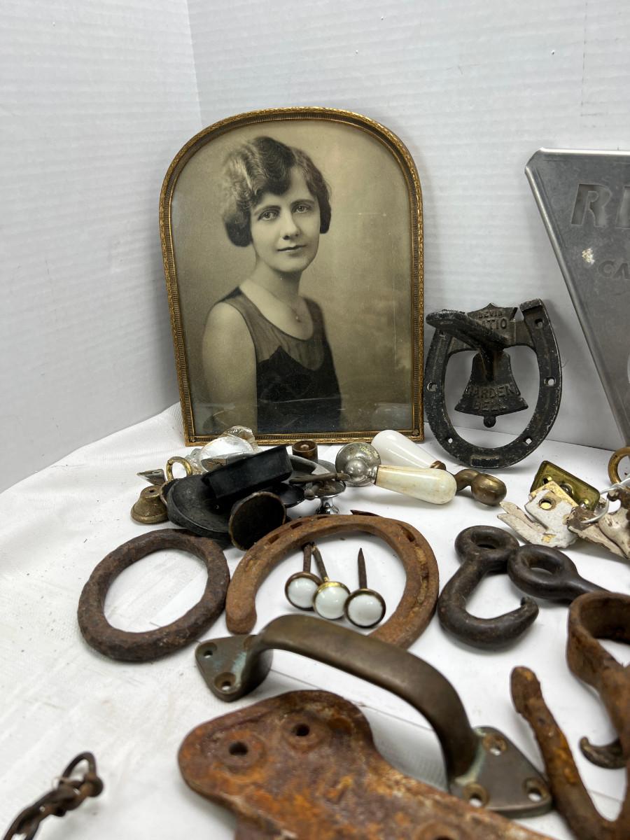Architectural salvage, lock and key ( some no keys) horse shoes, handles gate hardware, pulleys. Awesome for decor, woodworking art and....Can ship but will be expensive heavy.