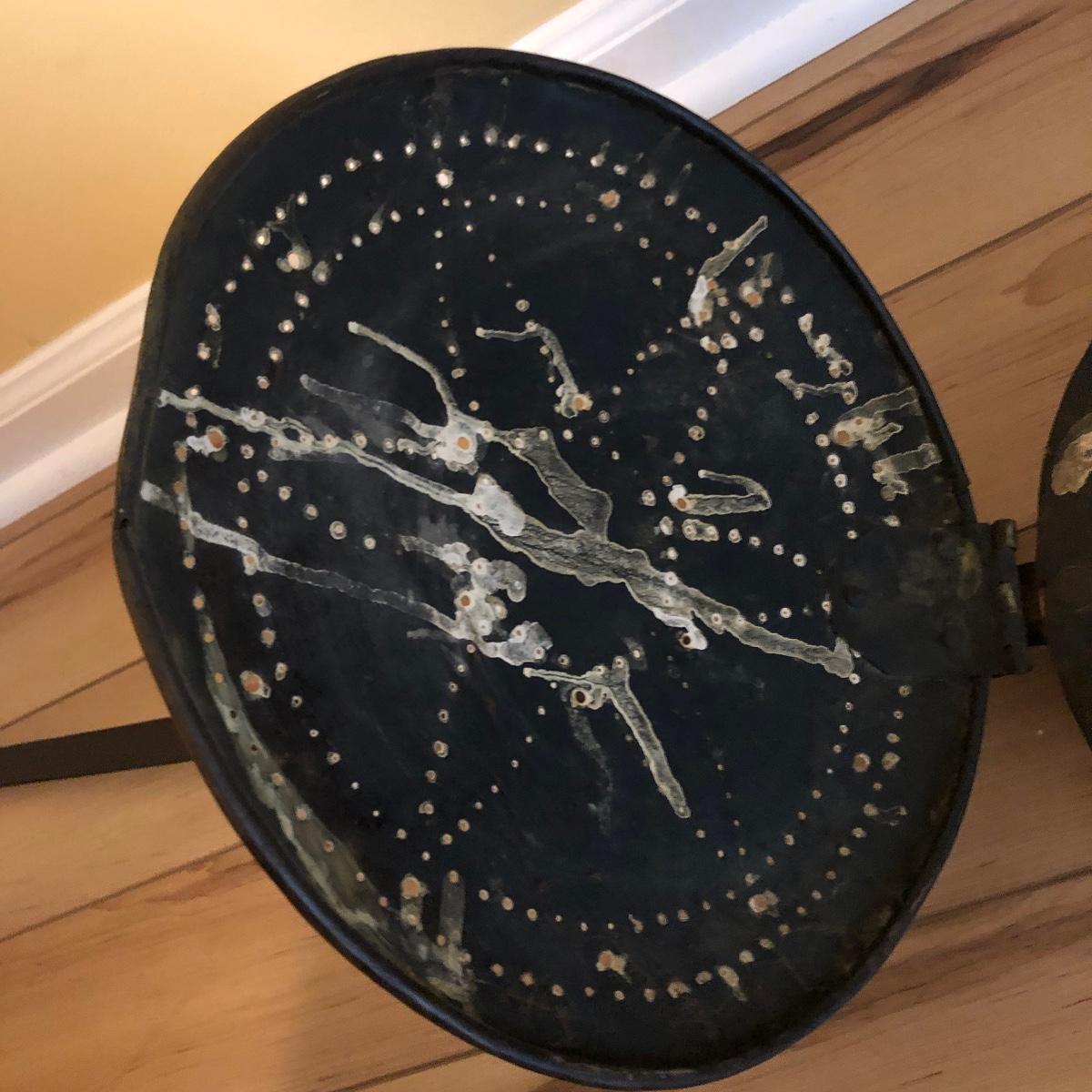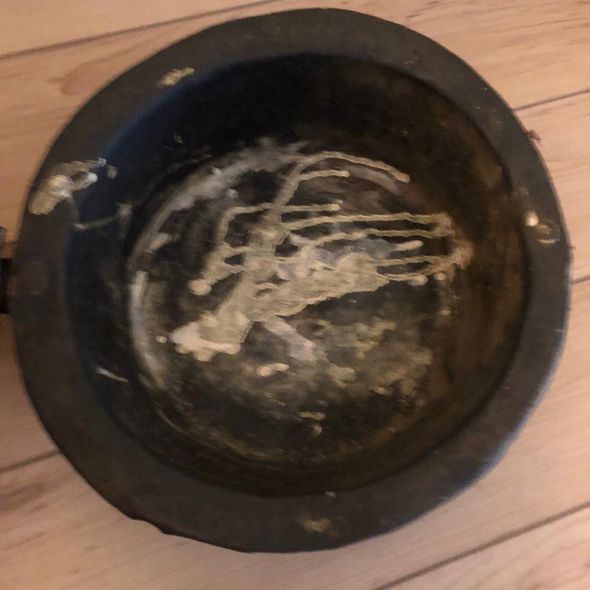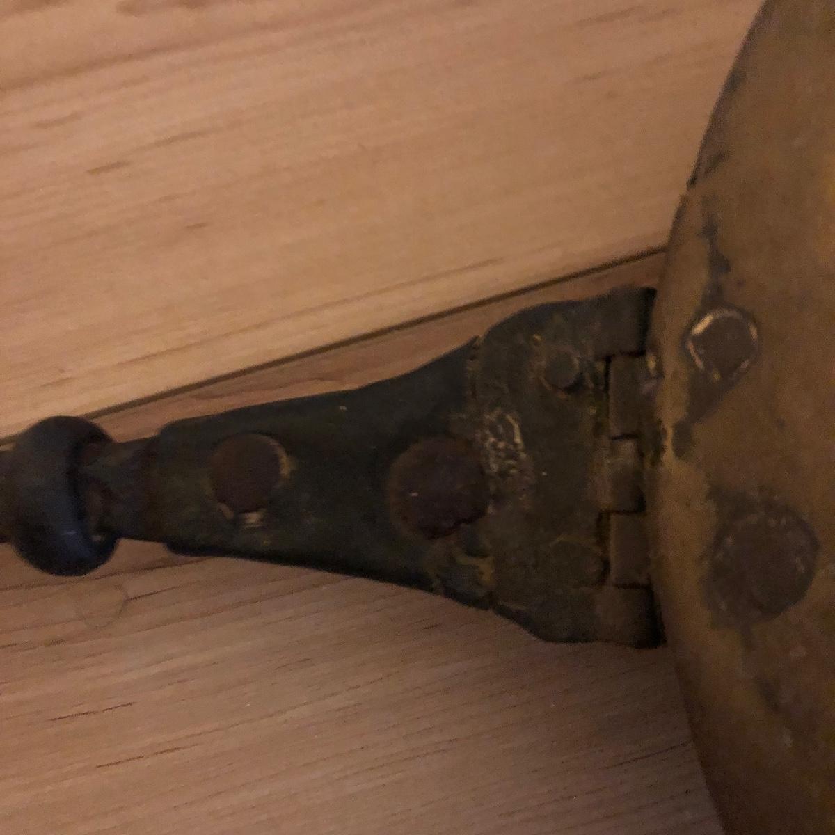 Lot includes a antique metal and iron bed warmer with a brass colored lid. Bed warmer measures 12”D x 3.5” tall and 46” long.