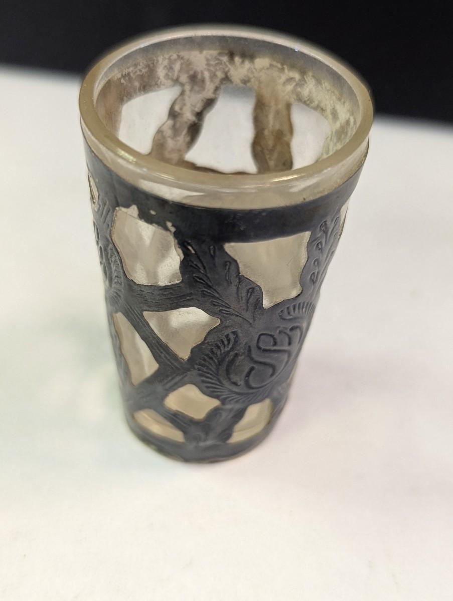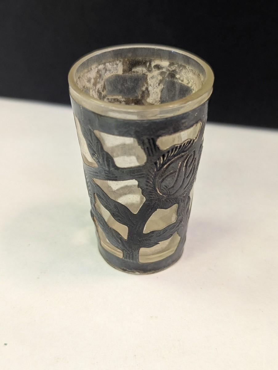 Antique Mexican Silver Wrapped Shot Glass Sterling 925