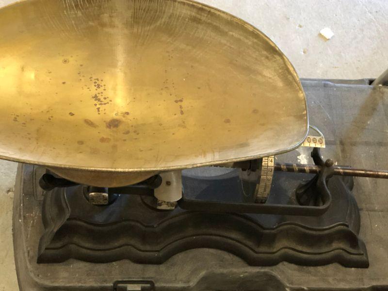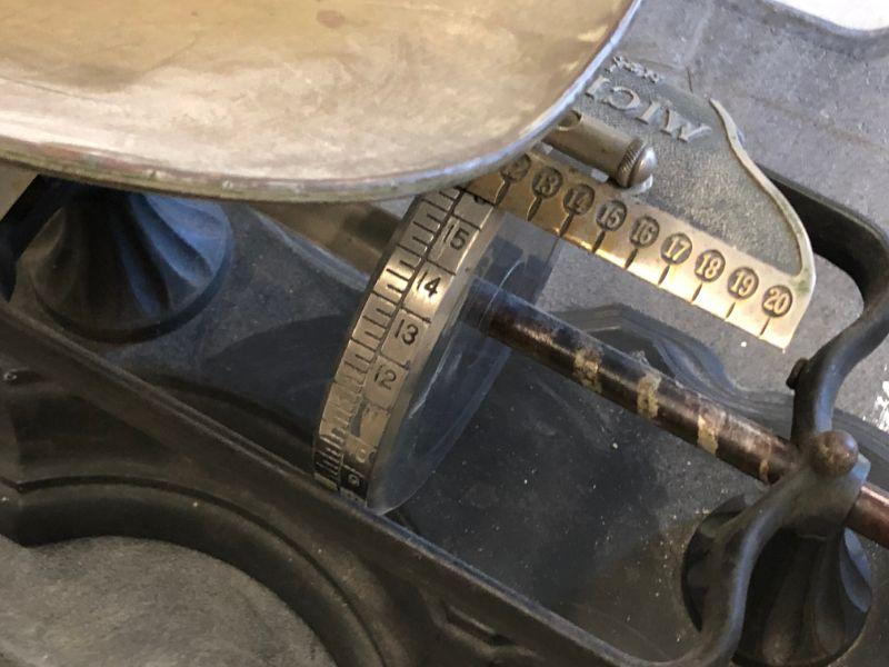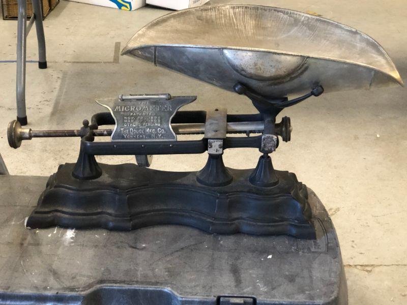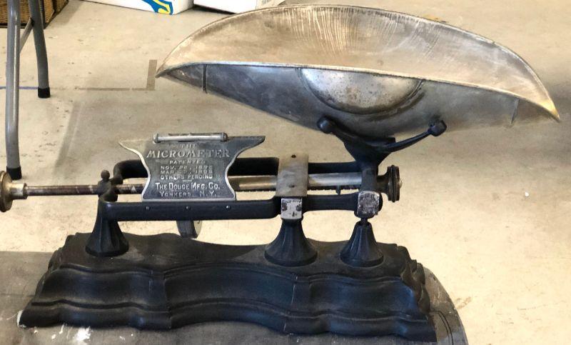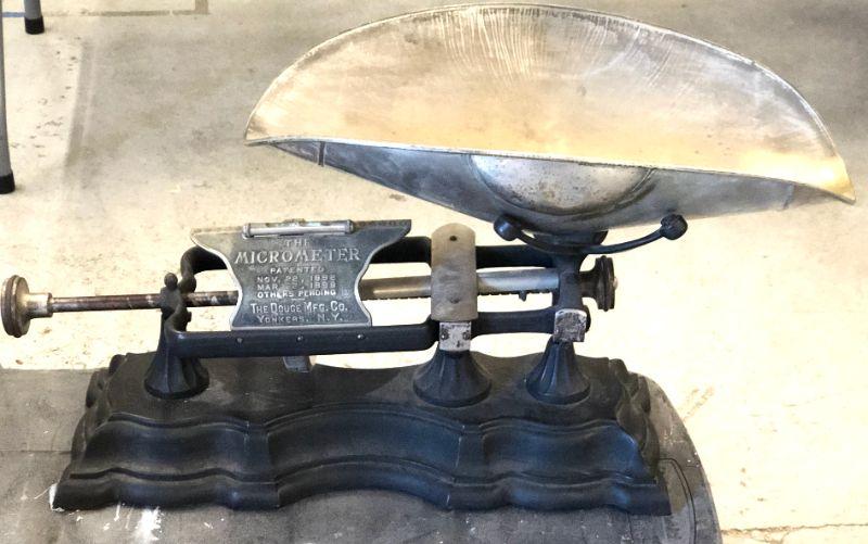 1892 Antique Micrometer Manufacturing Cast Iron Candy Scale. Very Heavy. In good condition.