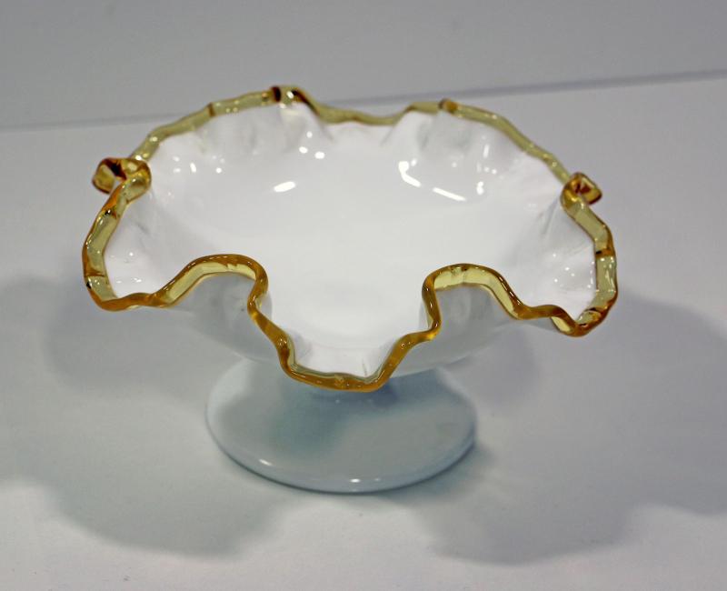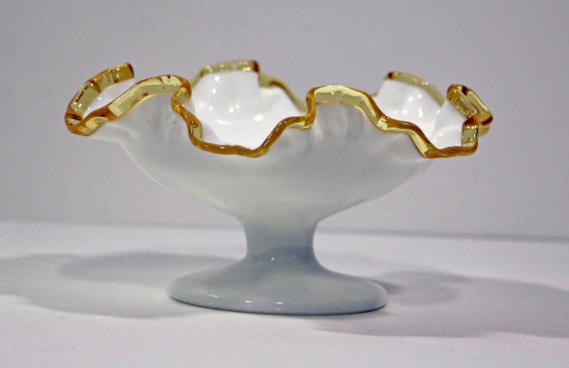 Antique Milk & Amber Glass Candy Dish - Vintage - 4'x8"