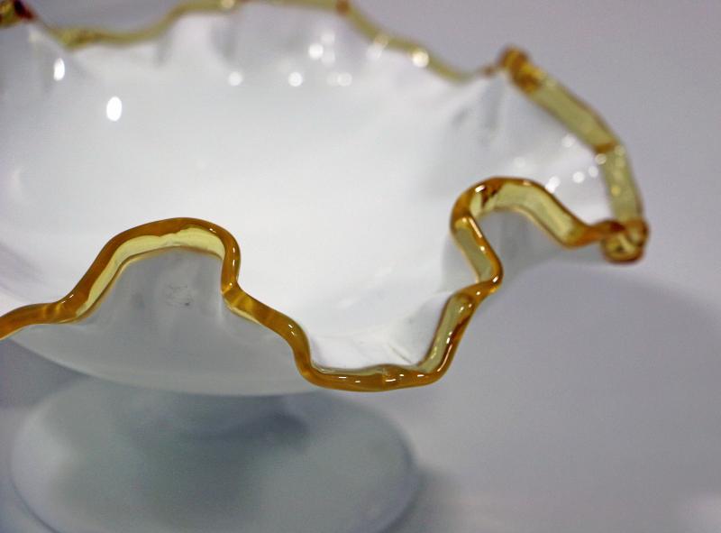 Antique Milk & Amber Glass Candy Dish - Vintage - 4'x8".