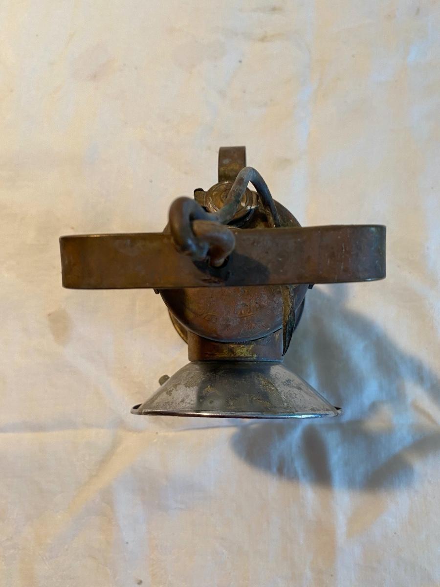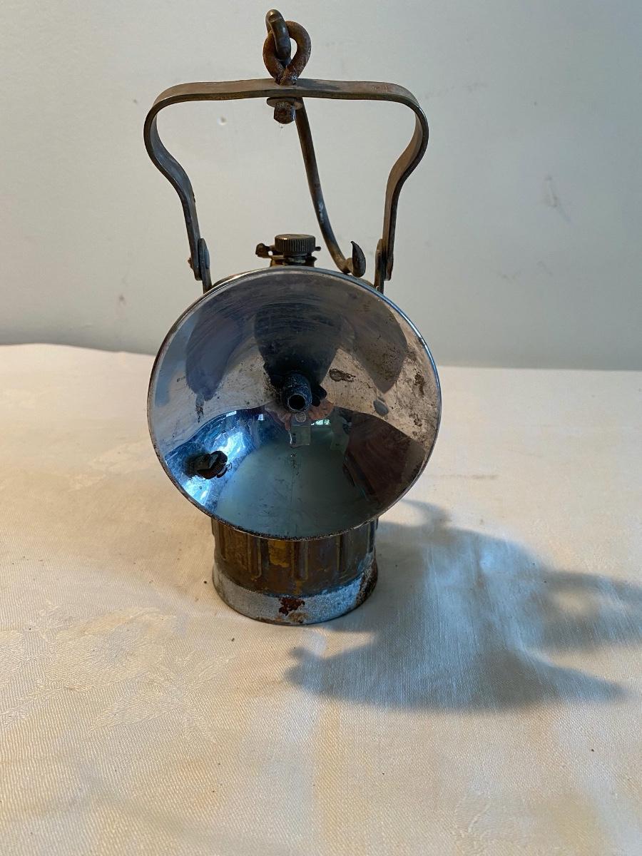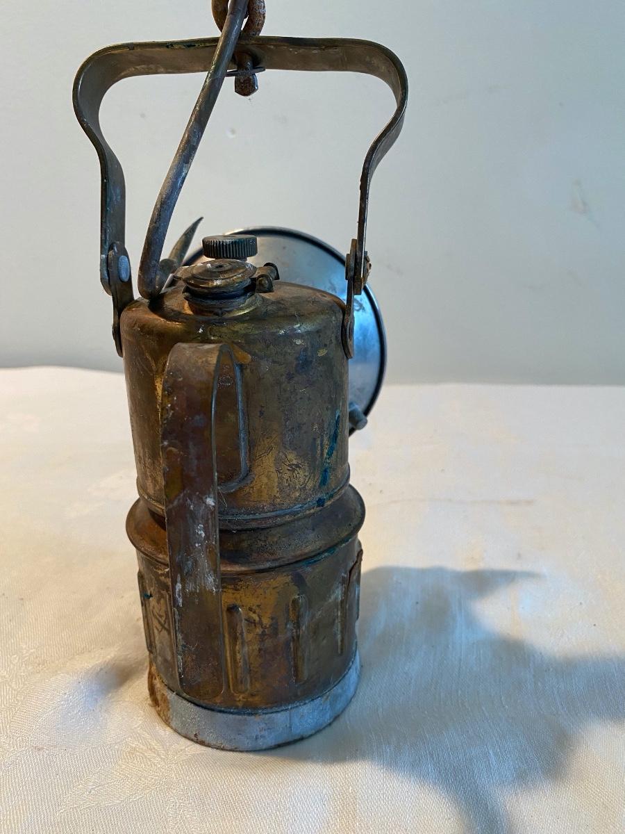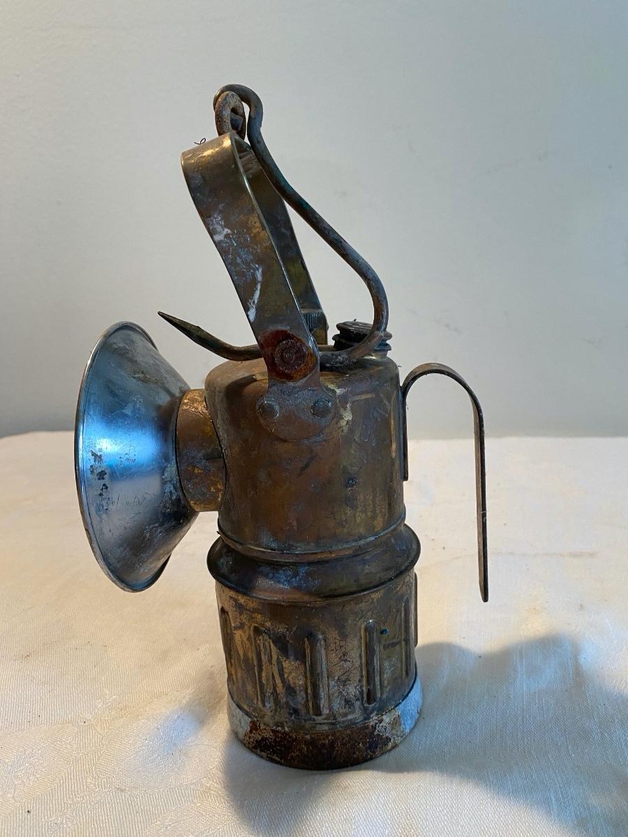 Rustic looking vintage Mine lamp used by Paul Francis Kerr. Has original hook and handle. Looks like spent alot of time in the shafts due to the rust, sold as is. Perfect as displace piece on book shelf.