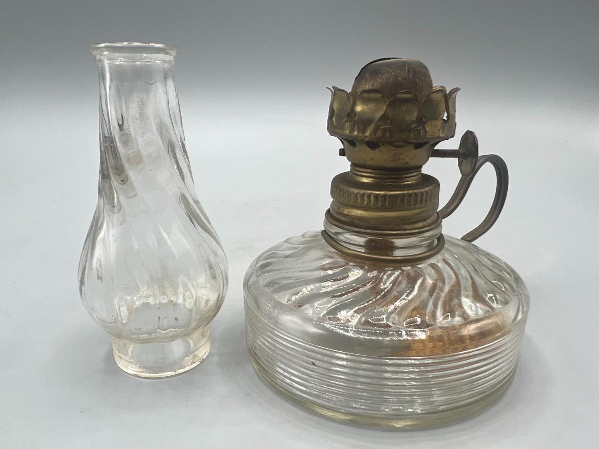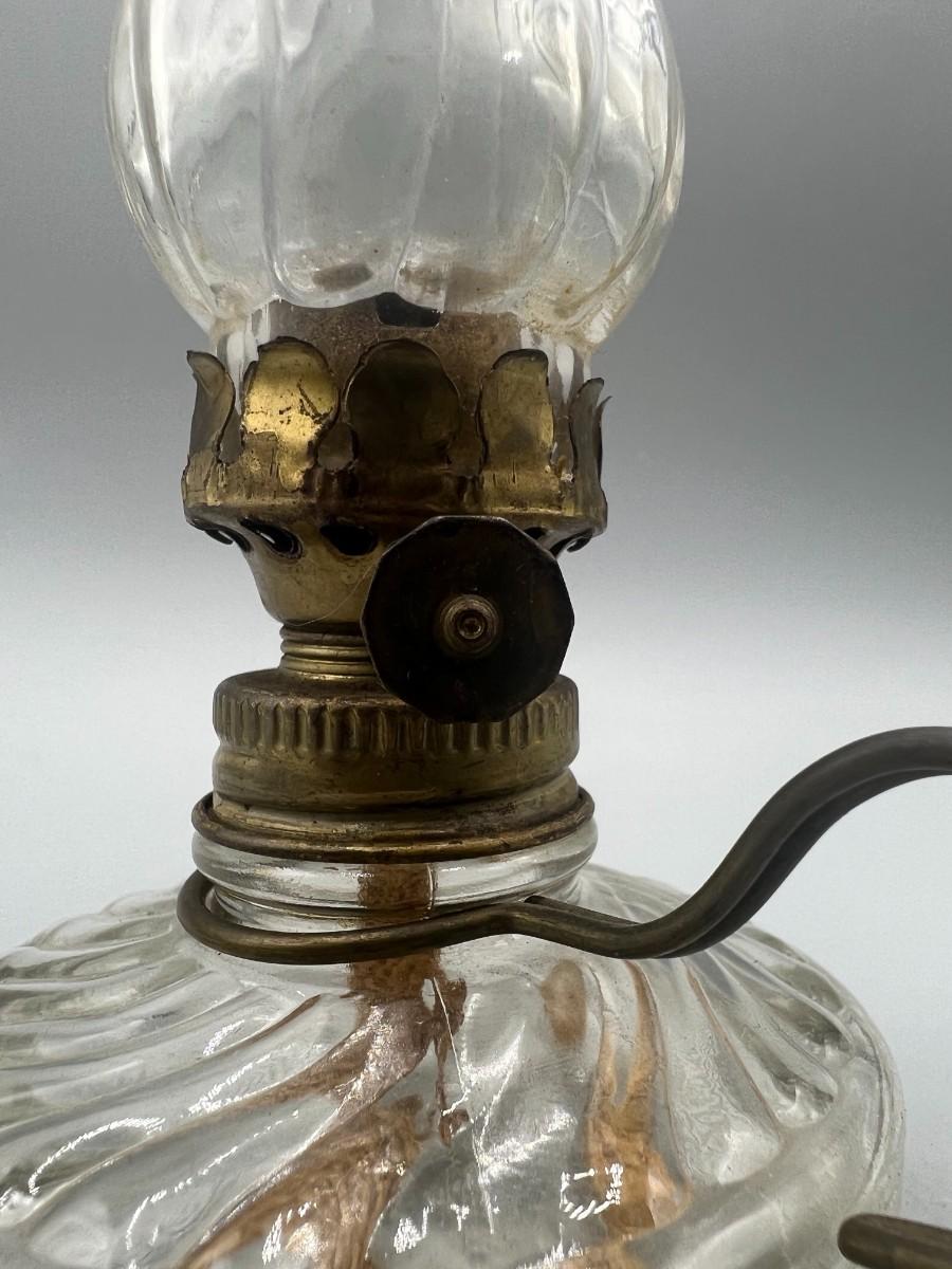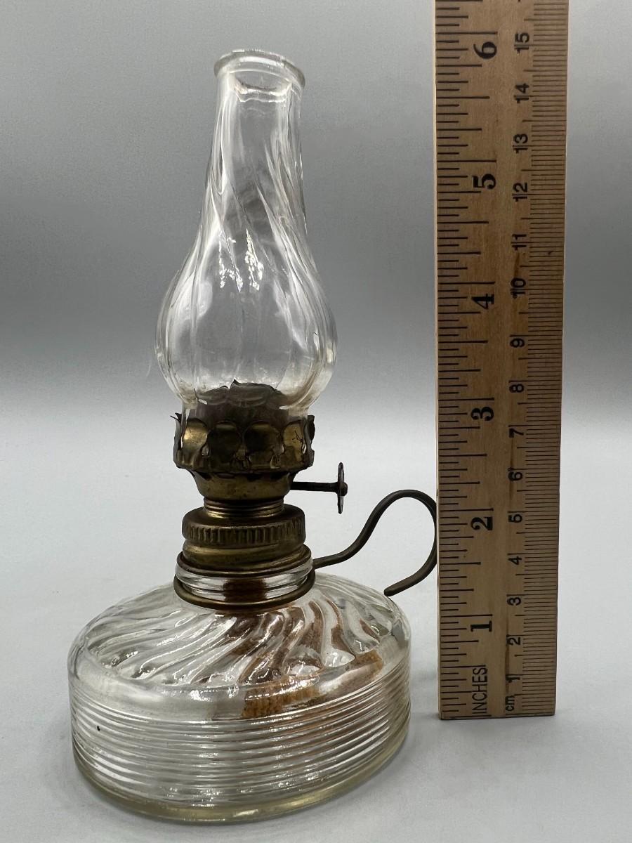 Antique Miniature Clear Swirl Glass Kerosene Oil Finger Lamp