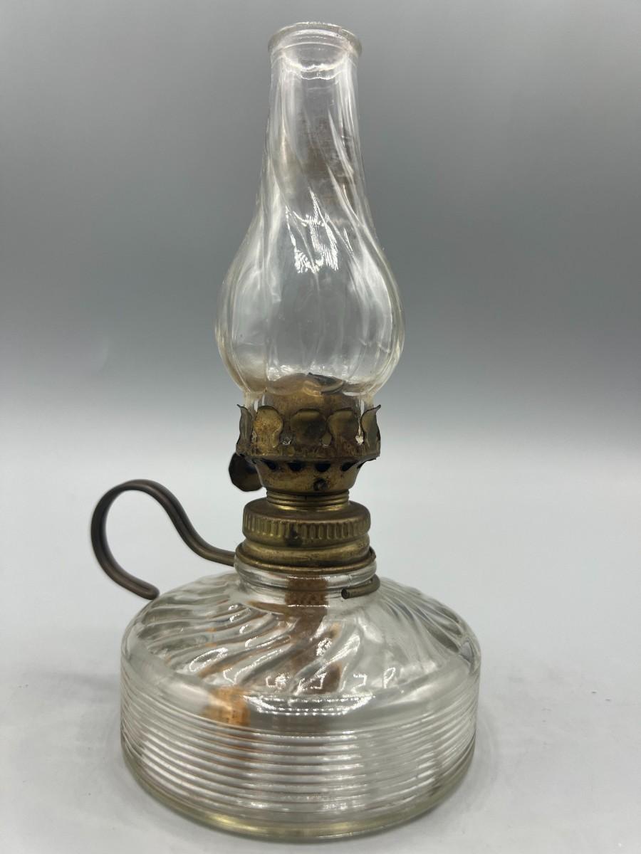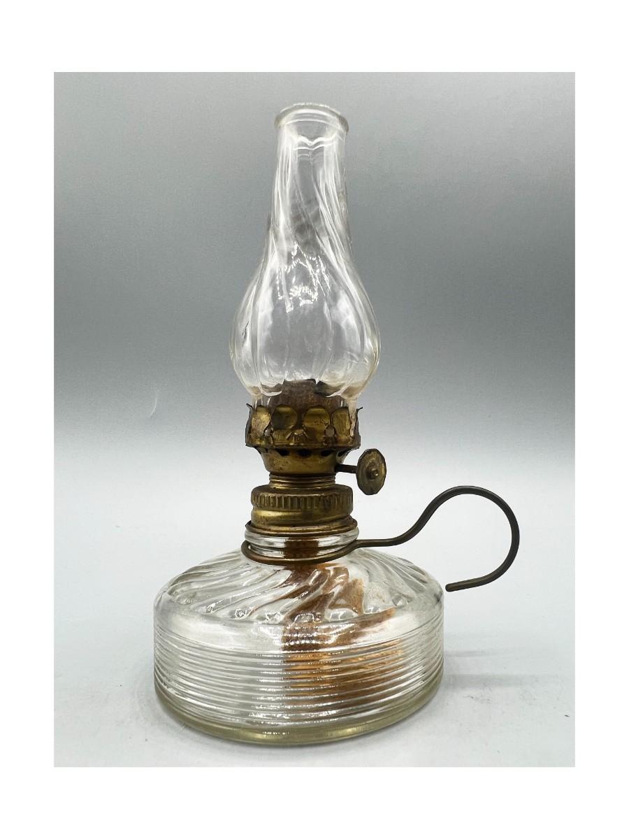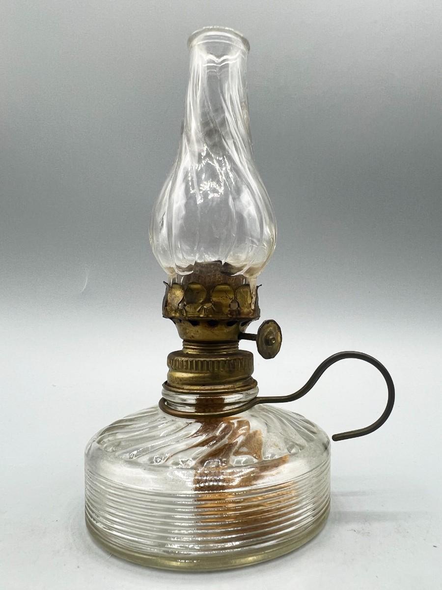 Antique Miniature Clear Swirl Glass Kerosene Oil Finger Lamp